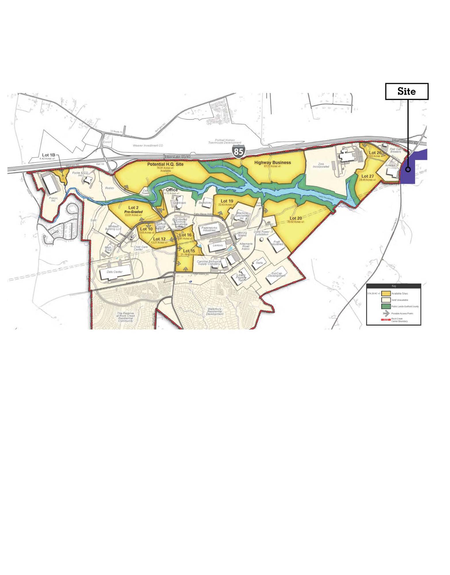 This property features: Prime location along I‑85/I‑40; Sits on the east end of Rock Creek Industrial Park