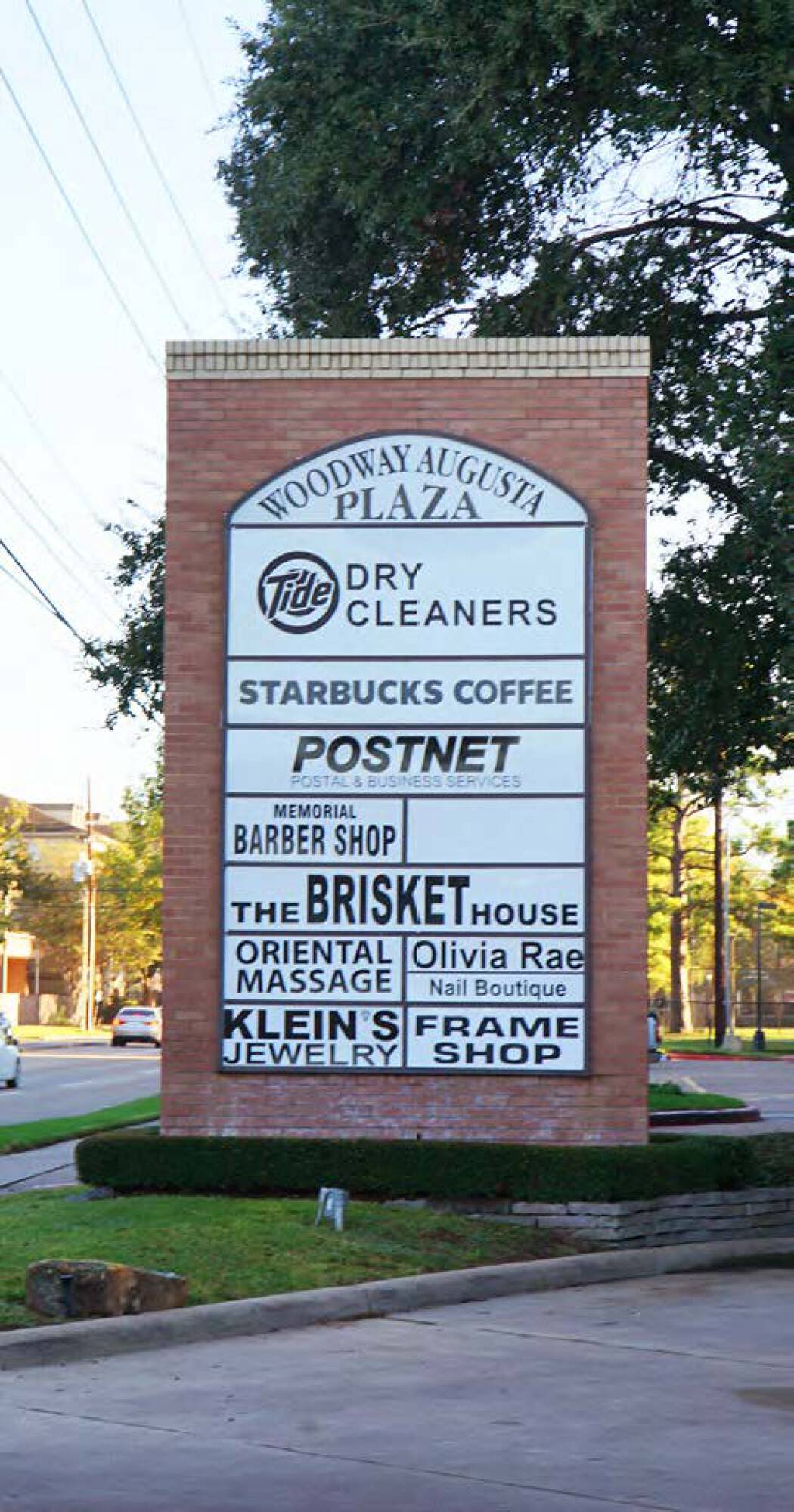 Located at the southeast corner of Woodway Drive and Augusta Drive in the Tanglewood area, this commercial property is suitable for retail and shopping center businesses. The location benefits from a densely populated trade area with high incomes. More than 167,000 residents live within 3 miles, with a household income exceeding $230,000 within a mile of the site. Current tenants include Starbucks, Goodwill, Tide Dry Cleaners, THE BRISKET HOUSE, Klein’s Jewelry, and Olivia Rae Nails. Monument signage is available on Woodway Drive. Area retailers include Whole Foods, Trader Joe’s, H-E-B, CVS, Walgreens, Hungry’s, Island Grill, Latin Bites, and Buffalo Grille.