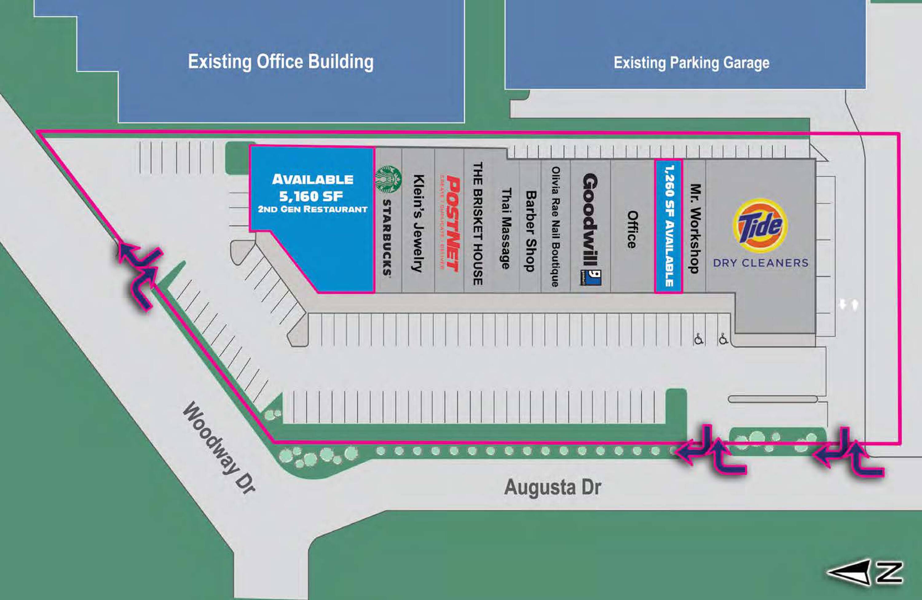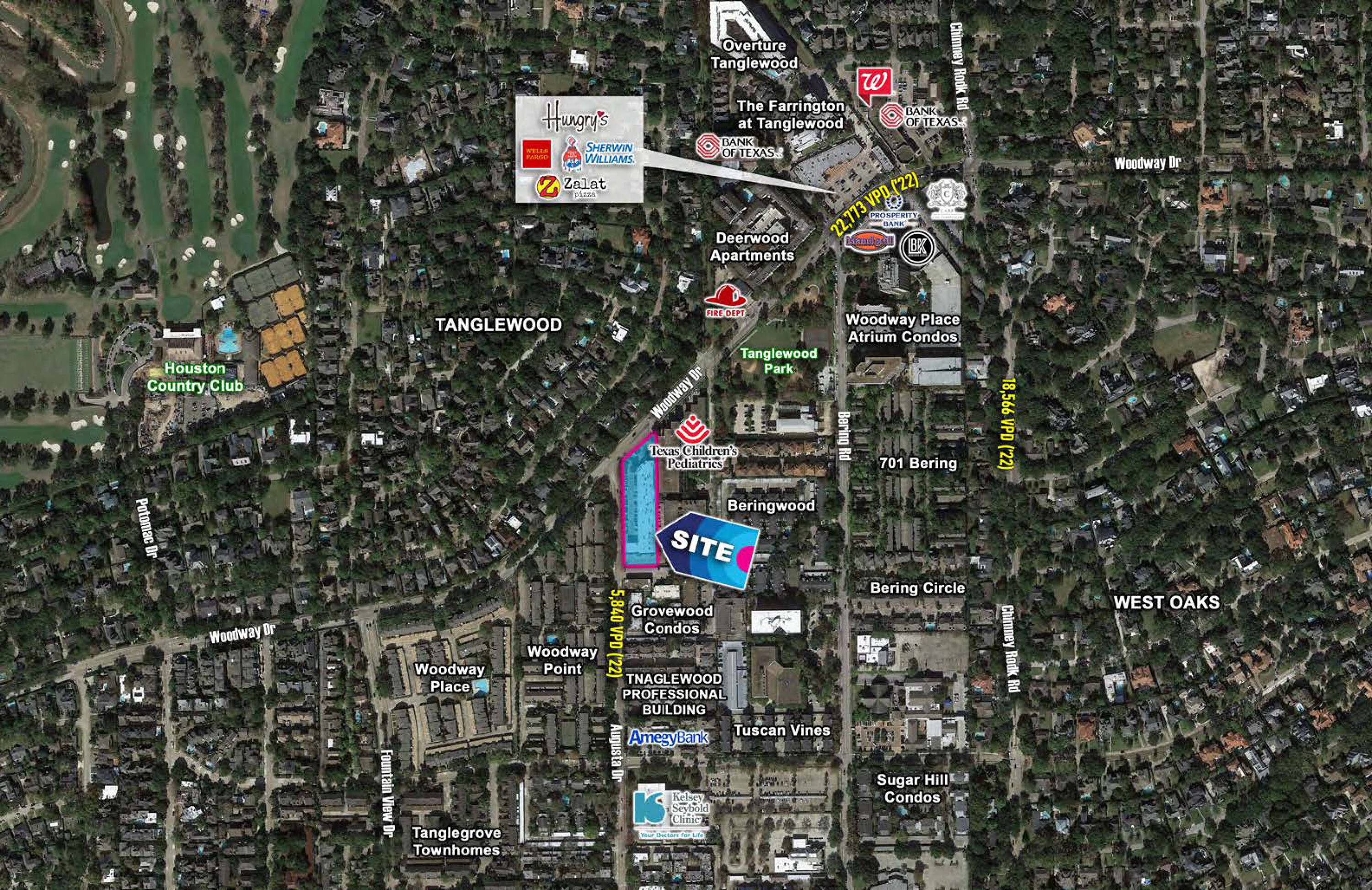 This property features: Located in the heart of Tanglewood at the high‑traffic intersection of Woodway Drive and Augusta Drive.; Densely populated trade area with high incomes: Over 167,000 residents within 3 miles and $230,000+ household income within a mile.; Strong tenant mix including Starbucks, Goodwill, and THE BRISKET HOUSE.