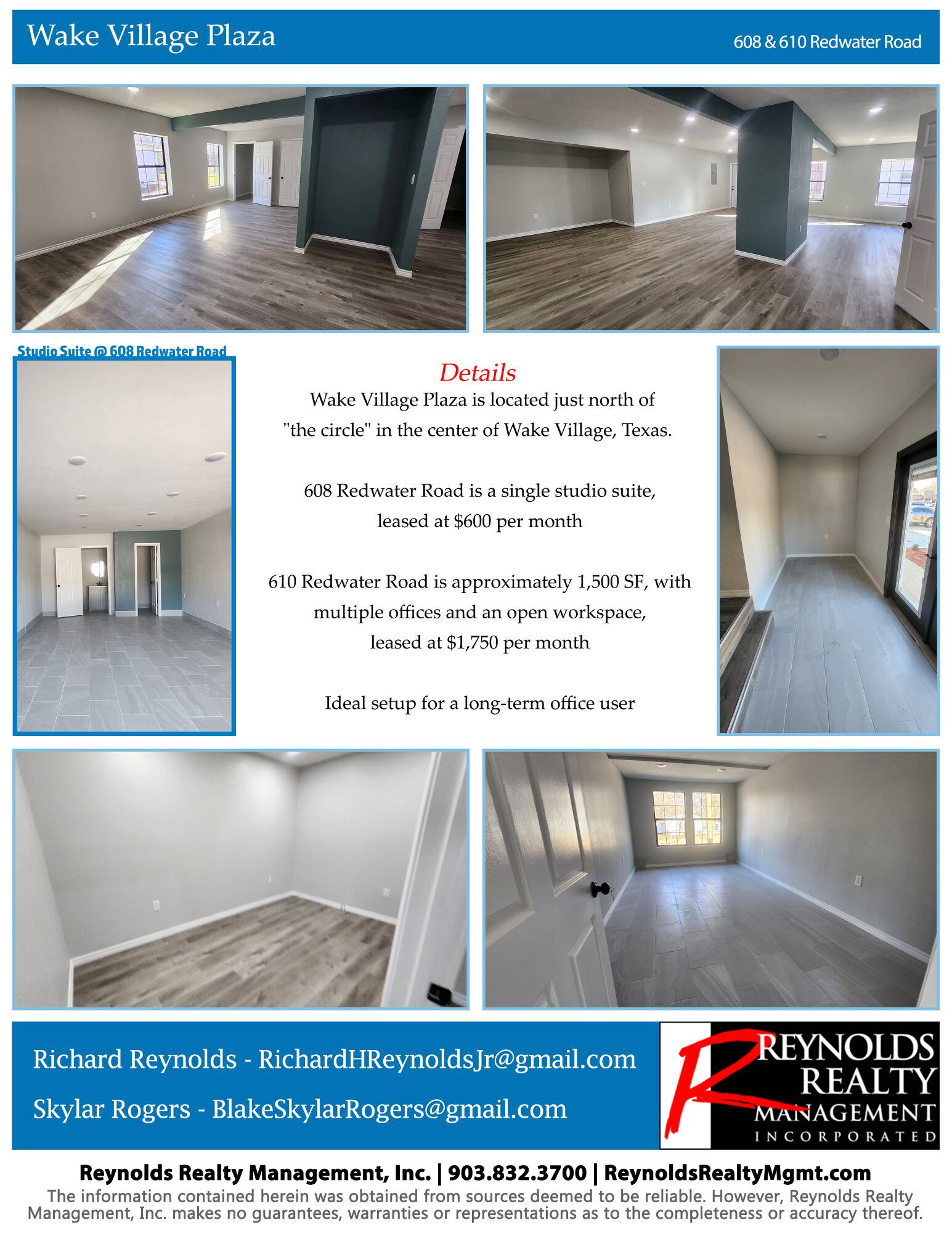 Office spaces available for lease in Wake Village, Texas.