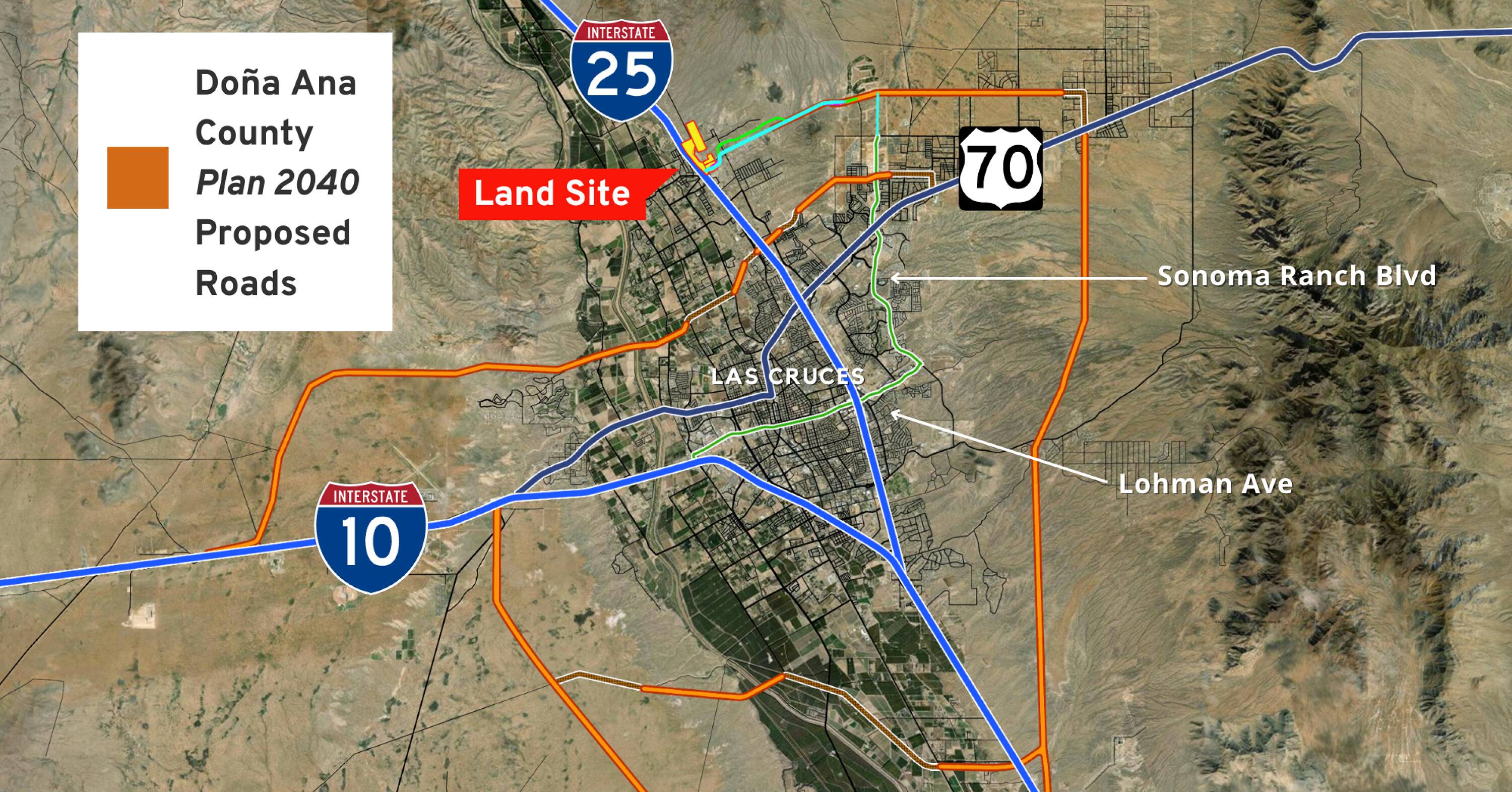 The property encompasses approximately 180.92 acres of land. It features approximately 4272 feet of frontage on I-25. Utilities are available to the site. The location is approximately 8 minutes from central Las Cruces and the developing Sonoma Ranch area.