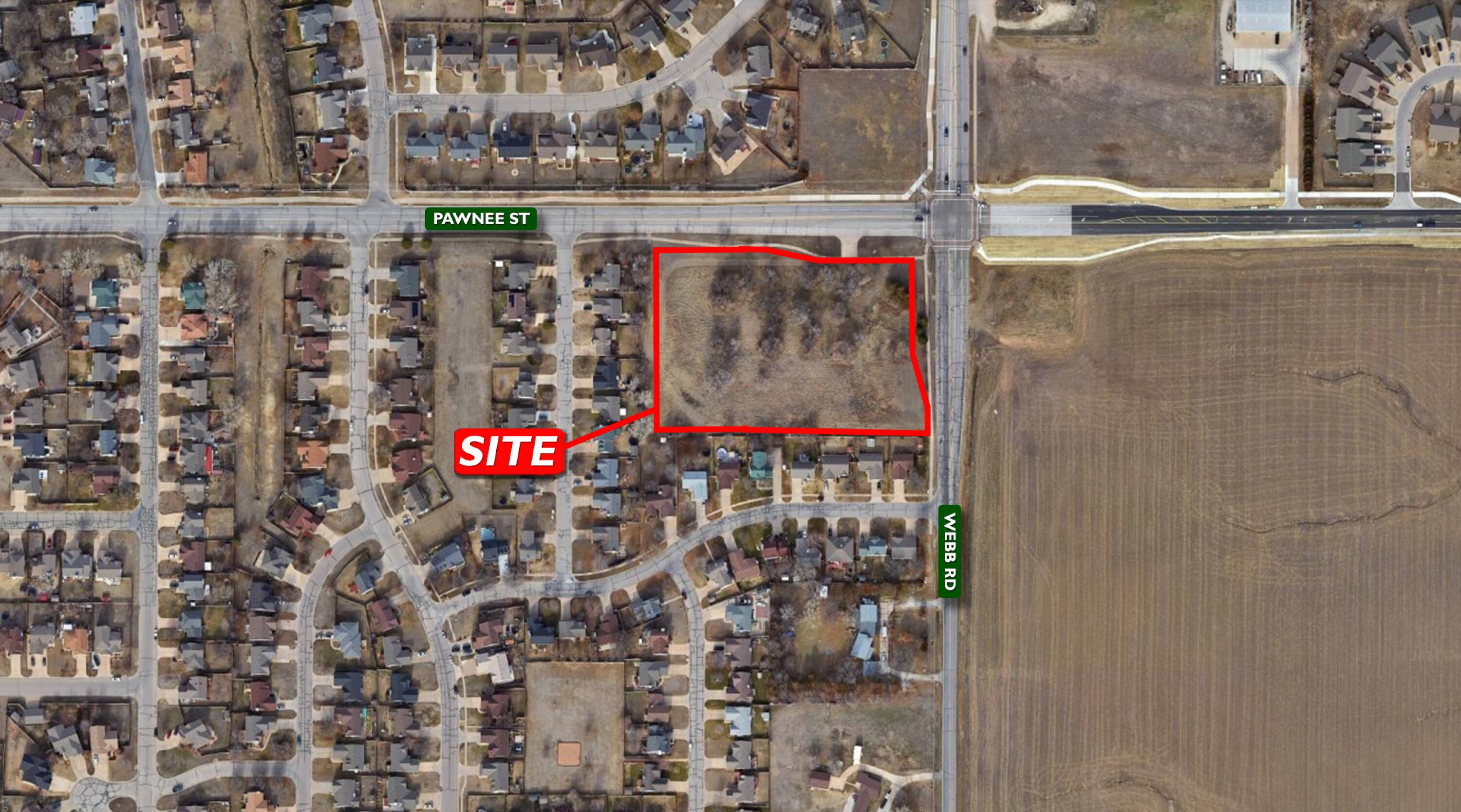 Commercial land for sale at Pawnee and Webb, Wichita.