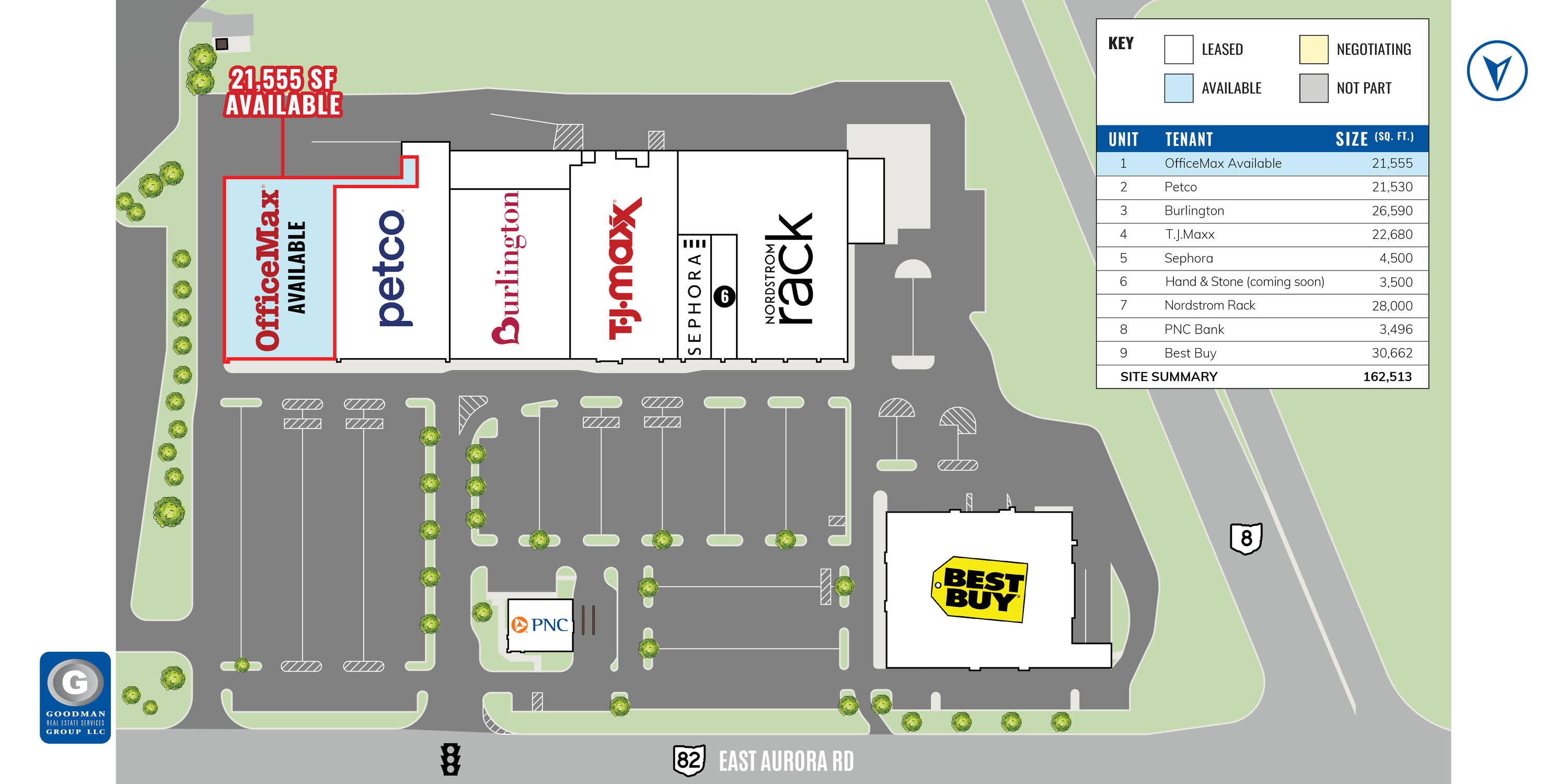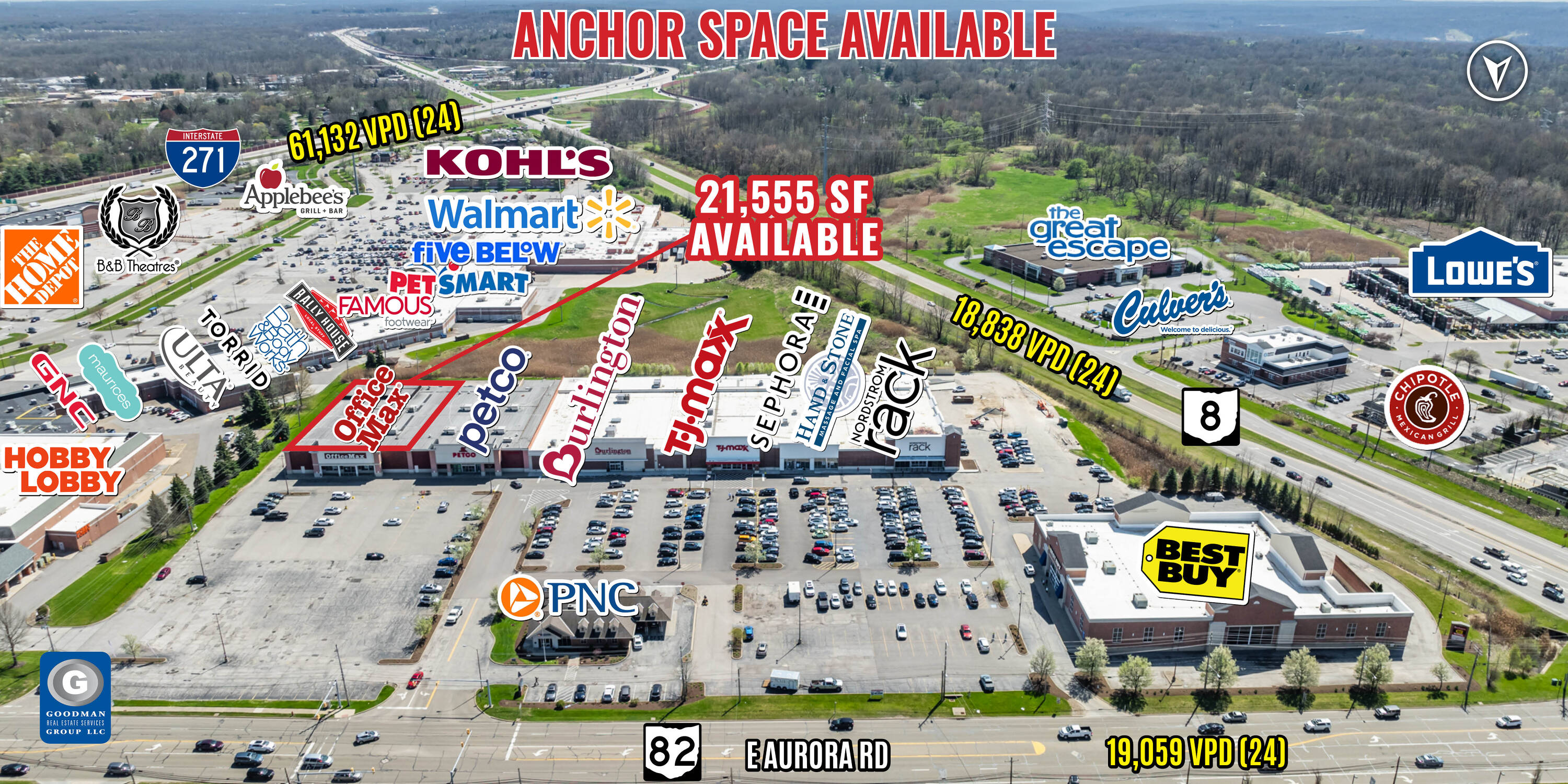 21,555 SF anchor space with maximum visibility and access.