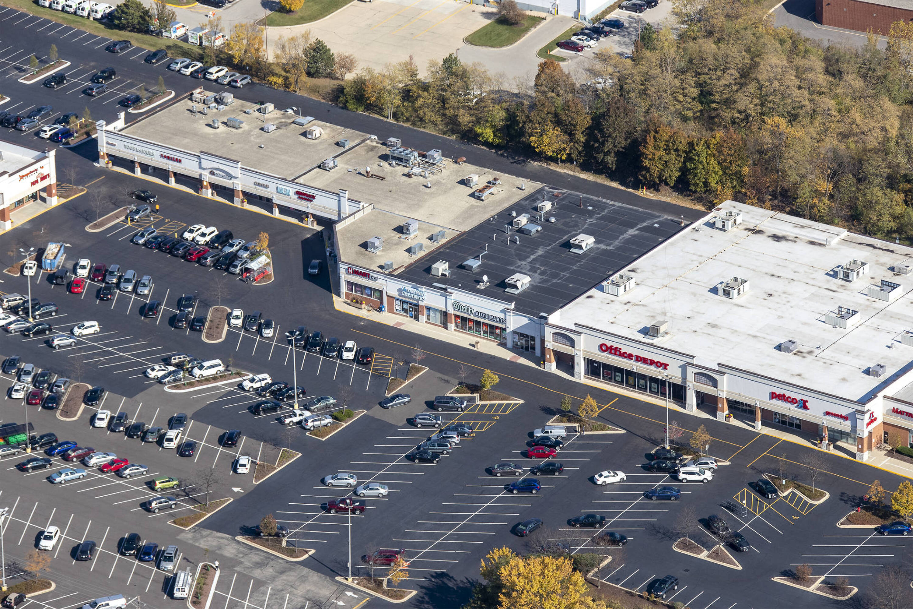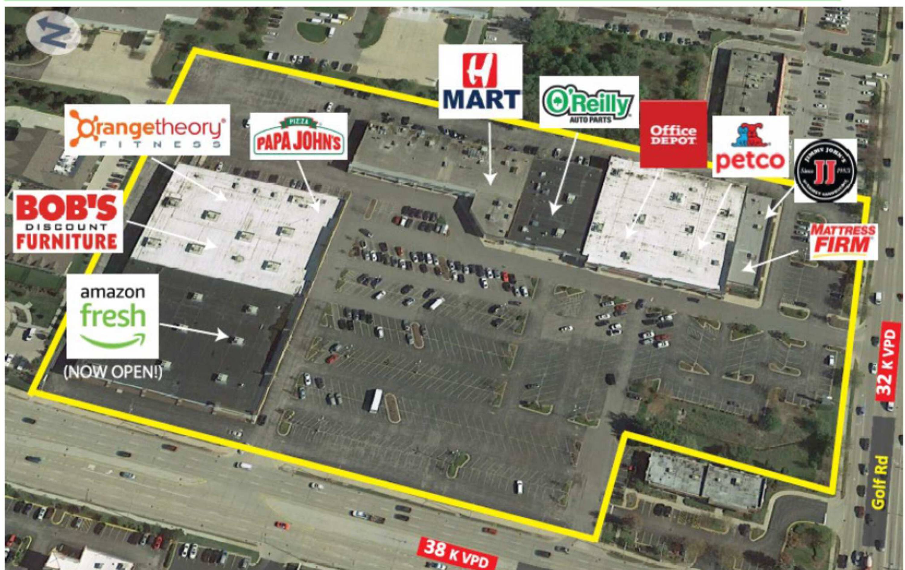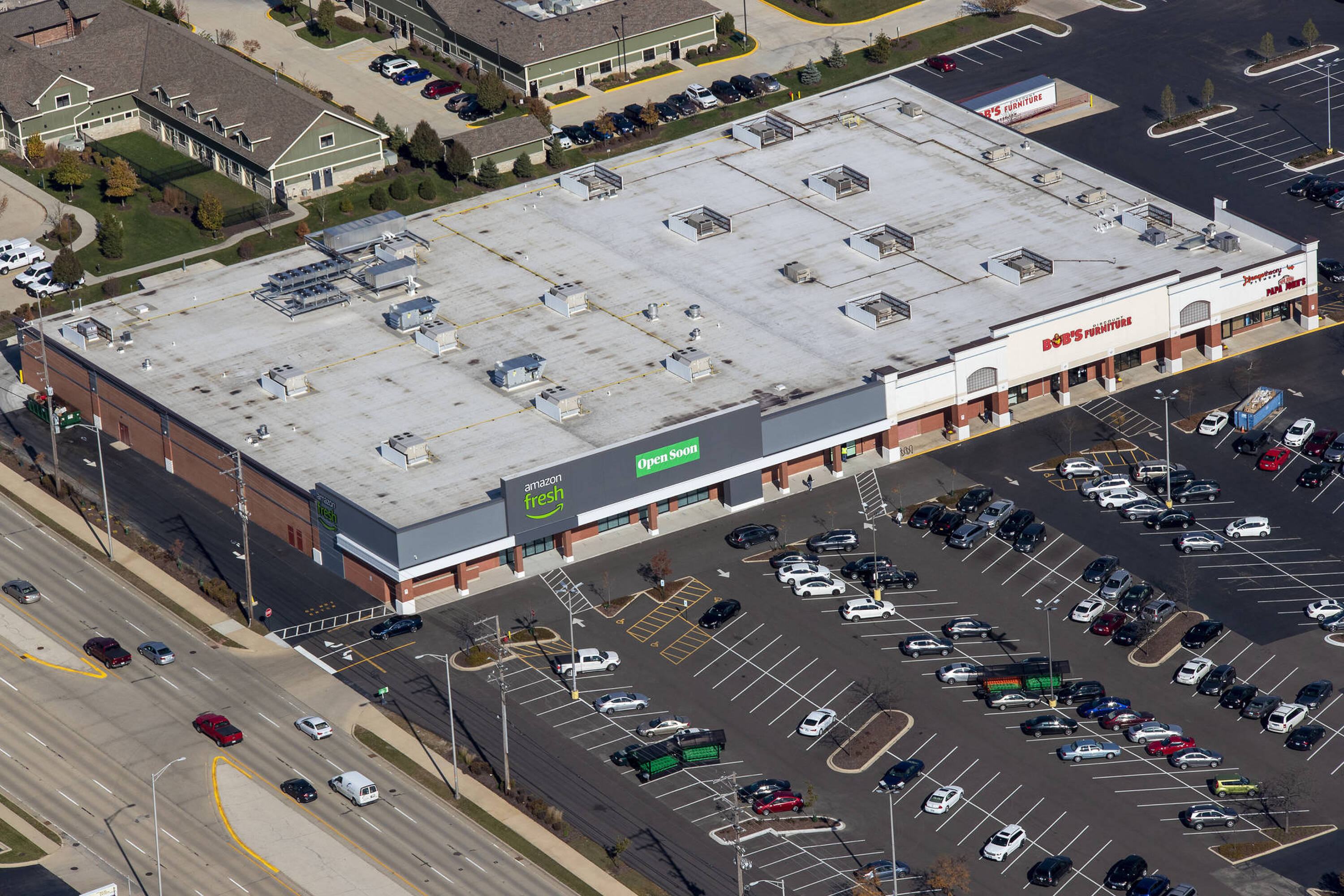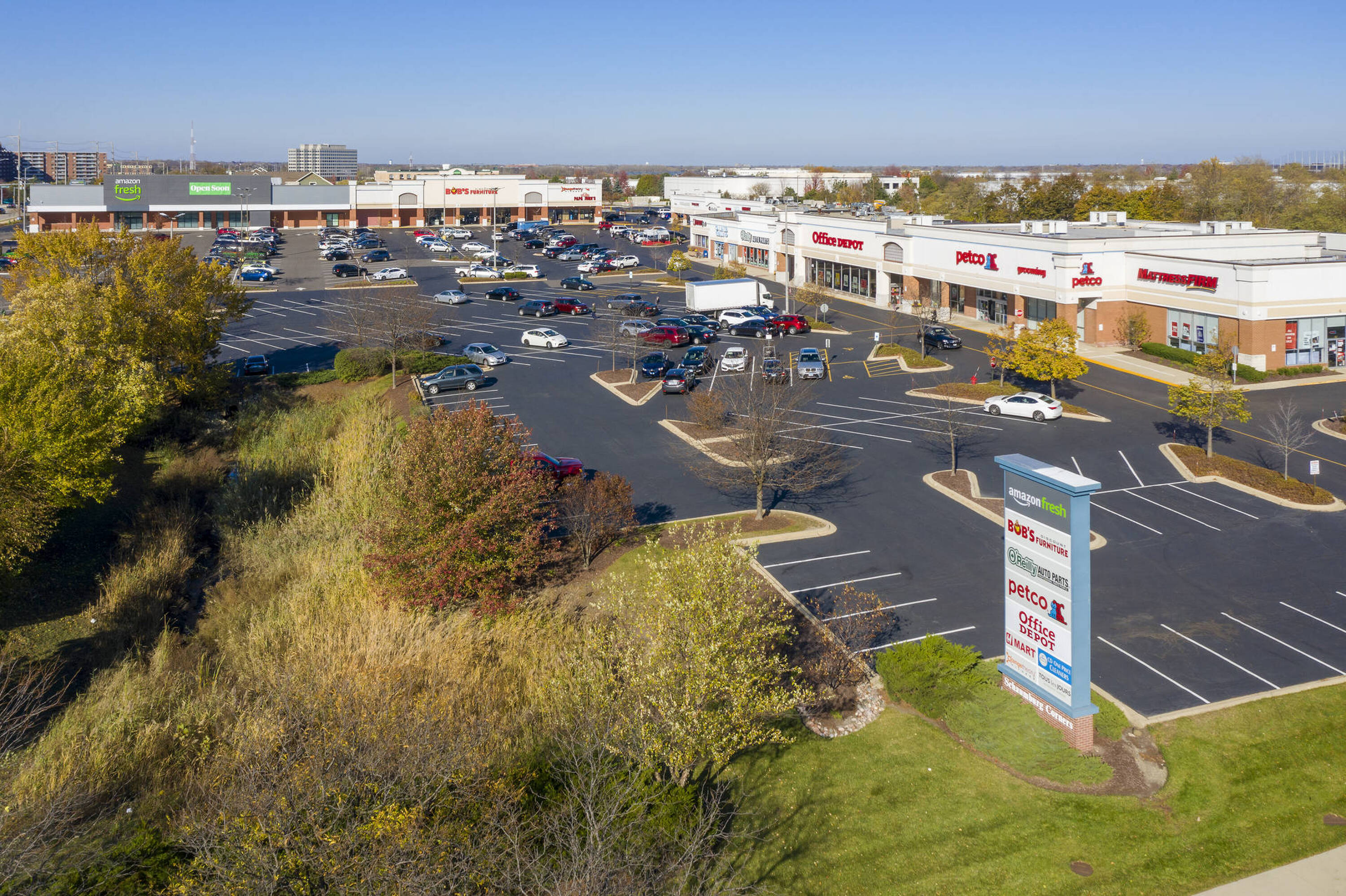 Retail space anchored by Amazon Fresh in Schaumburg's retail corridor.