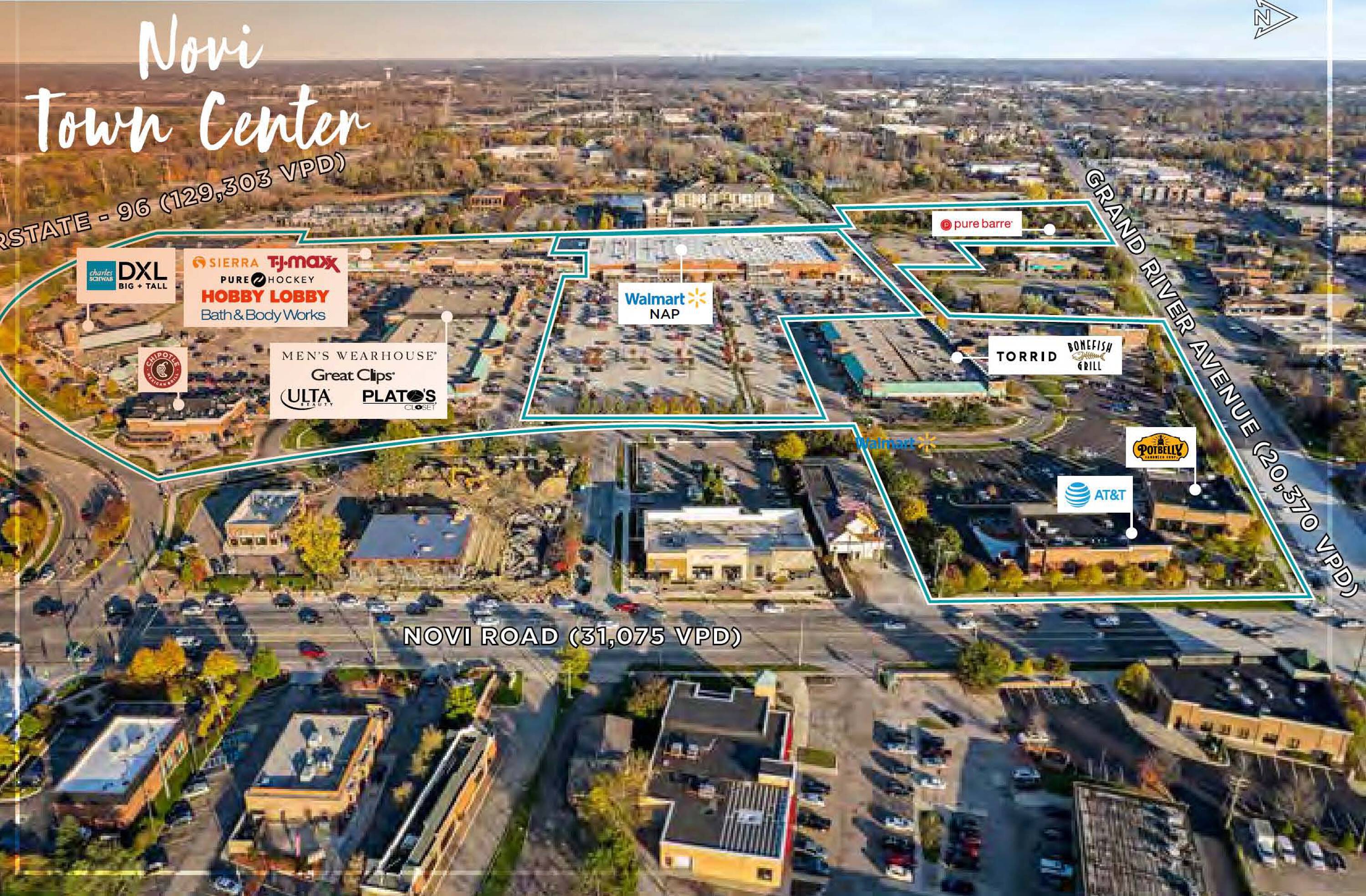 Retail space available for lease in Novi, Michigan.