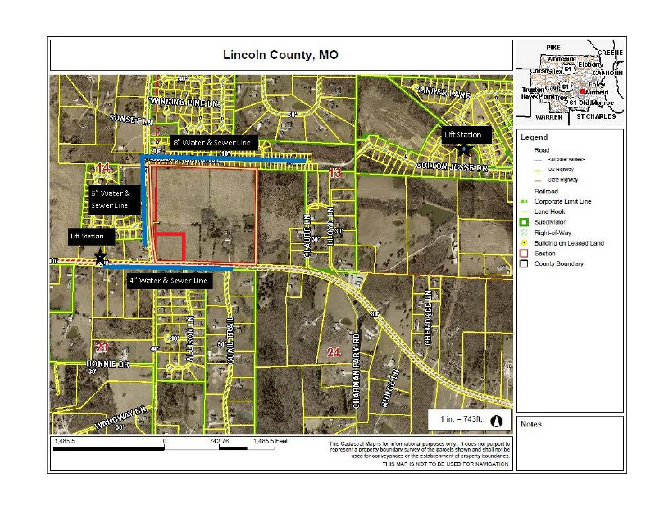 This commercial site offers high traffic and high visibility, situated near the intersection of Highway 47 and Highway W, approximately 7 miles east of Troy. The property is suitable for a commercial, retail, automotive, contractor, or professional business. The intersection is projected to have a traffic light installed in the future. The surrounding 41+/- acre development includes adjoining lots with a Casey's General Store and a Dollar General. All utilities are available to the site. The area is experiencing substantial residential growth, with over 5,000 homes currently within a 5-mile radius of the location. Additional acreage and lots are available adjoining this site.