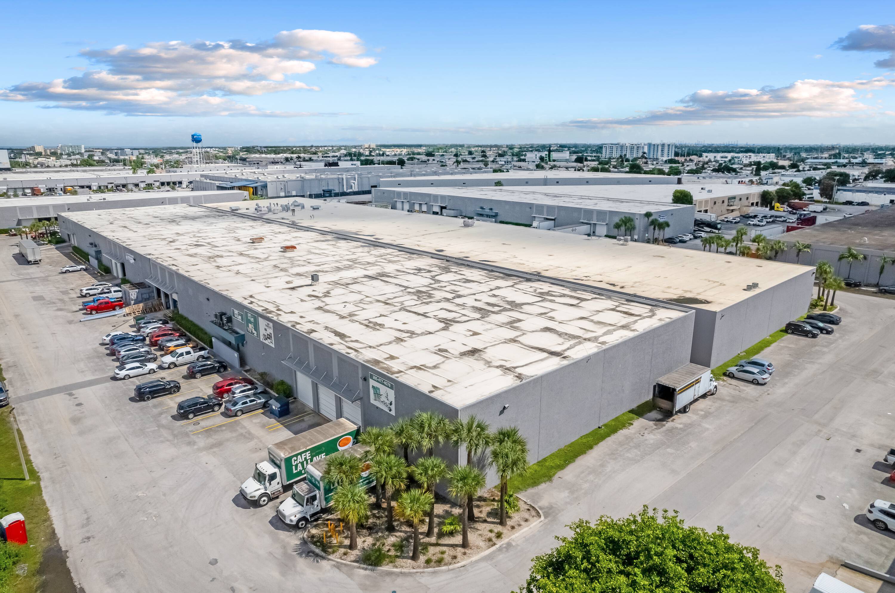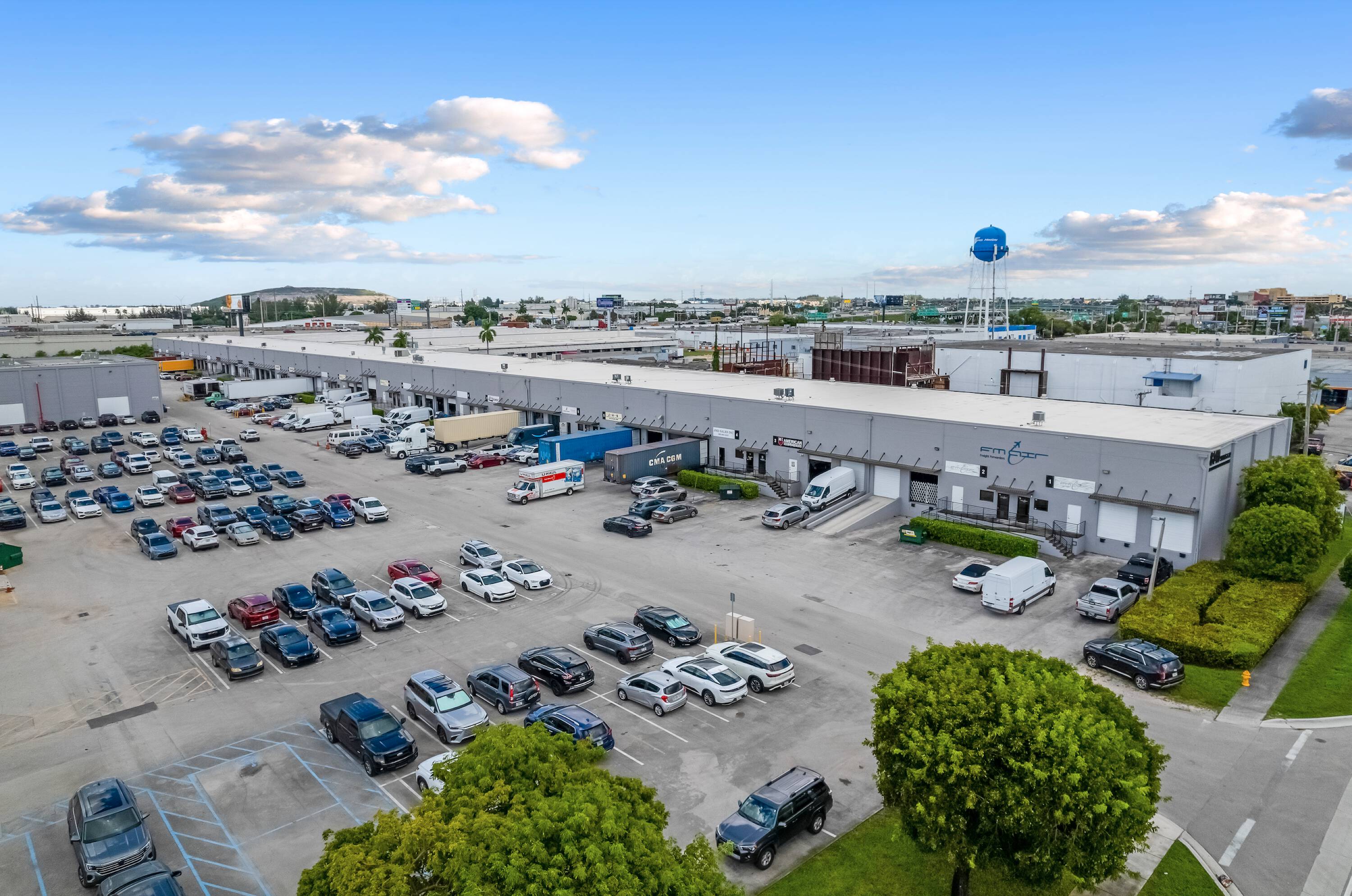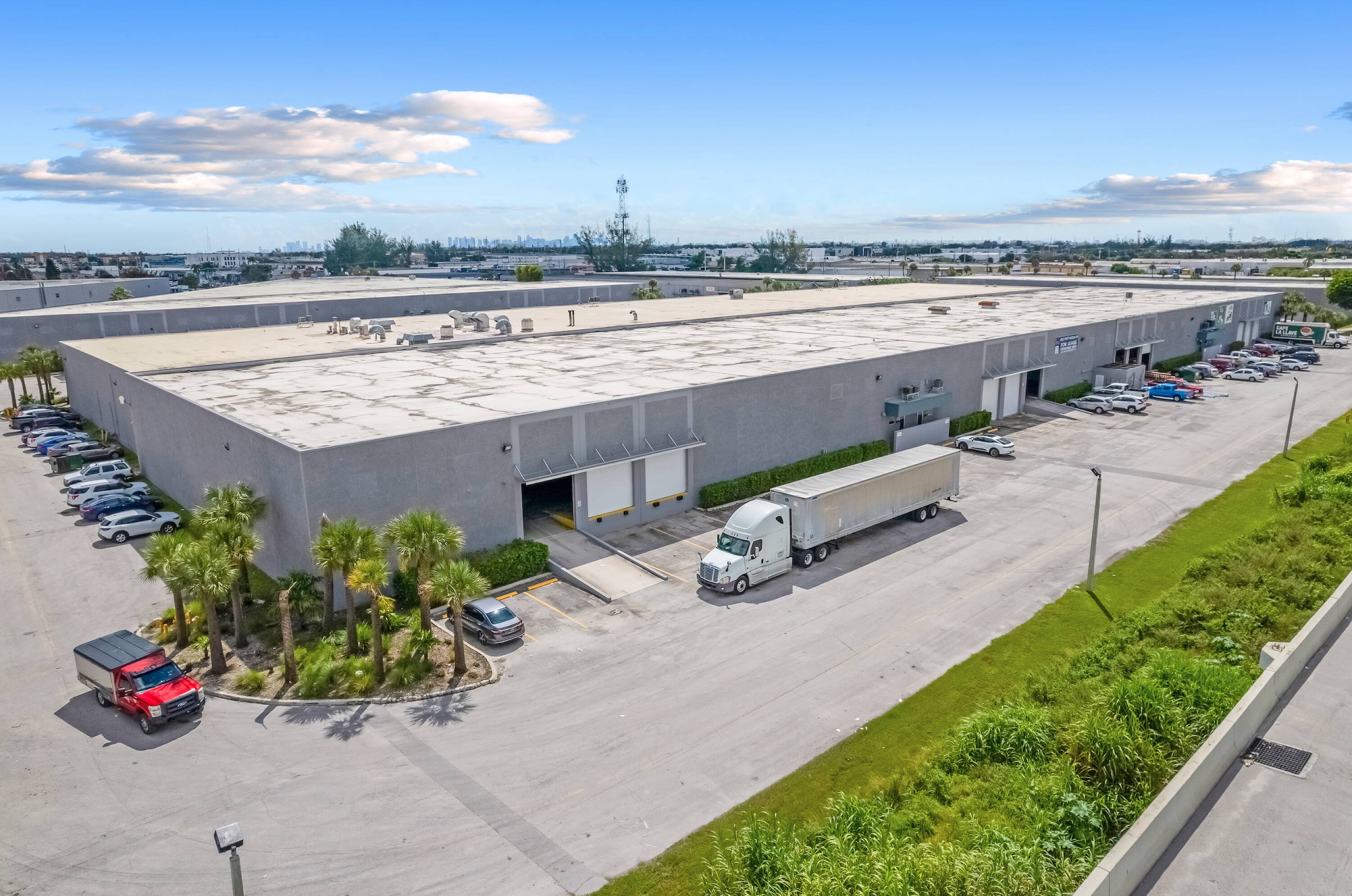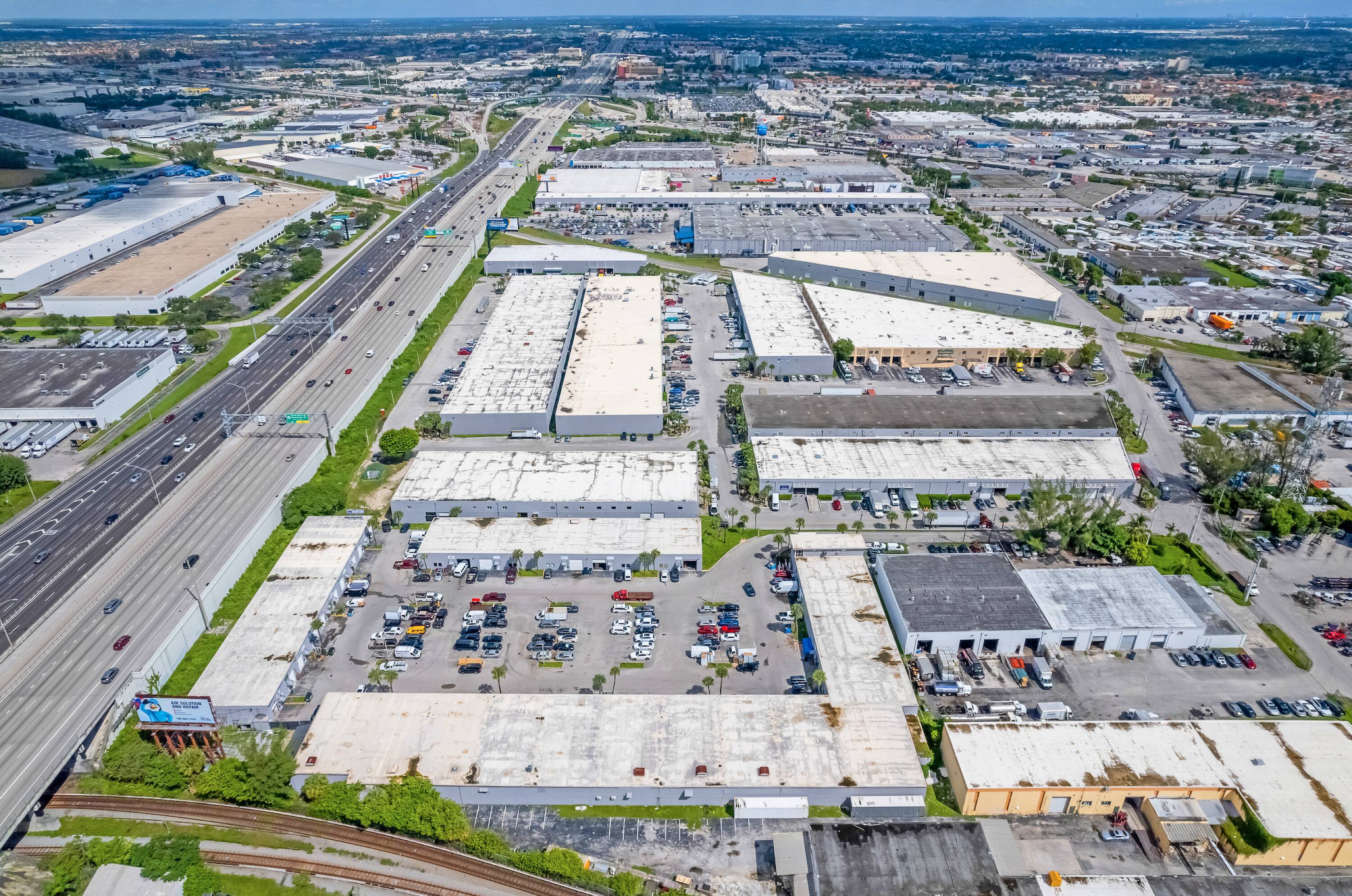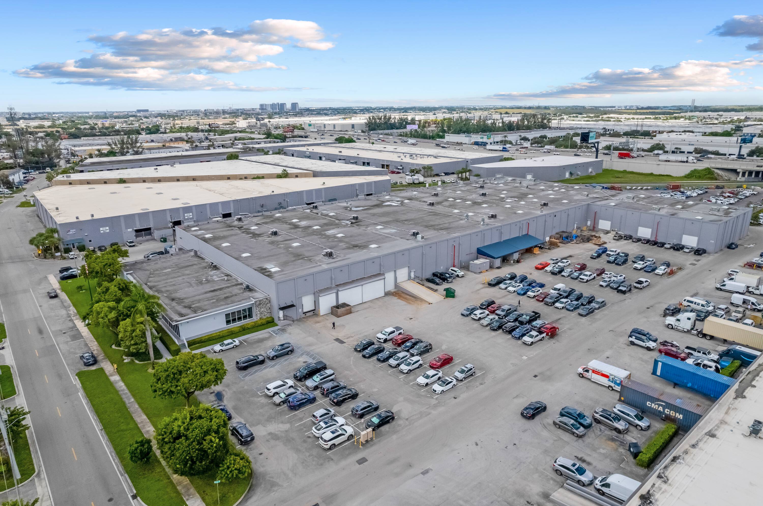 Medley Palmetto Industrial Park features 10 concrete dock-high buildings suitable for distribution or manufacturing. The minimum unit size is 3,080 square feet. The property includes fully air-conditioned office space, 20 to 24-foot clear ceilings, and 150-foot truck courts. The industrial warehouse space is located within the Medley industrial market.
