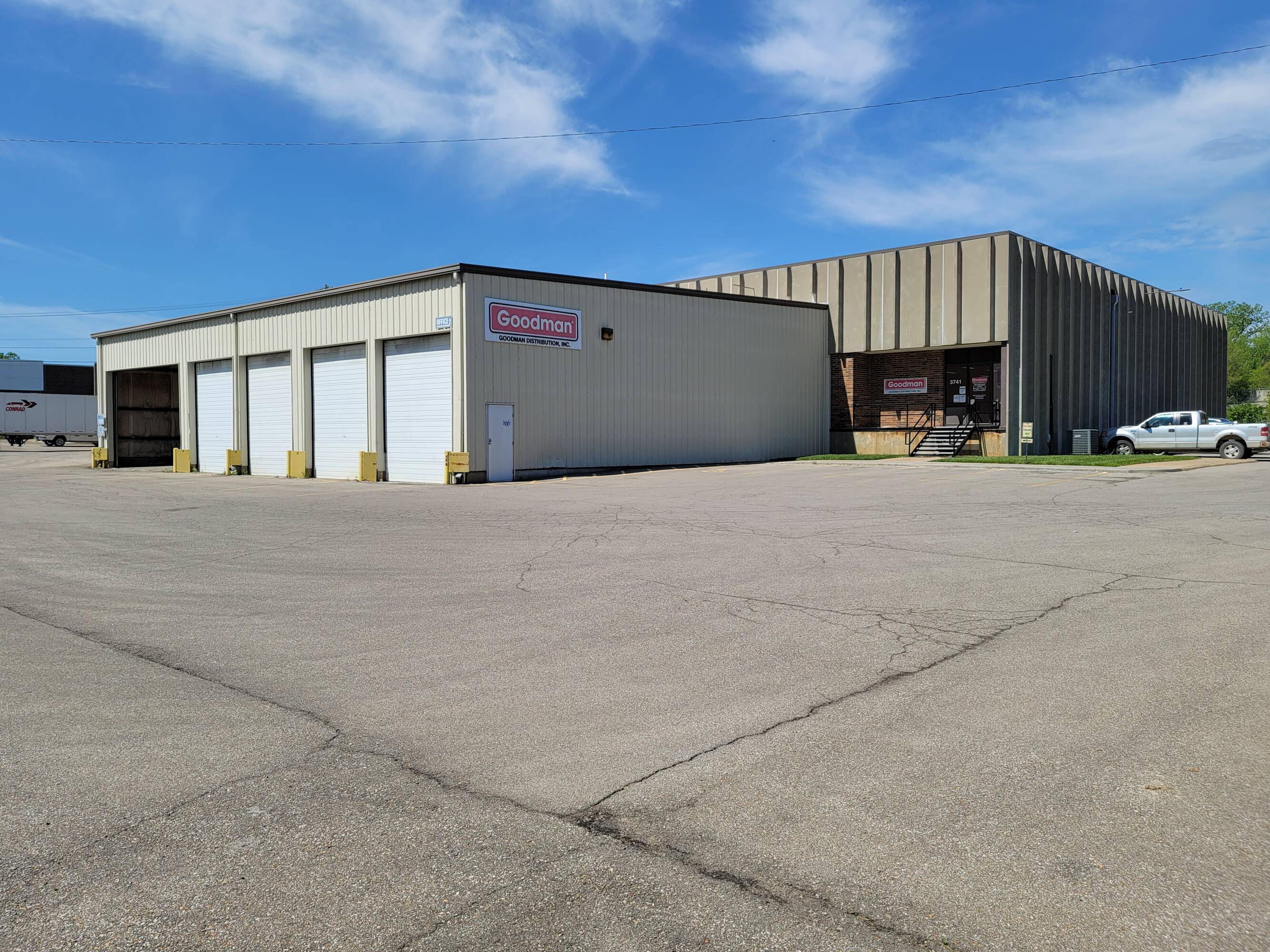 Drive-in, dock-high warehouse with fenced parking and yard.