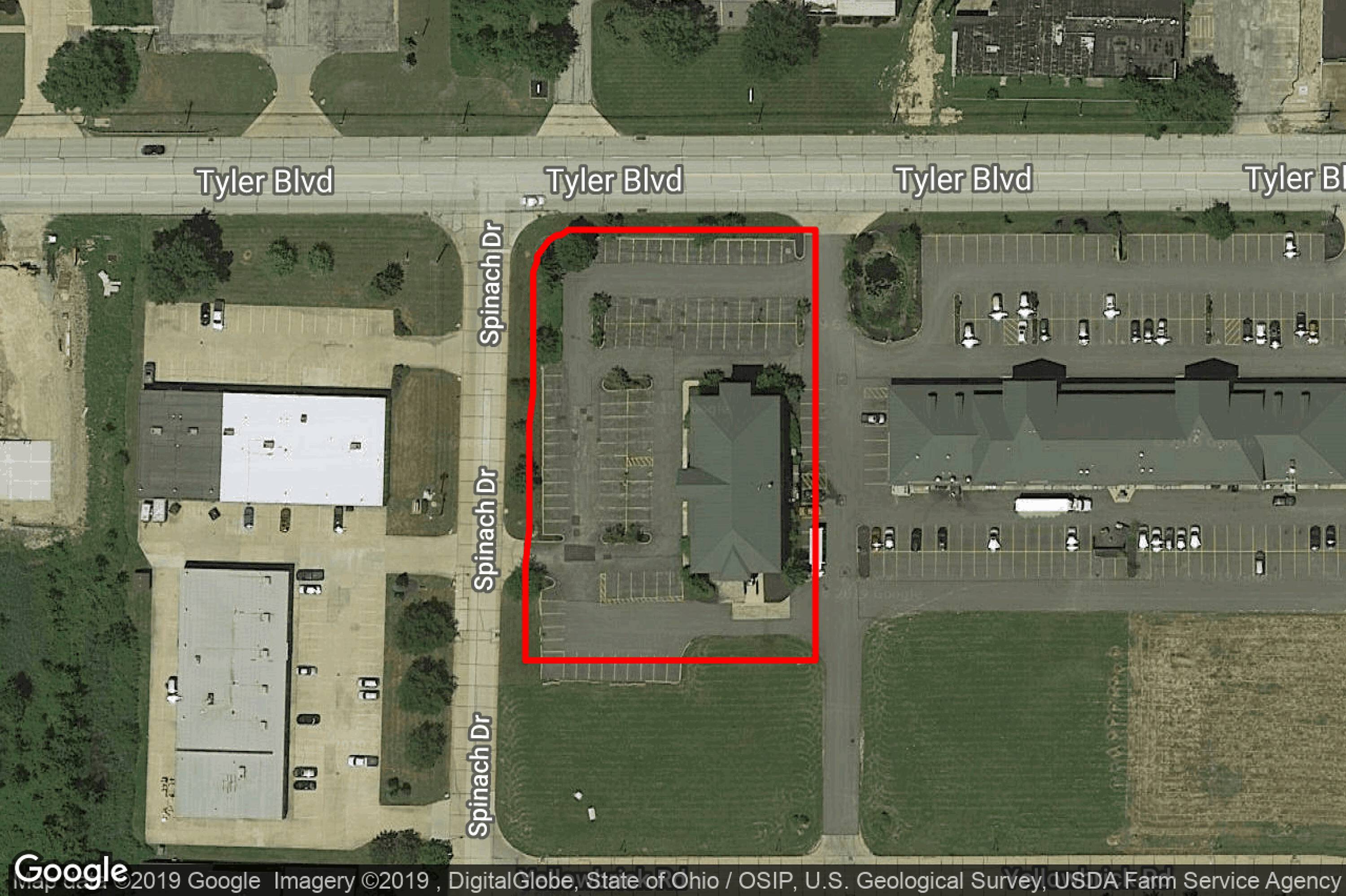 This property features: High visibility location near State Routes 2 and 615, in a fast‑growing area across from a newly opened Starbucks.; Ample parking and easy access with drives onto Spinach Drive and Yellowbrook Road.; Fully ADA compliant building with ADA elevators and common area restrooms.