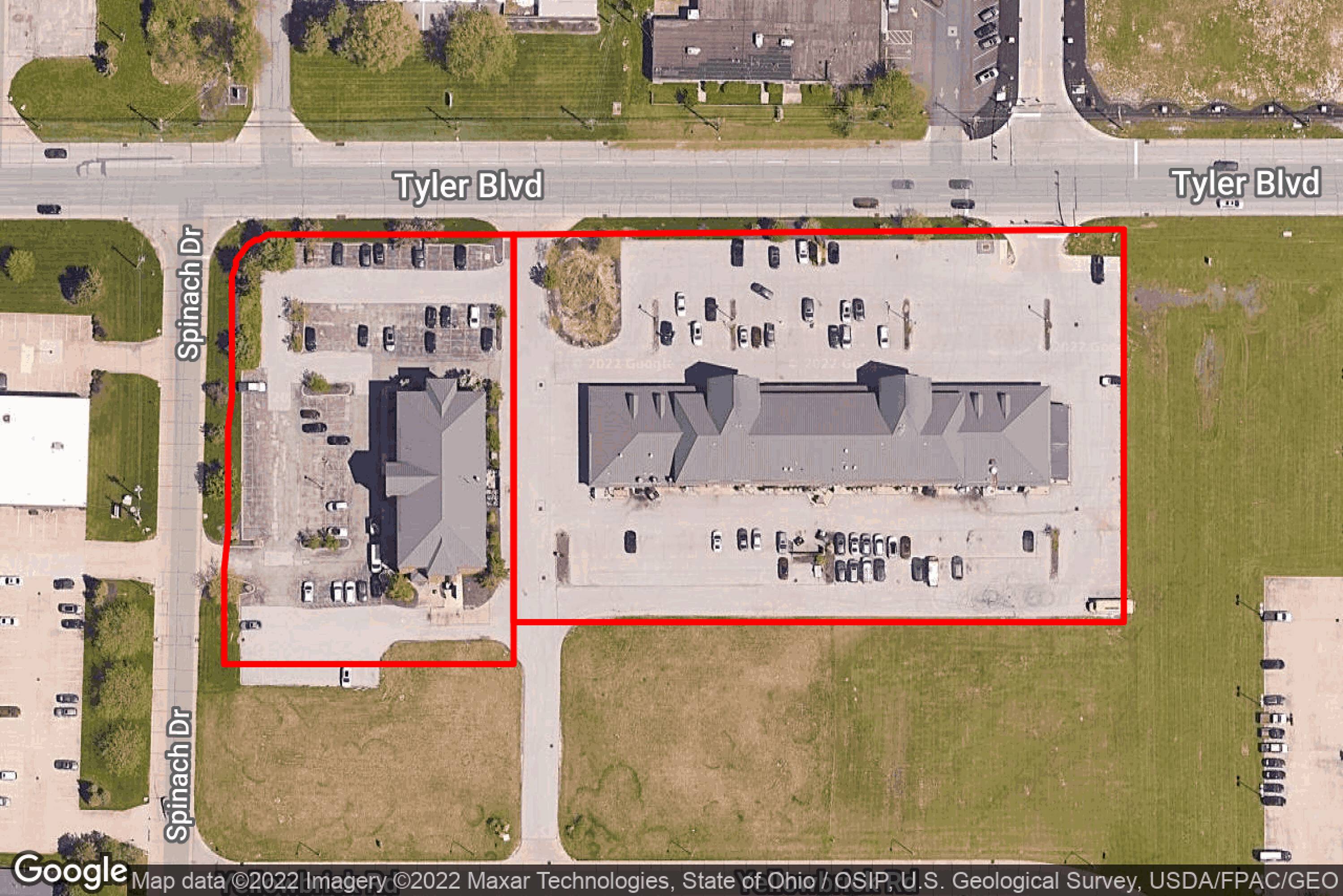 This commercial real estate offers a 1,450± square foot office unit, which can be combined with Suite 210. Located on the second floor, the unit is accessible via elevator and stairs. The building features common area ADA restrooms in the hall and ample window space. The building is fully ADA compliant and includes ADA elevators. Ample parking surrounds the building. A newly installed traffic signal aligns with “The City Market” development on Tyler Blvd. The property is in close proximity to State Route 615 (Center St) and provides access drives onto Spinach Drive and Yellowbrook Road. The location is visible from State Routes 2 and 615 and is situated on a Laketran Public Transportation Bus Route in a fast-growing area, across from a newly opened Starbucks.