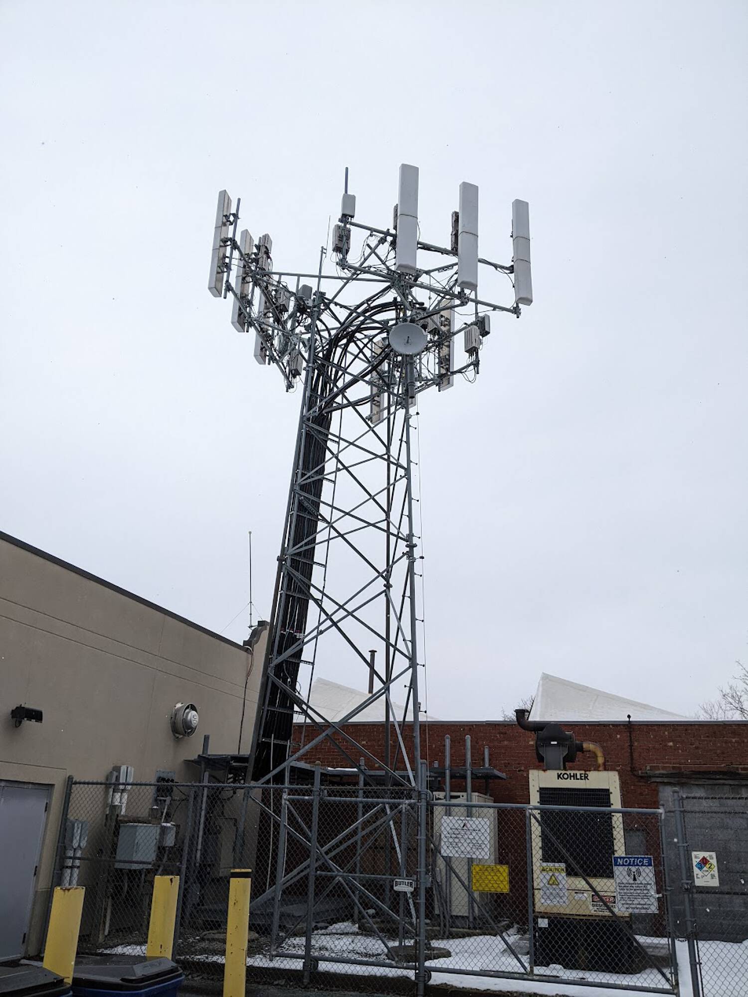 Highly visible office building near downtown Syracuse with Verizon tower.