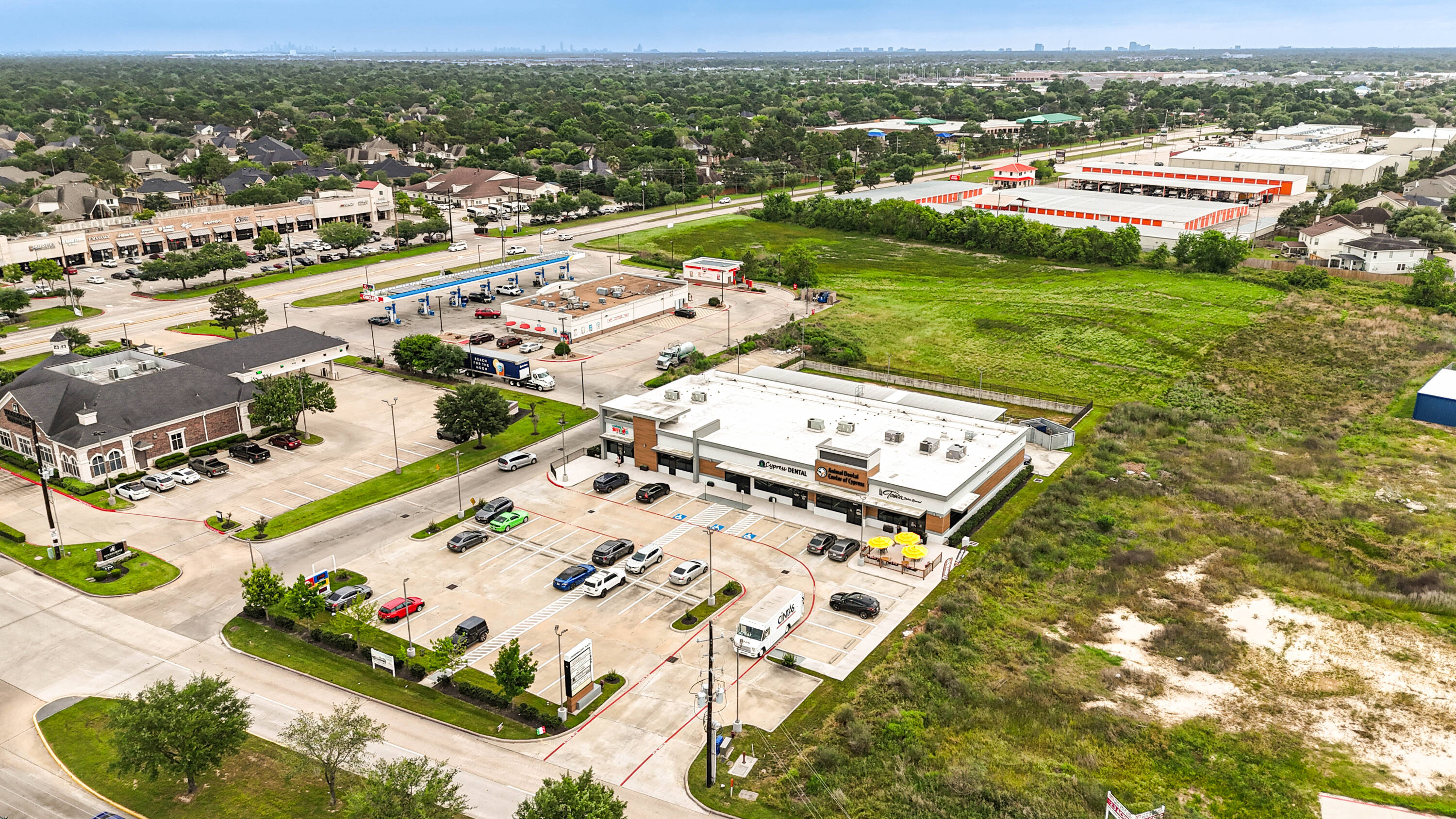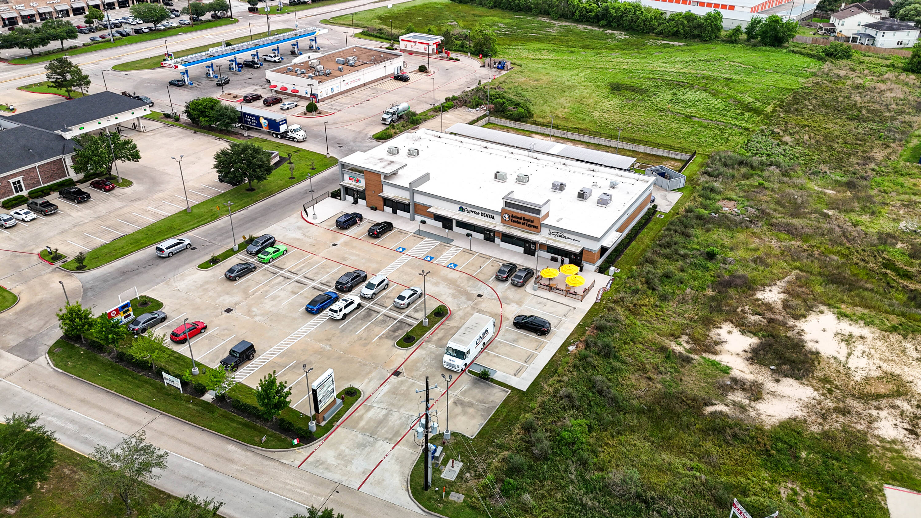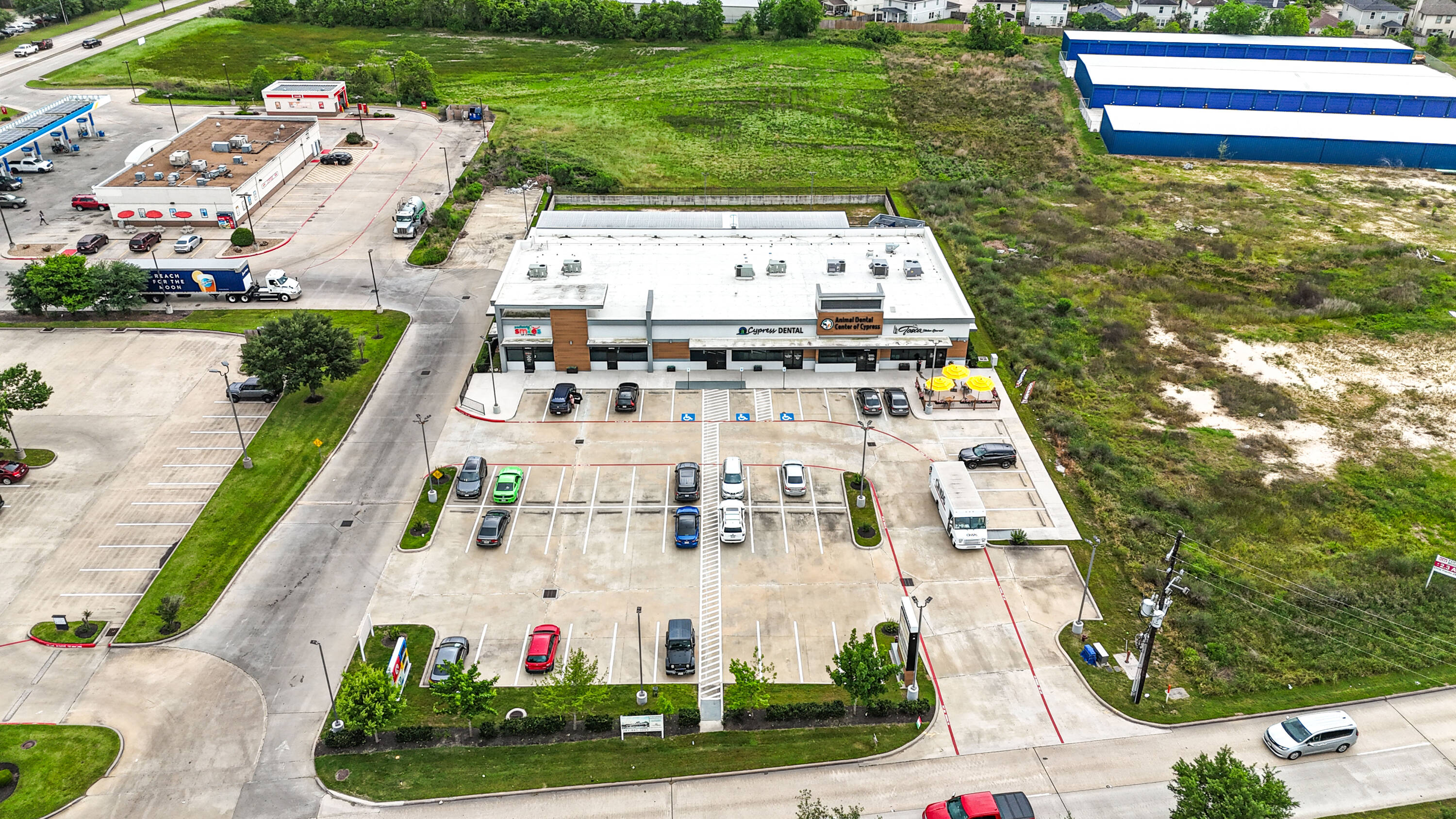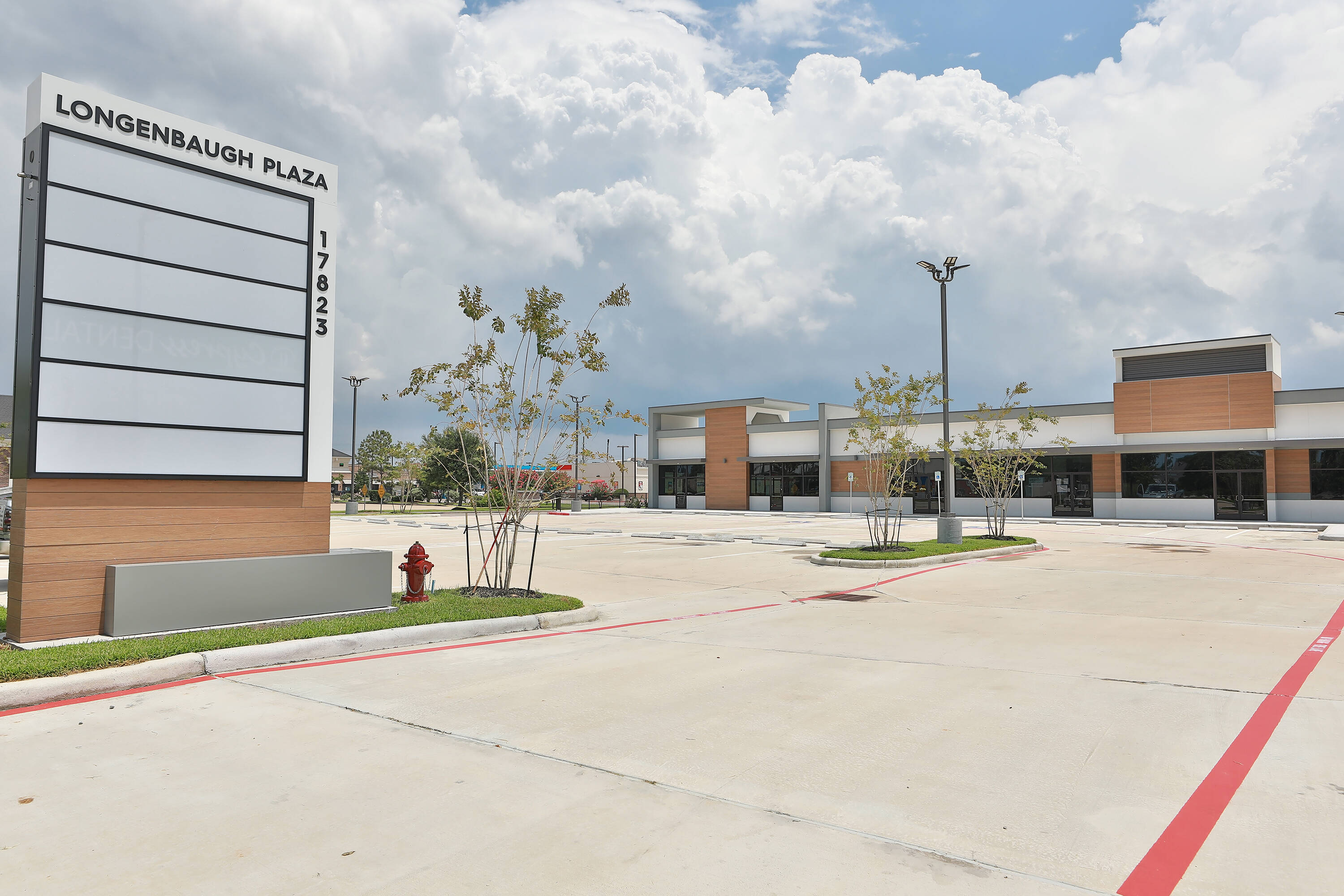 New construction retail space for lease in Cypress, Texas.
