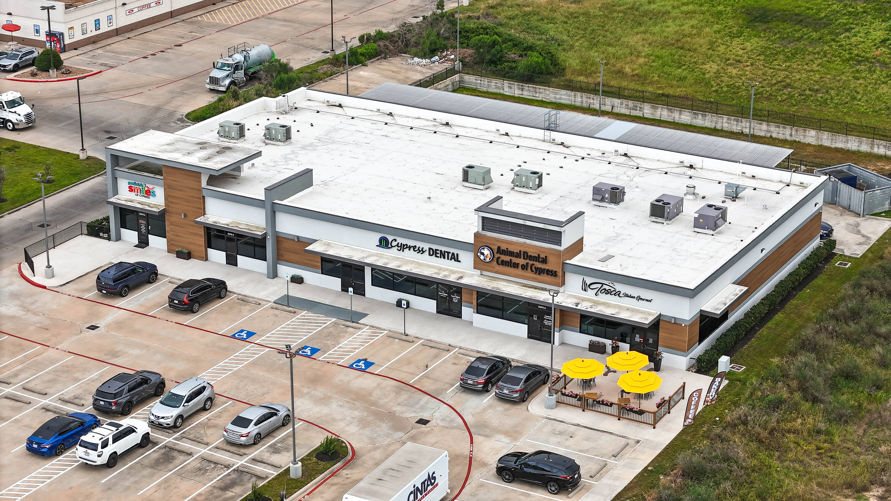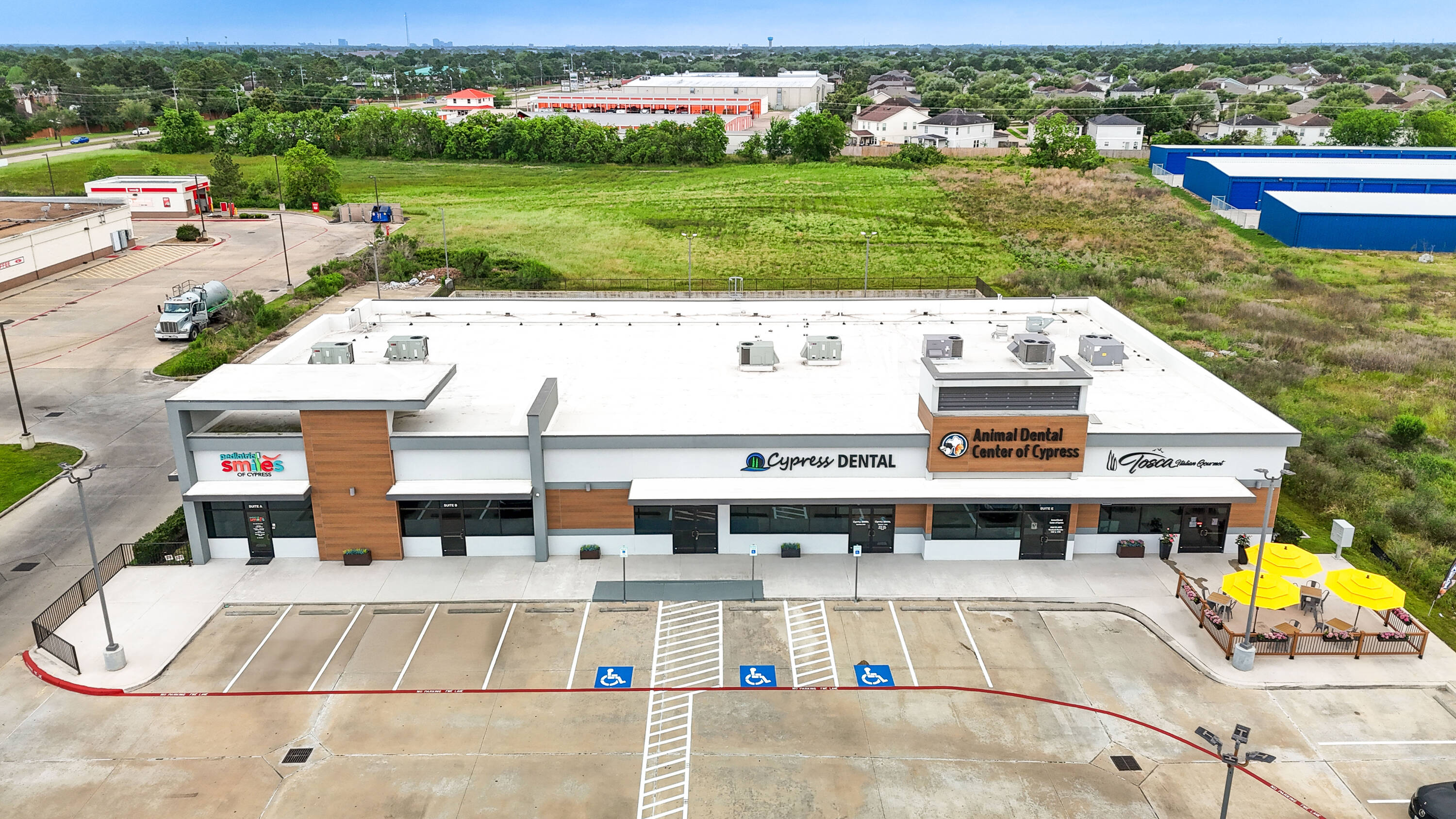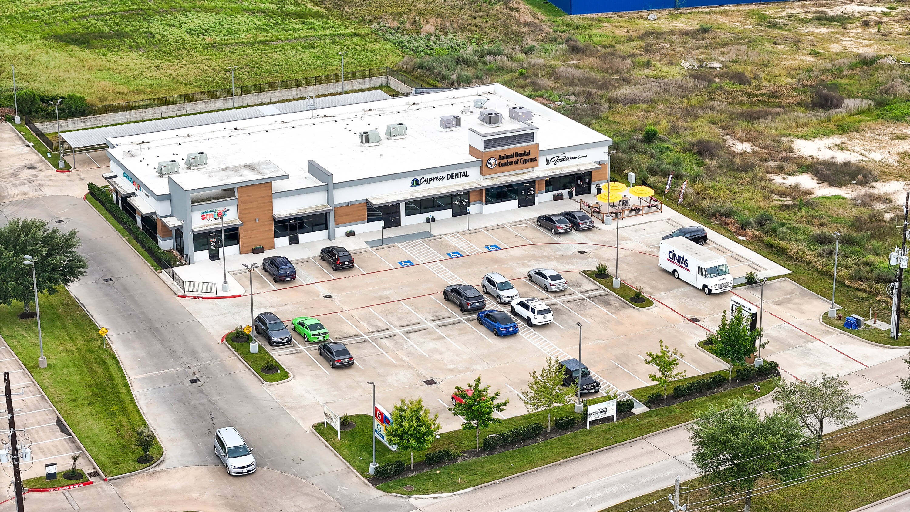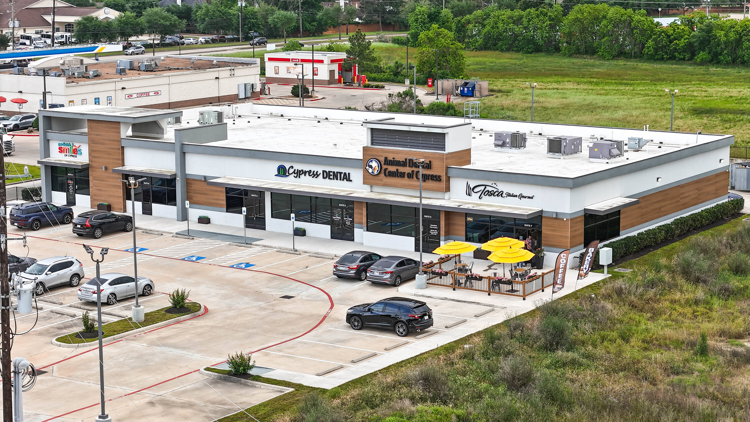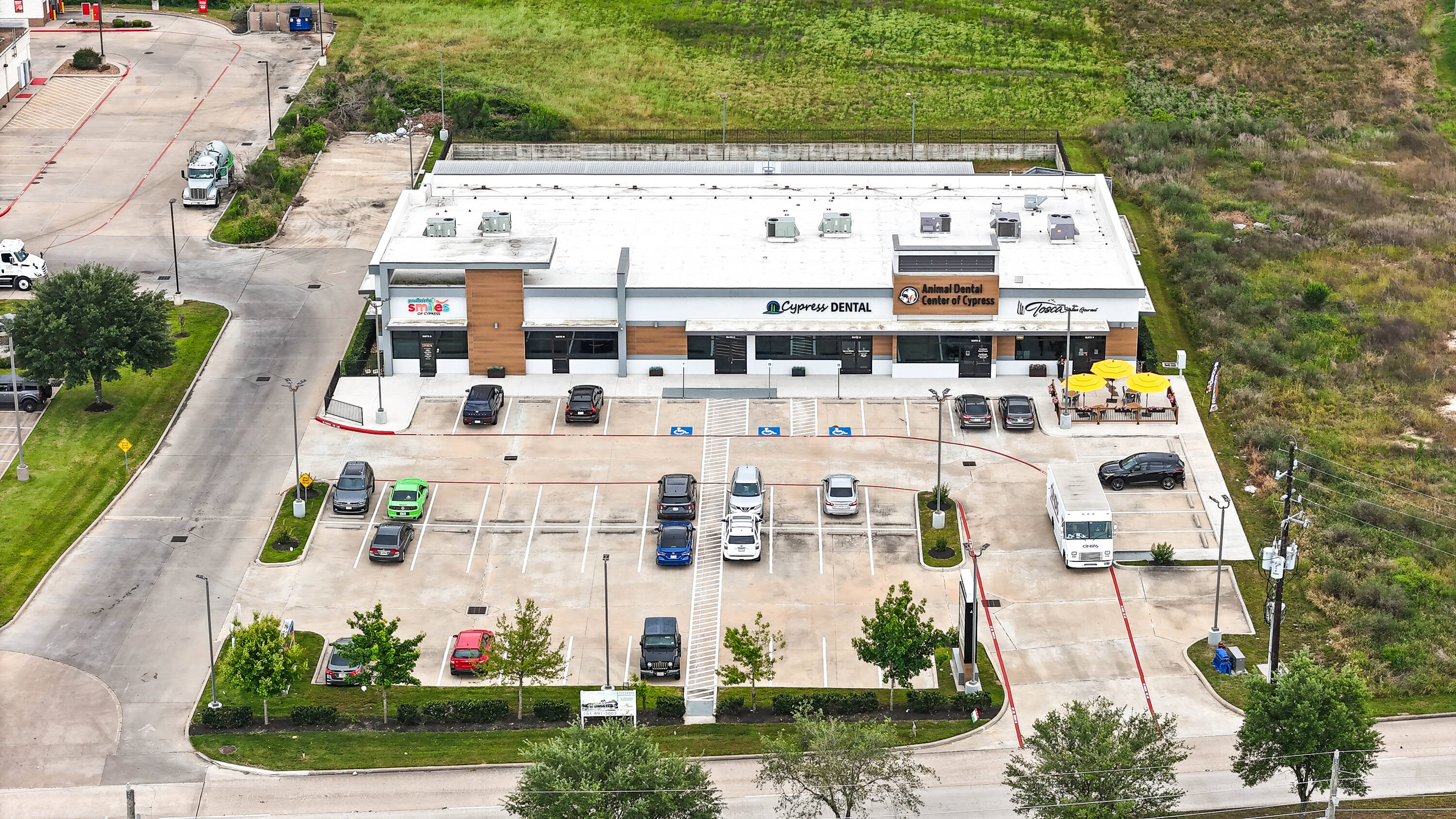 New construction retail space for lease in Cypress, Texas.