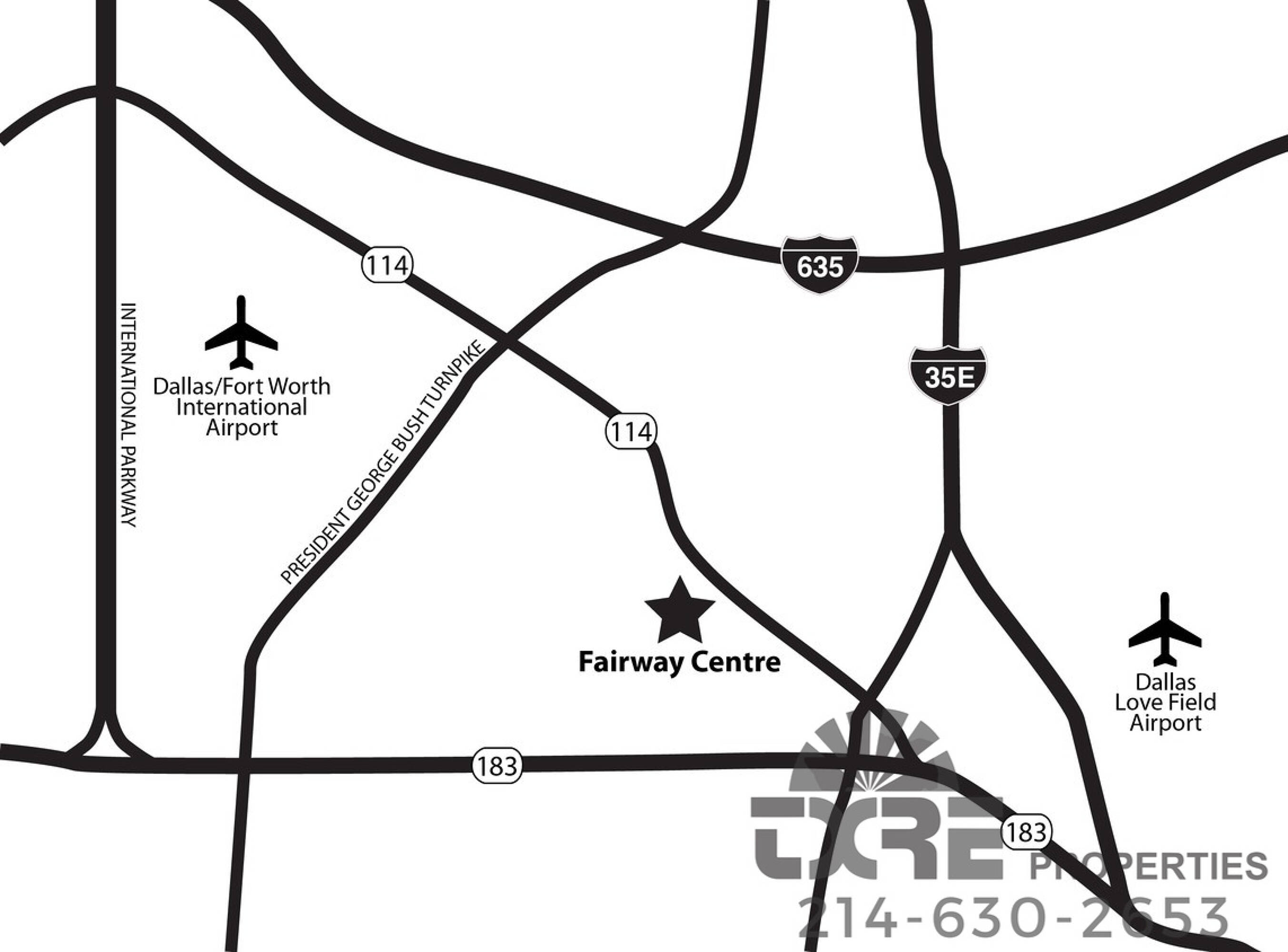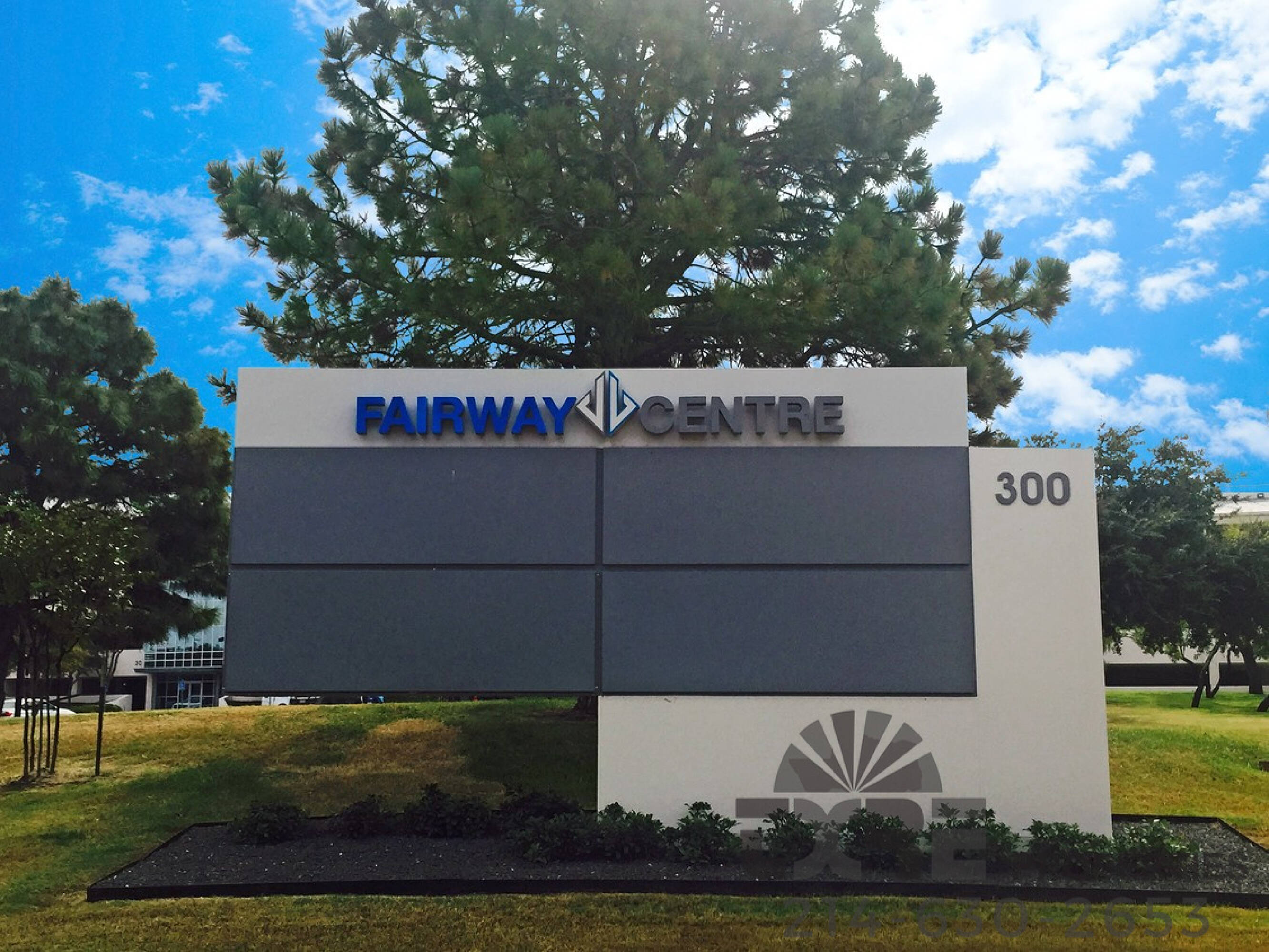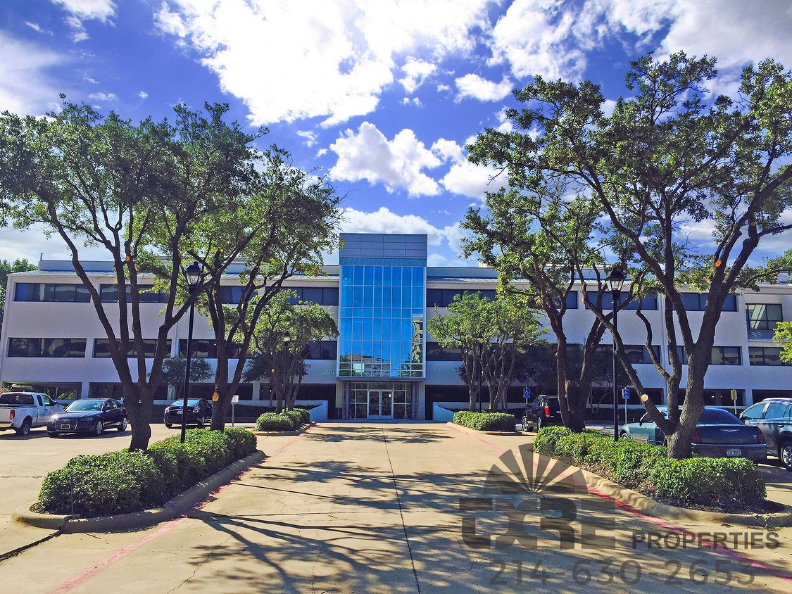 Modern office building near airports and Las Colinas Country Club.