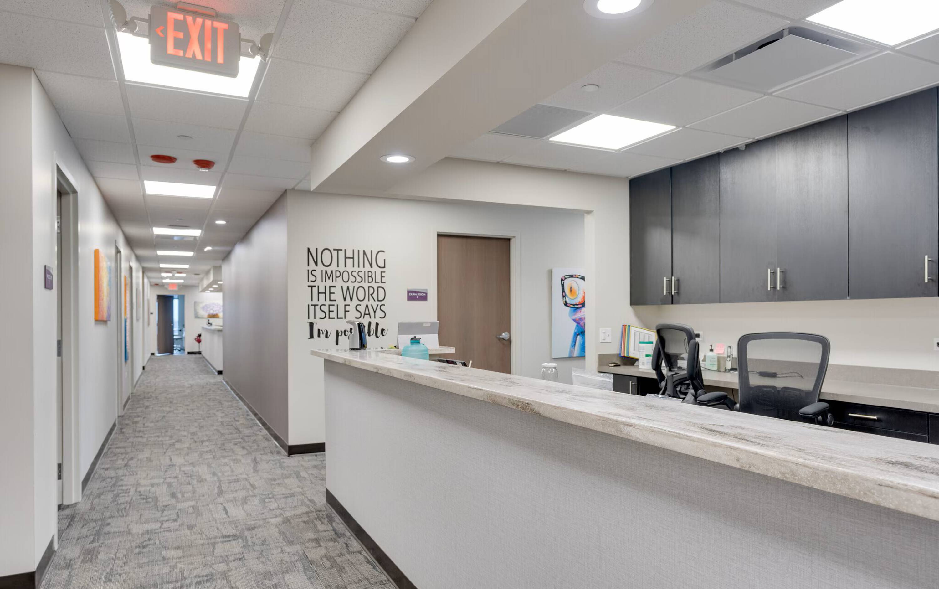 private bathroom large reception area window offices therapy space