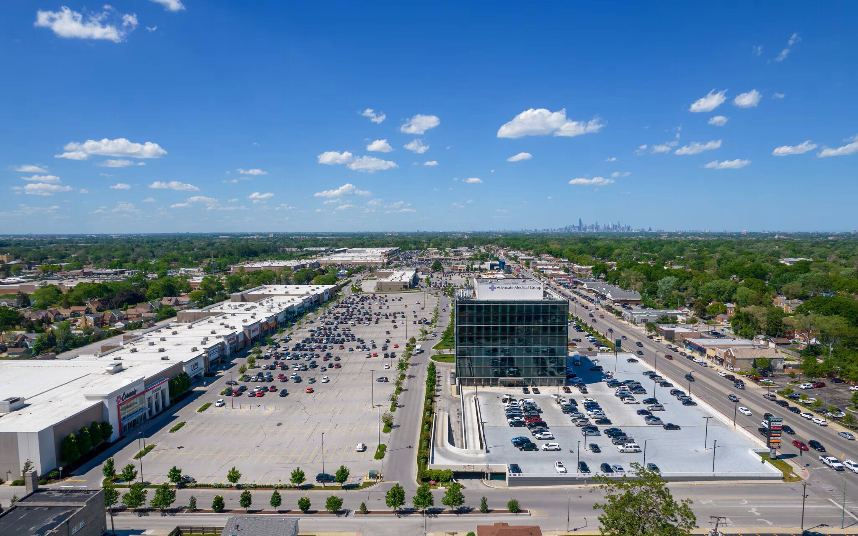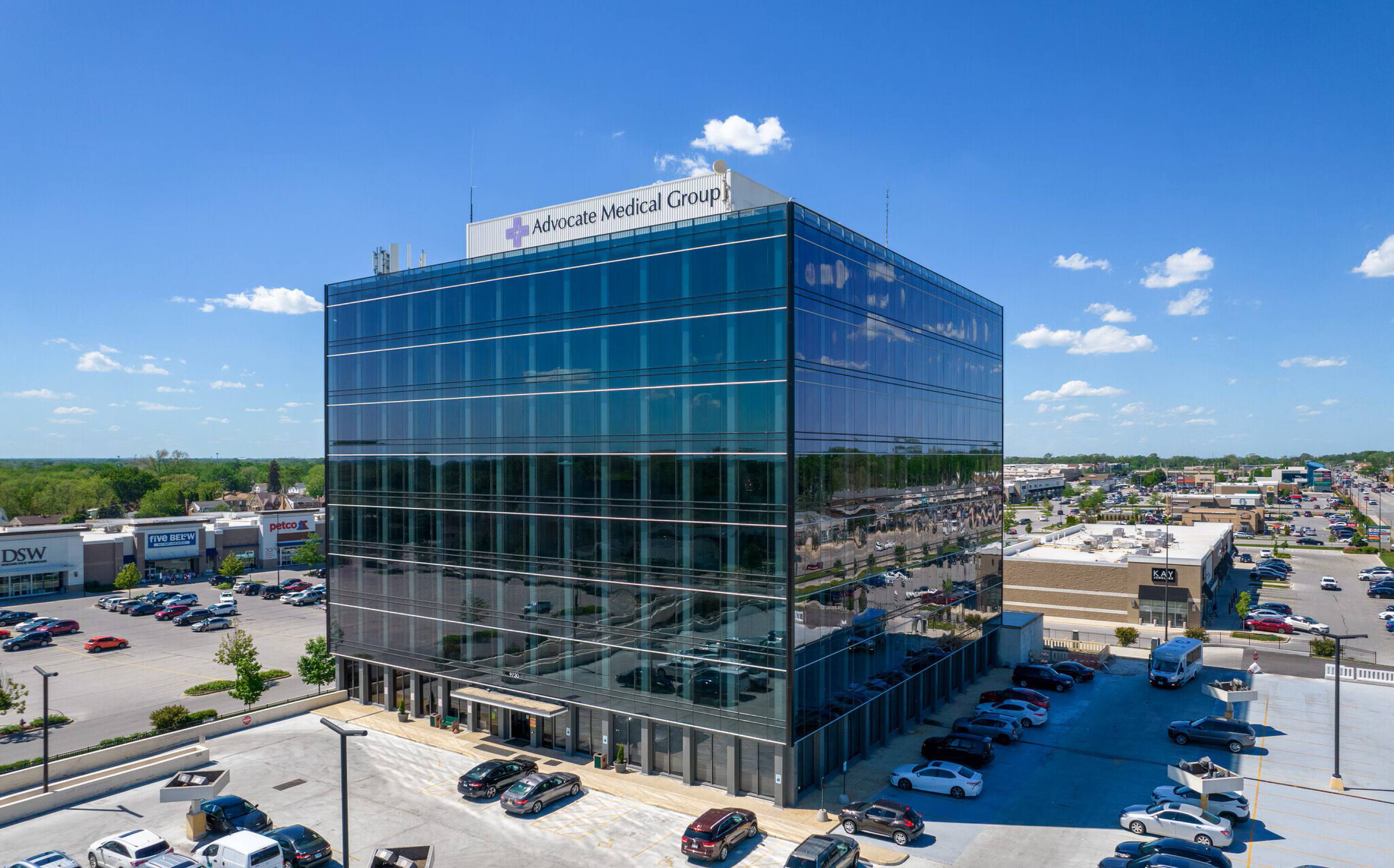 Evergreen Tower, located at 9730 S Western Avenue in Evergreen Park, is a 10-story Class-A medical office building available for lease. The property is undergoing a $9 million renovation, including a new building facade, upgraded elevators, renovated garage, and refurbished common areas. The building is located at the redeveloped Evergreen Plaza fashion mall, which includes stores such as Whole Foods, Market BY Macy's, DSW, Five Below, Petco, TJ Maxx, Ulta Beauty, and Dick's Sporting Goods. The location benefits from high daily traffic and is served by the Pace Bus route #349. The Metra Beverly Hills - 99th Street station, less than a mile east, provides commuter access from downtown Chicago southwest to Joliet, with stops in the south suburbs at New Lenox, Mokena, Tinley Park, Oak Forest, Midlothian, Robbins, and Blue Island. The property is located seven miles from Chicago's Midway Airport. Nearby food options include Starbucks, Raising Cane's, The Saucy Crab, Kikka Sushi, Potbelly, MOD Pizza, Whole Foods, Chili's, Giordano's, Hearty Cafe Pancake House, Dunkin Donuts, Red Snapper, and Subway.