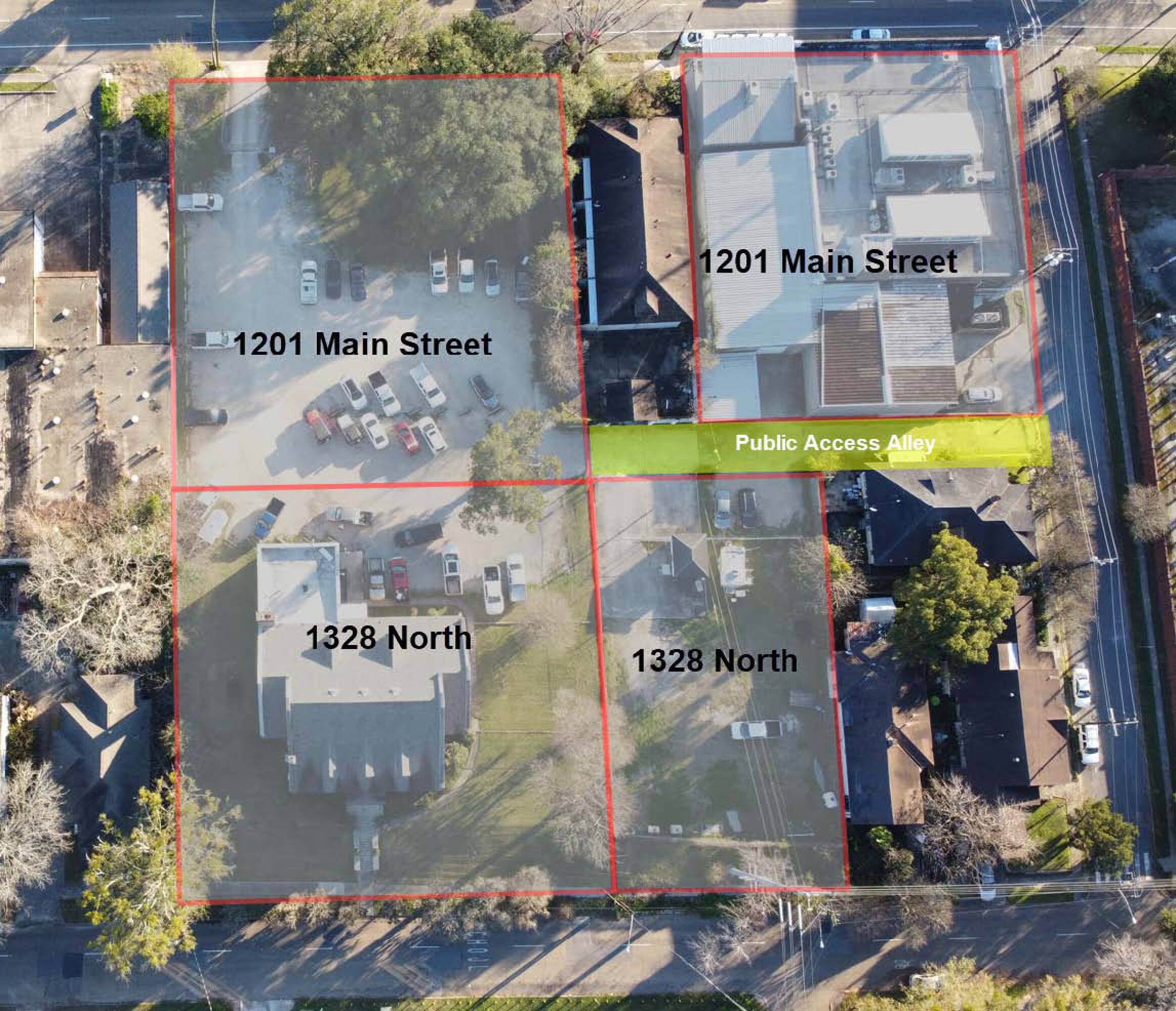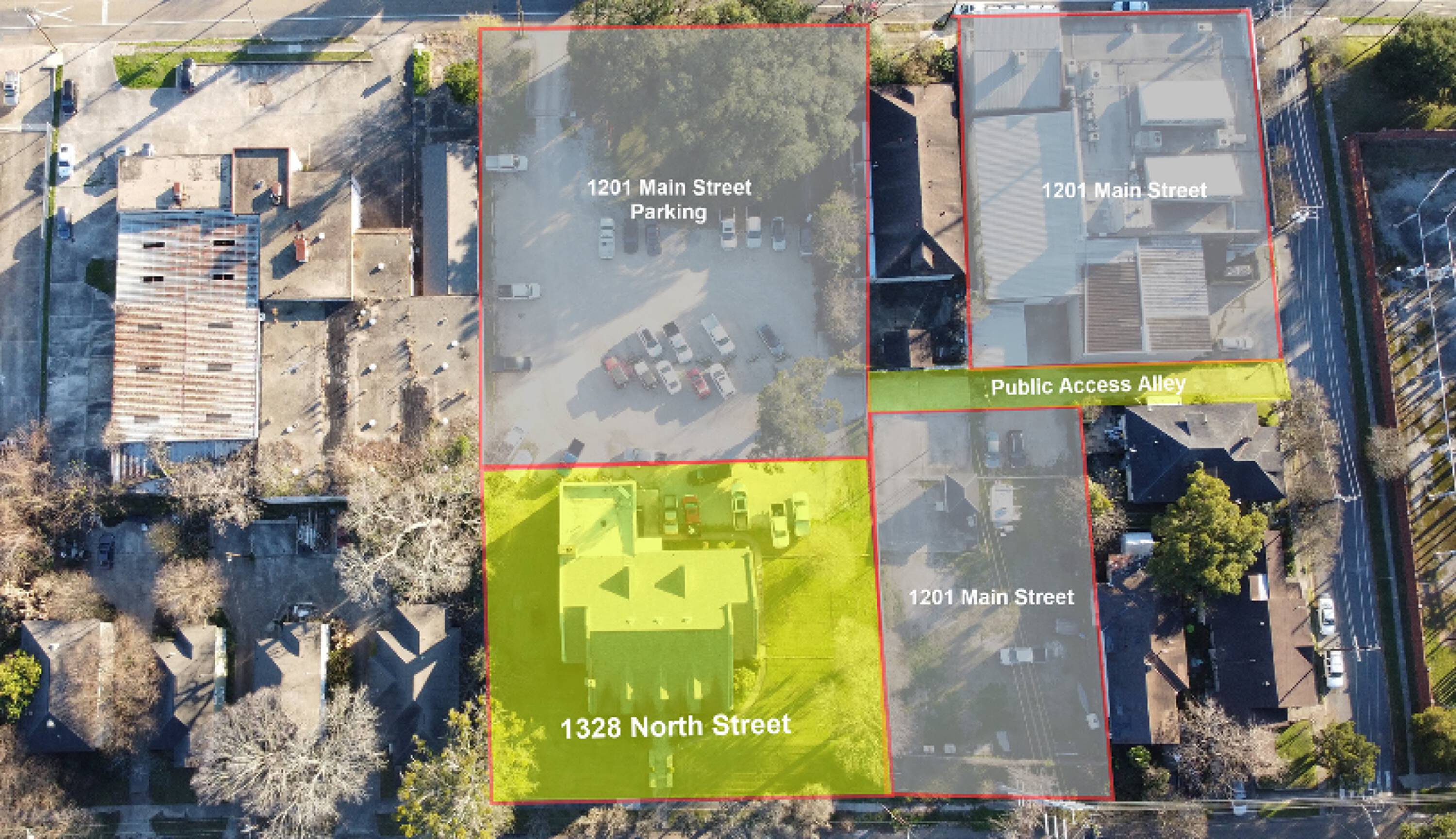 A two-story office building with access from both North Street and Main Street is available for purchase. The property could serve as an office building or a redevelopment opportunity, benefiting from multiple tax credits. It is situated on a large lot that will undergo resubdivision and assimilation. Ample parking space is available. The property is located in an opportunity zone. Additionally, it can be acquired together with the adjacent property at 1201 Main Street. The building has a size of 7500 square feet.