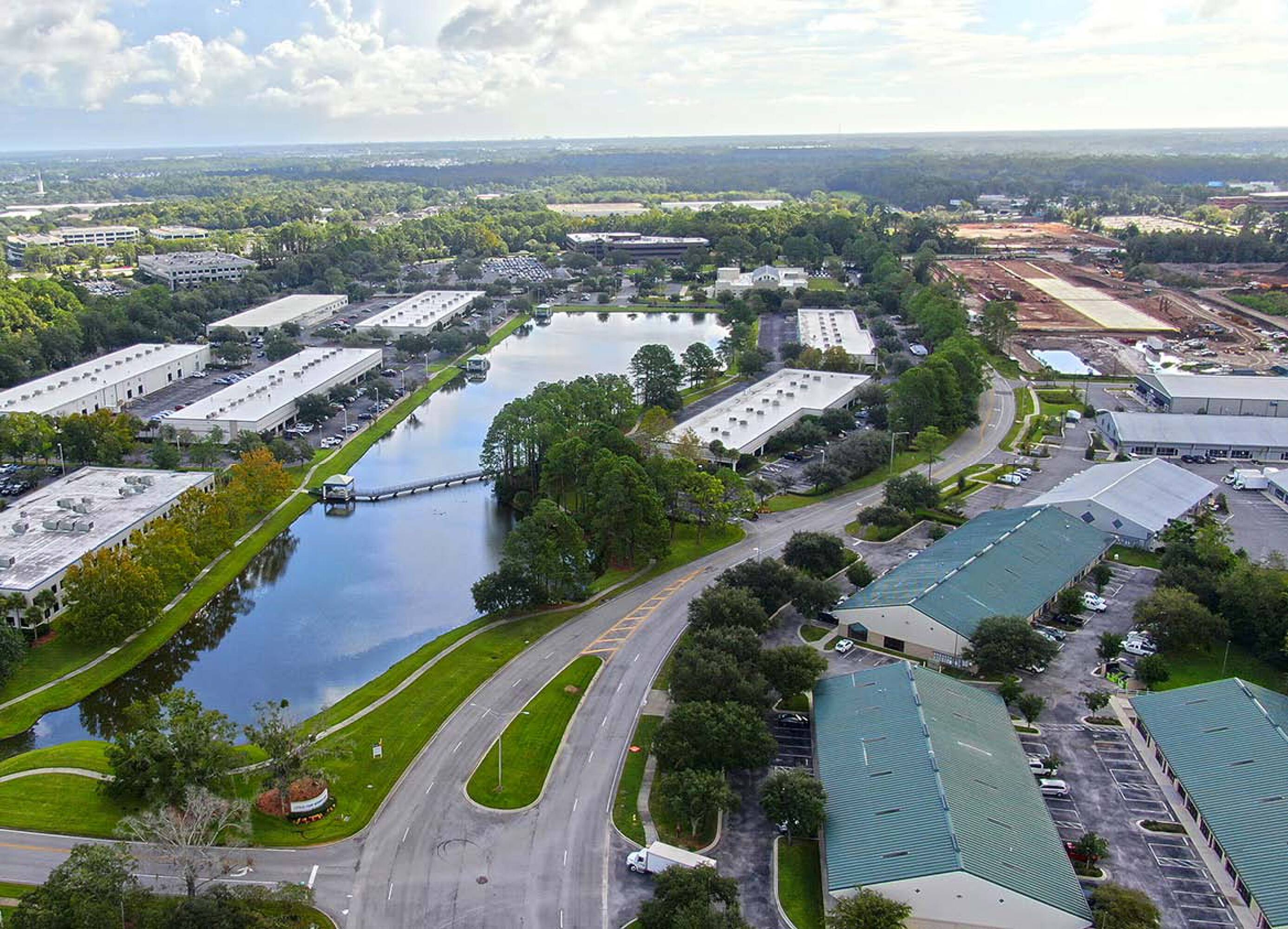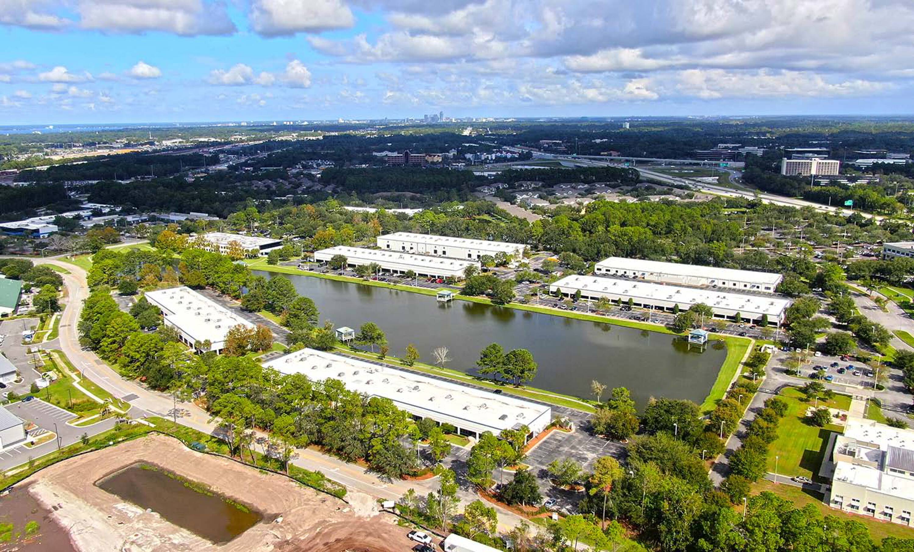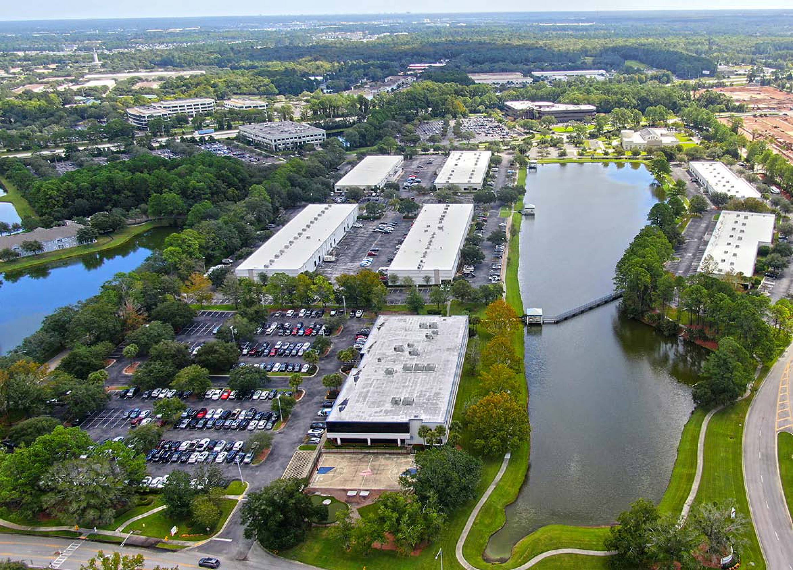 Modern office and flex buildings in a master-planned park.