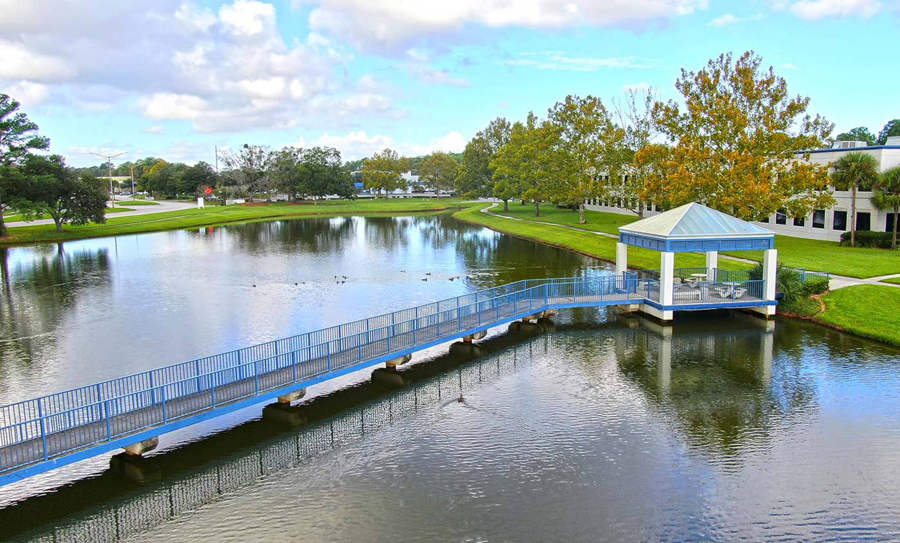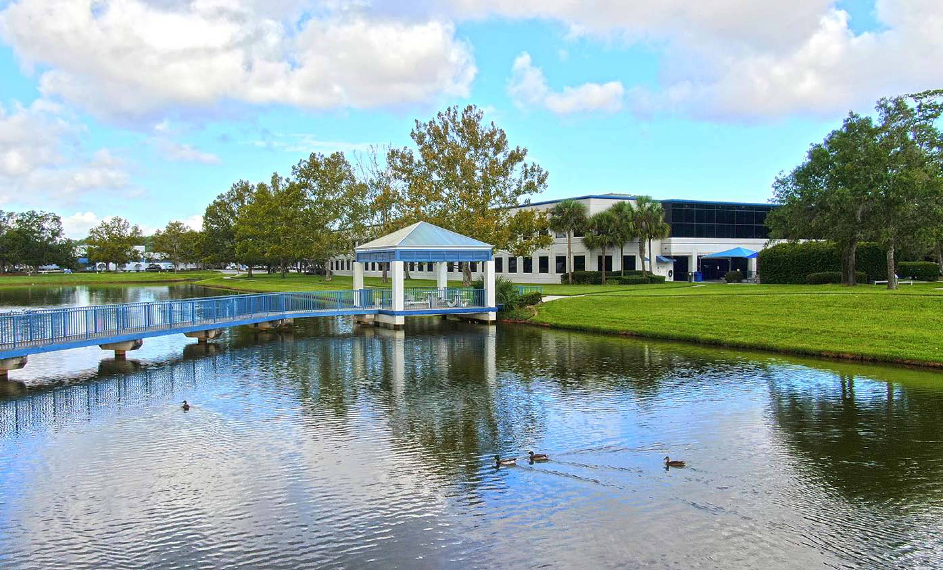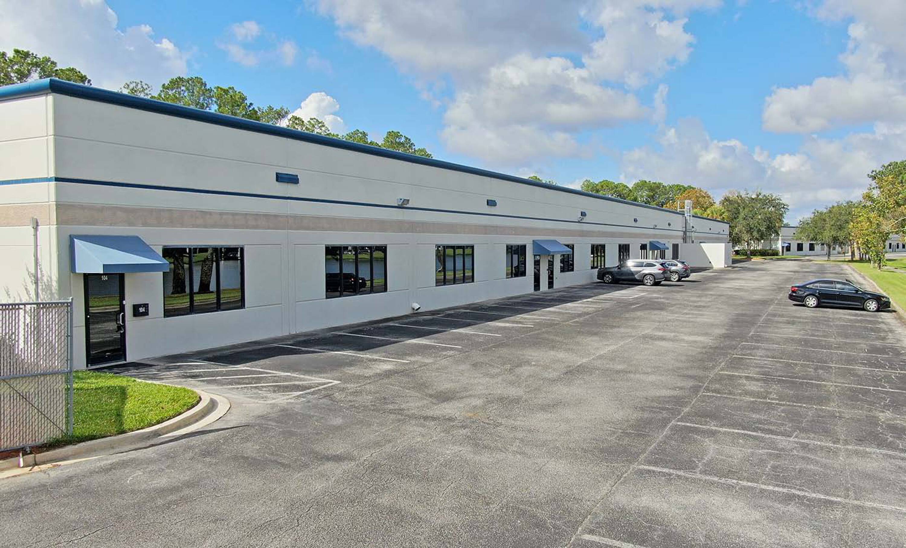 Modern office and flex buildings in a master-planned park.
