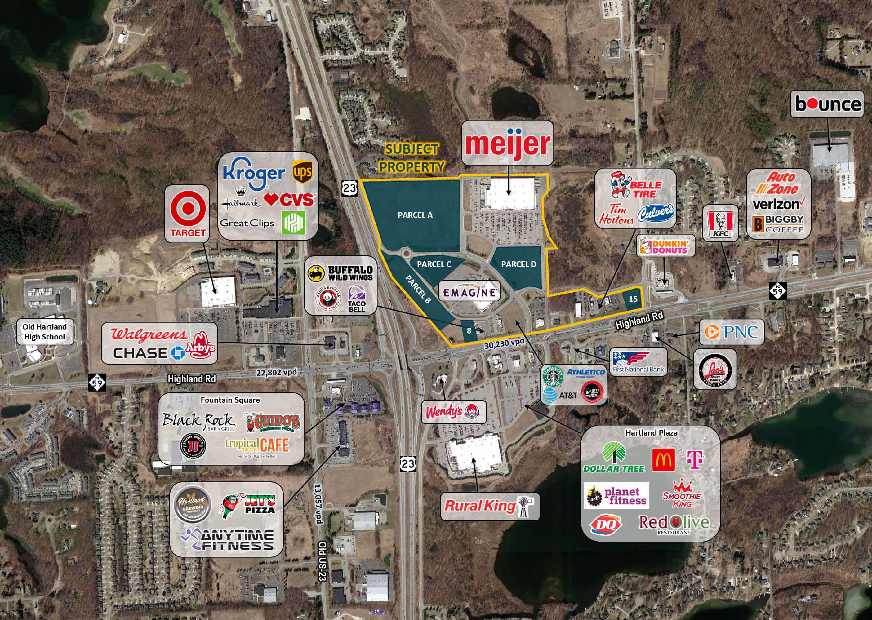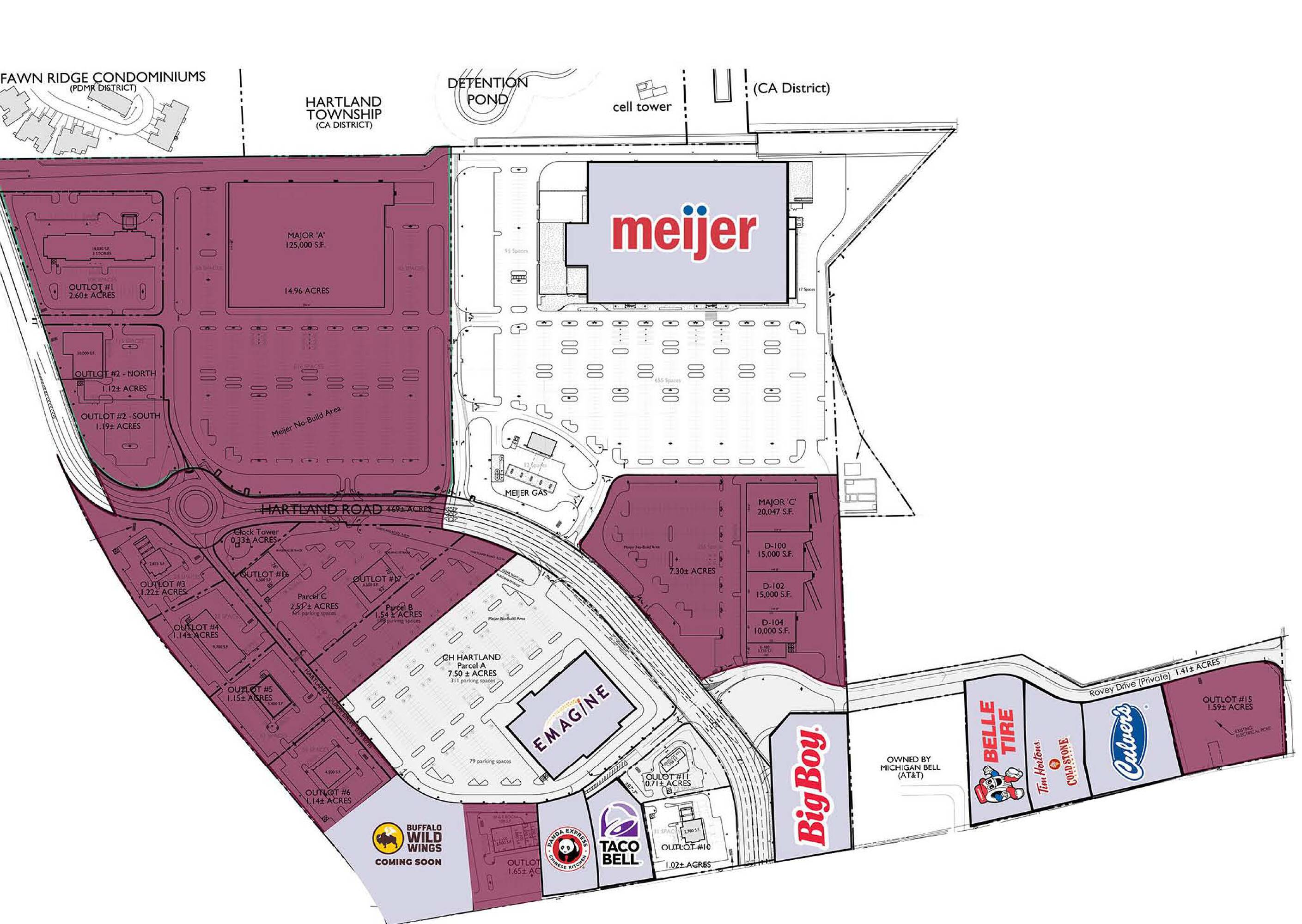 Vacant land parcels in Hartland Towne Square Shopping Center.