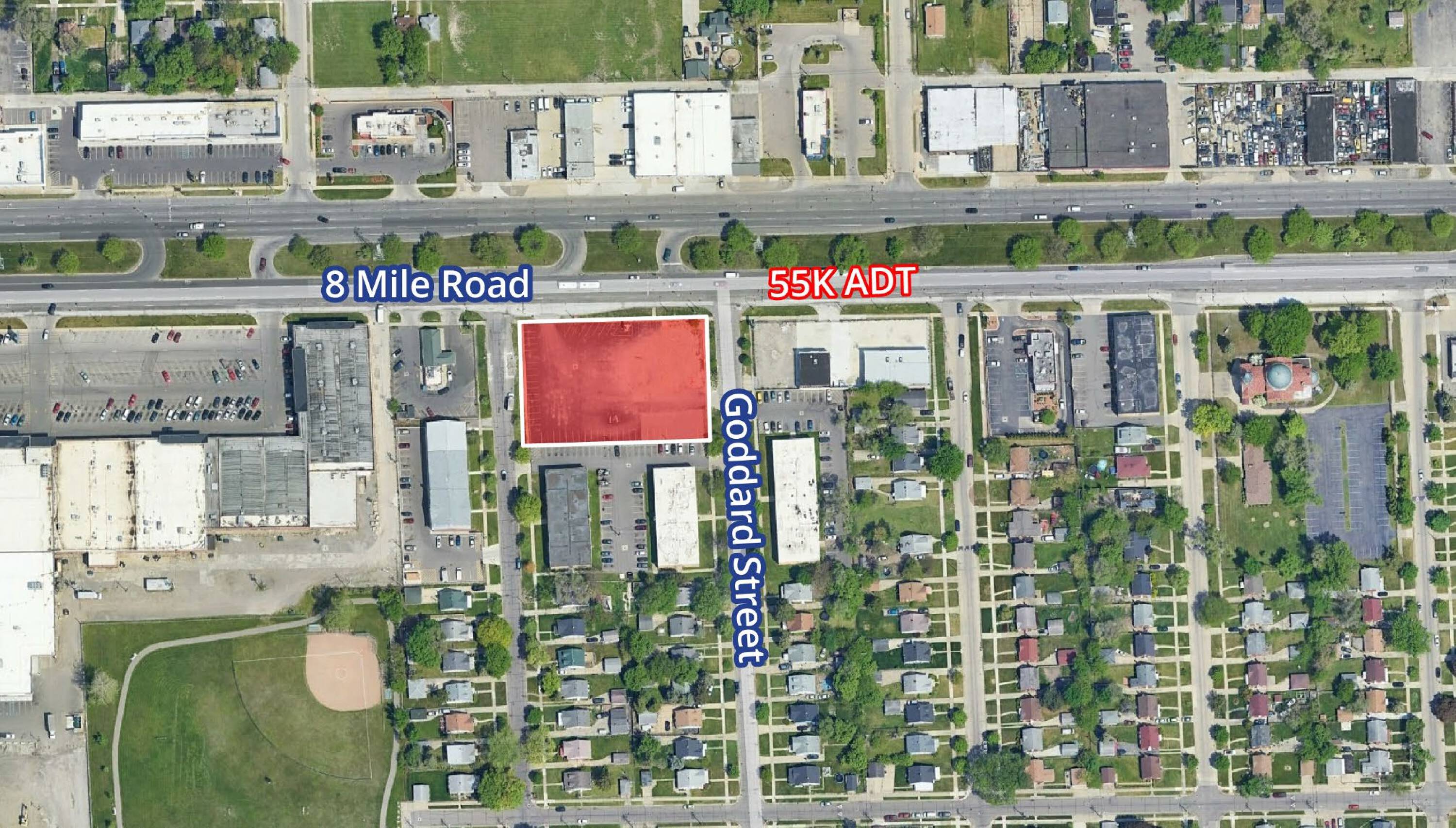 This land is available for sale. It is located at 2300 8 Mile Rd, Detroit, MI 48234.