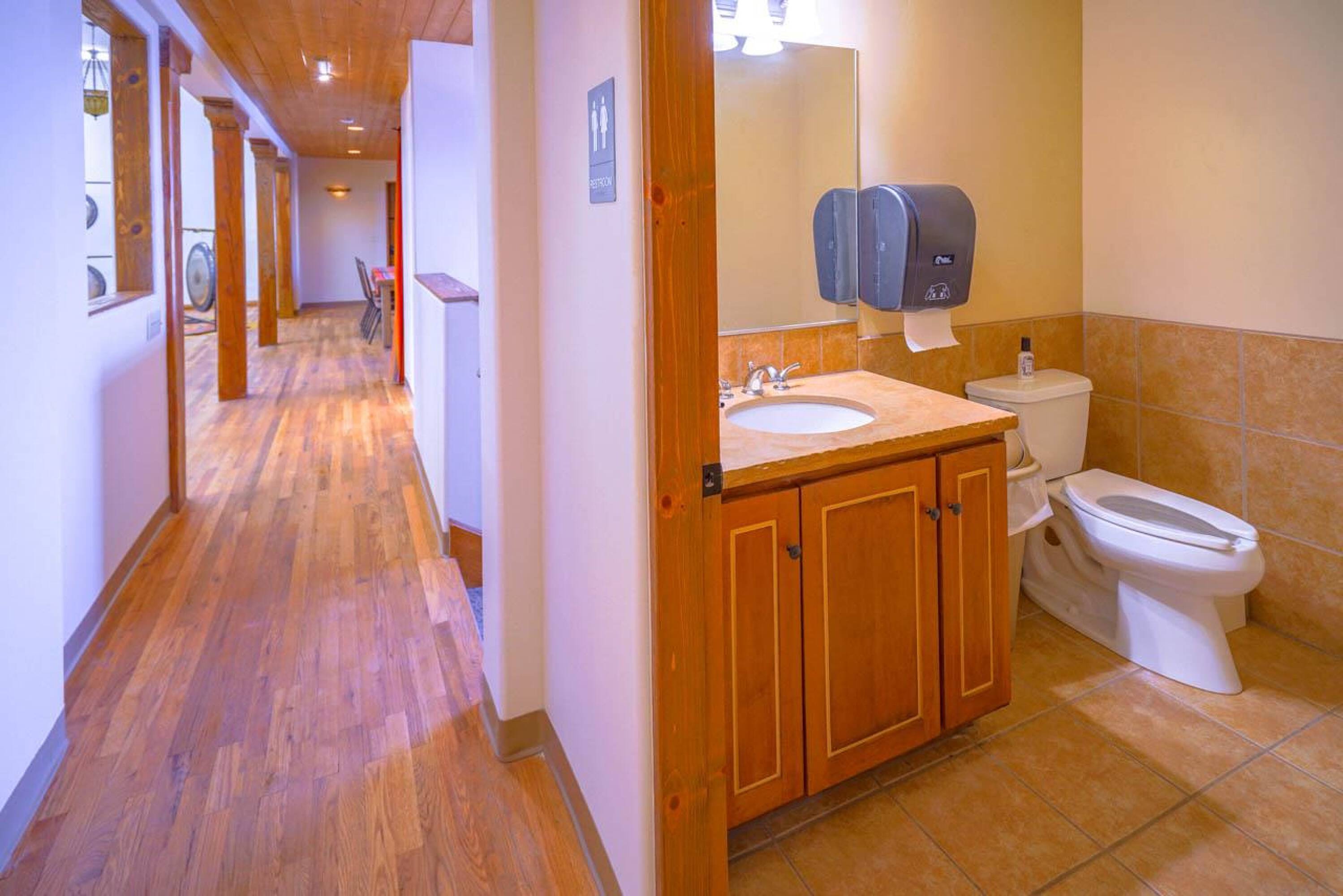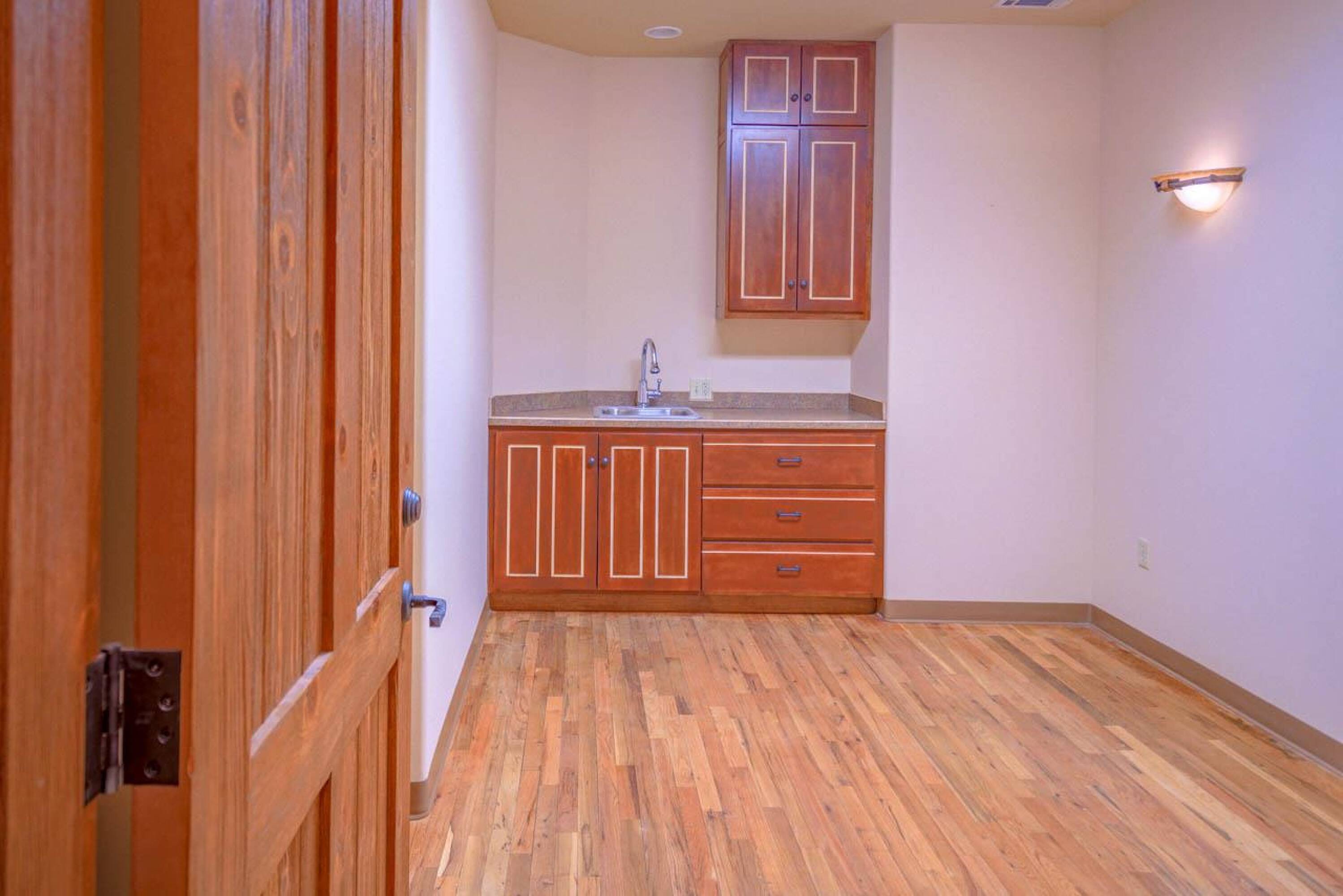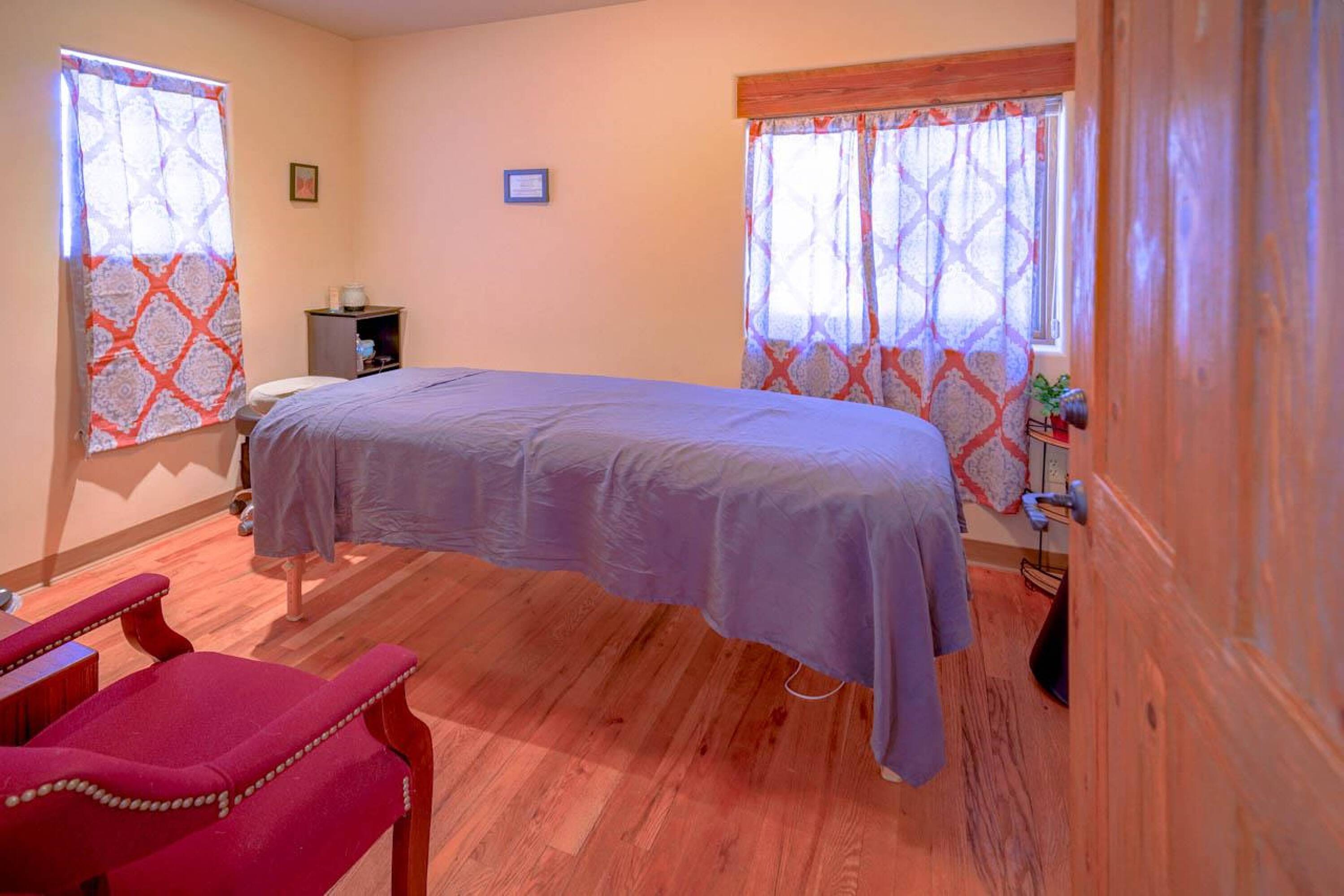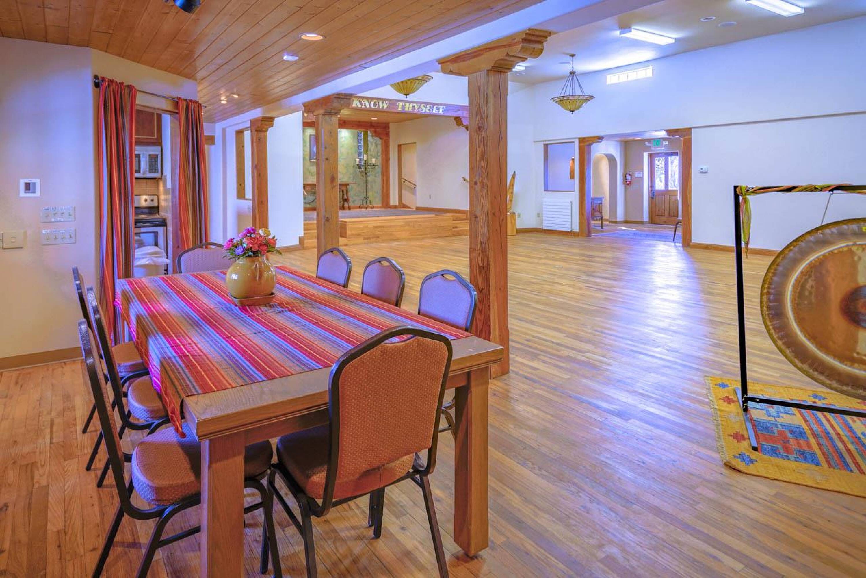 Located approximately 0.9 miles from The Taos Plaza, this 5,795 square foot multi-use commercial/residential building features Pueblo-style architecture and is in exceptional condition. The building underwent a complete renovation, down to the cinder-block exterior walls, and was rebuilt from top to bottom. Currently, the building houses a clothing designer, two massage therapists, and two spa treatment specialists. Previously, it served as a ministry's gathering place with offices, a reception area, and a stage, as well as offices for a local government agency. The building is divided into three separate sections. The first section includes five office suites with a shared reception area, two bathrooms (one handicapped accessible), and a handicapped accessible entrance. The center section could function as a New York-style warehouse loft for live-work, a meeting/gathering place, a wedding and events venue with a stage, a dance hall, a yoga studio, a wellness center, or even a theater room. This section also features a full kitchen, two bathrooms (one ADA-compliant), a receptionist area, a waiting room, a separate office, a large portal, and a handicapped accessible entrance. The third section includes three office suites, a large storage area, a refrigerator and sink area, a full bathroom with shower, and a waiting/reception area. The property includes a garden area and ample parking. Renovations included a new Brai roof, complete stucco work, 2x6 interior constructed walls on the cinderblock with high-grade insulation, new plumbing and electrical work, new insulated exterior metal clad windows, wood beams above the windows, interior and exterior custom doors throughout, decorative sconces in all of the rooms, Myson radiant heat with décor radiators, a new boiler in the basement, a Rinnai LS Series Tankless water heater, an Uponor DMand hot water delivery system, two Greenheck energy recovery ventilator systems, refinished oak floors, new carpet and tile floors, a security system with added security lights on the exterior, a lighted free standing marque for advertising at the front of the building, new gravel for the parking areas, and landscaping irrigated by the building's private well. City water is used for the interior of the building, and each room has its own heat control.