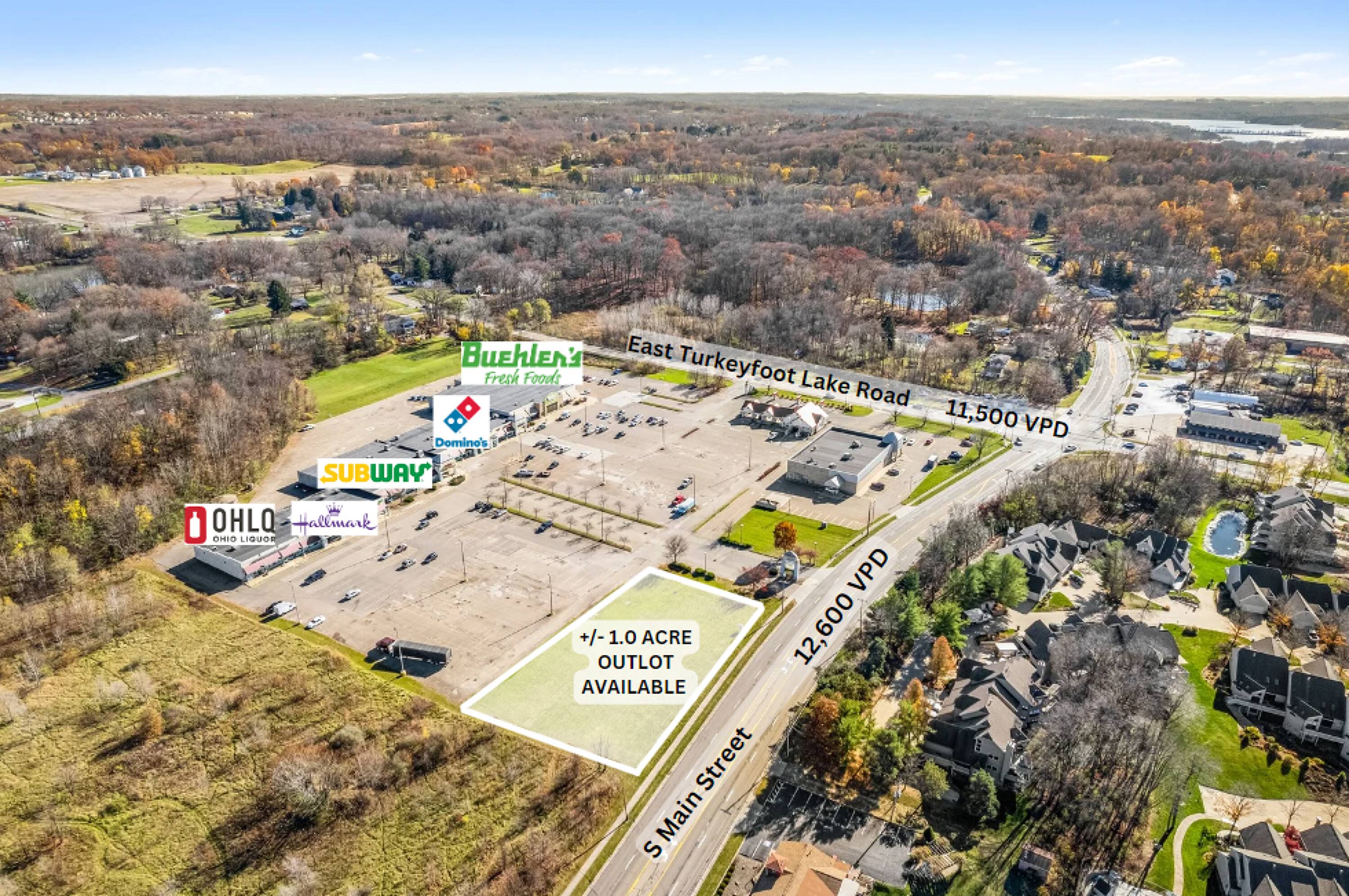 A commercial outlot is available for ground lease or sale at South Main Centre, situated on S. Main Street and SR-619, in proximity to the scenic Portage Lakes. The location is identified as 4045-4049 S Main St, Akron, OH 44319.