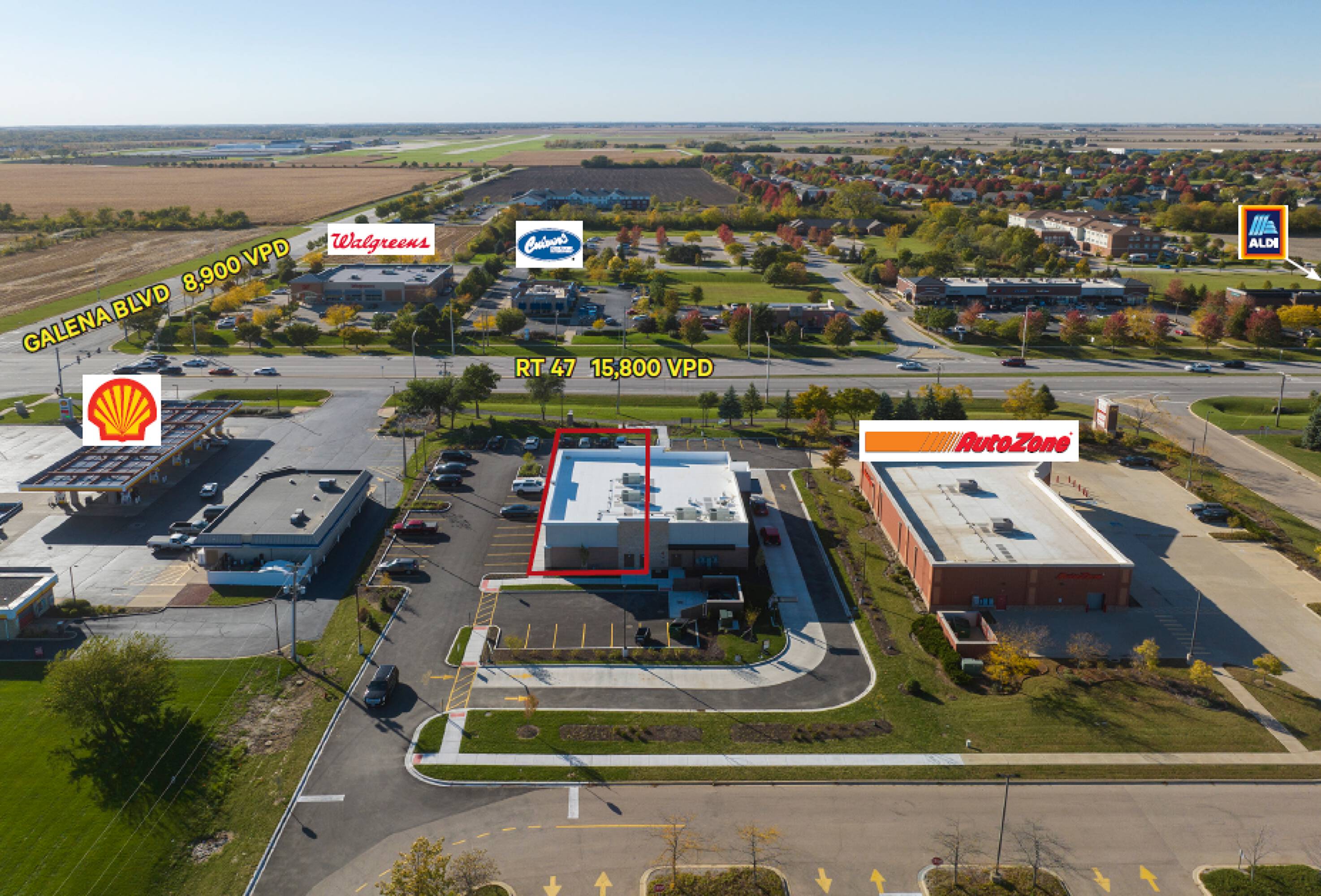 Retail space available in Sugar Grove, near Waubonsee Community College.