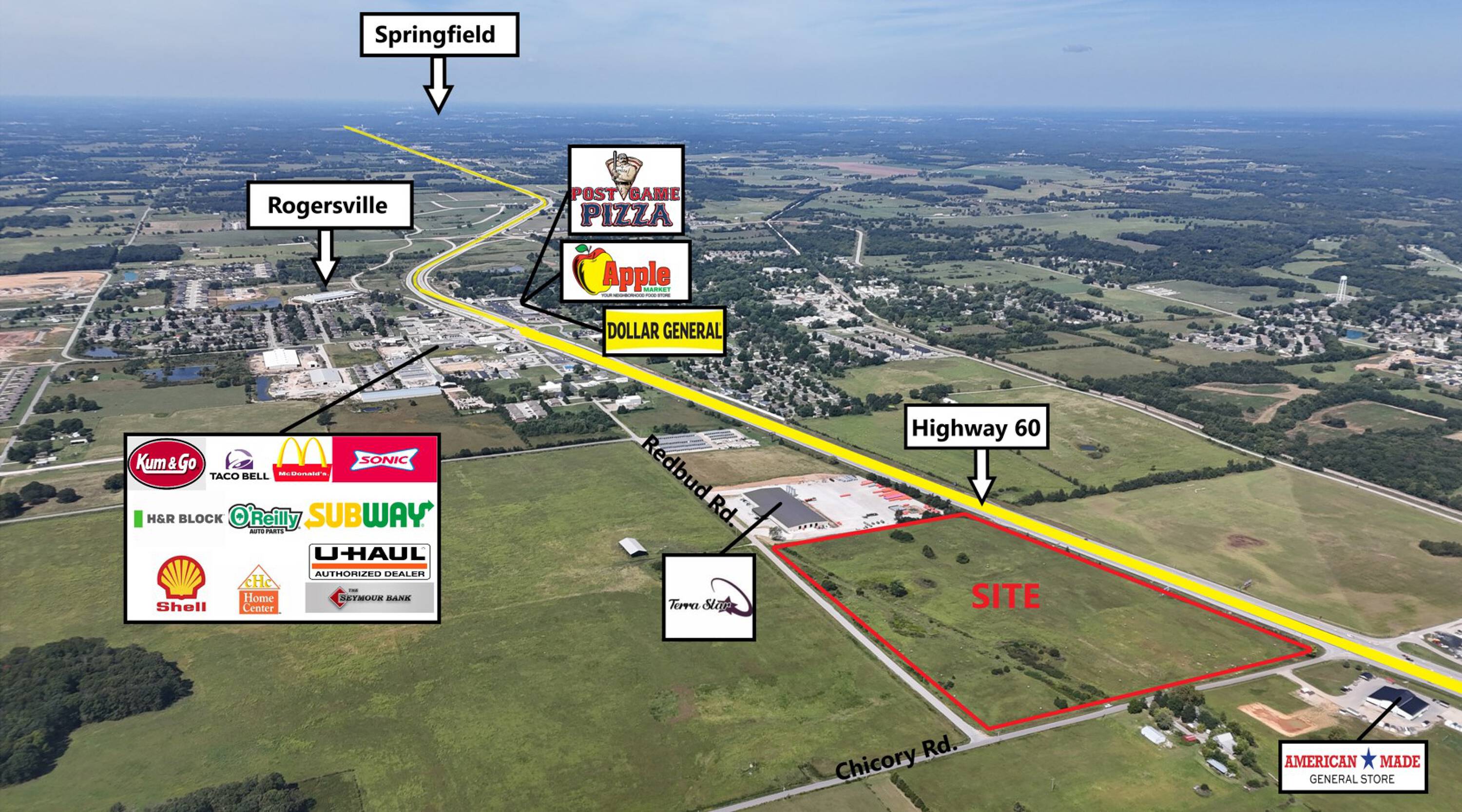 29.92 acre commercial development site in Rogersville, Missouri.