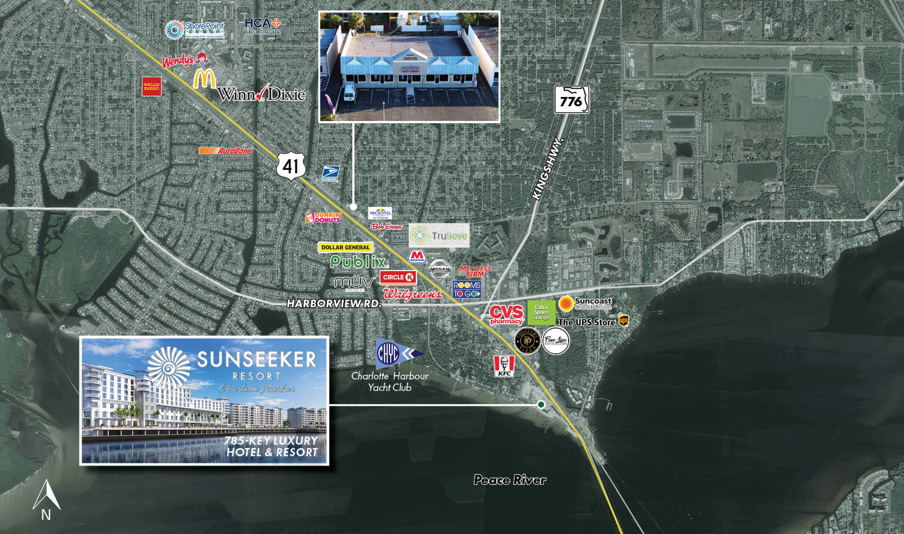 Multi-tenant building with high visibility near Sunseeker Resort.