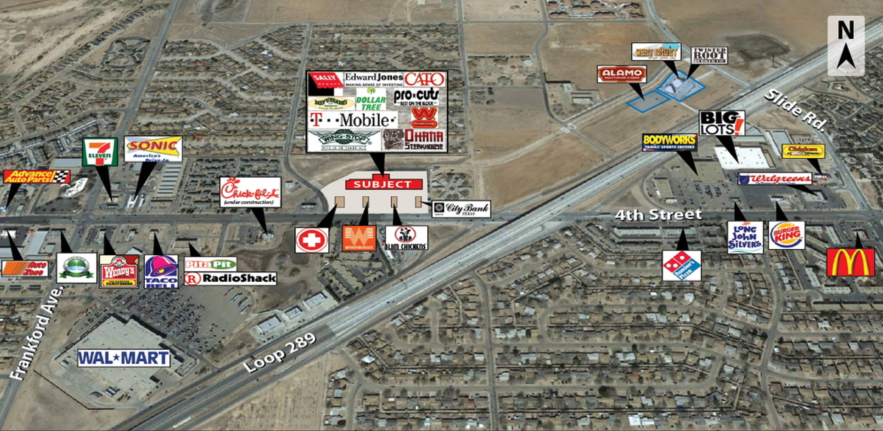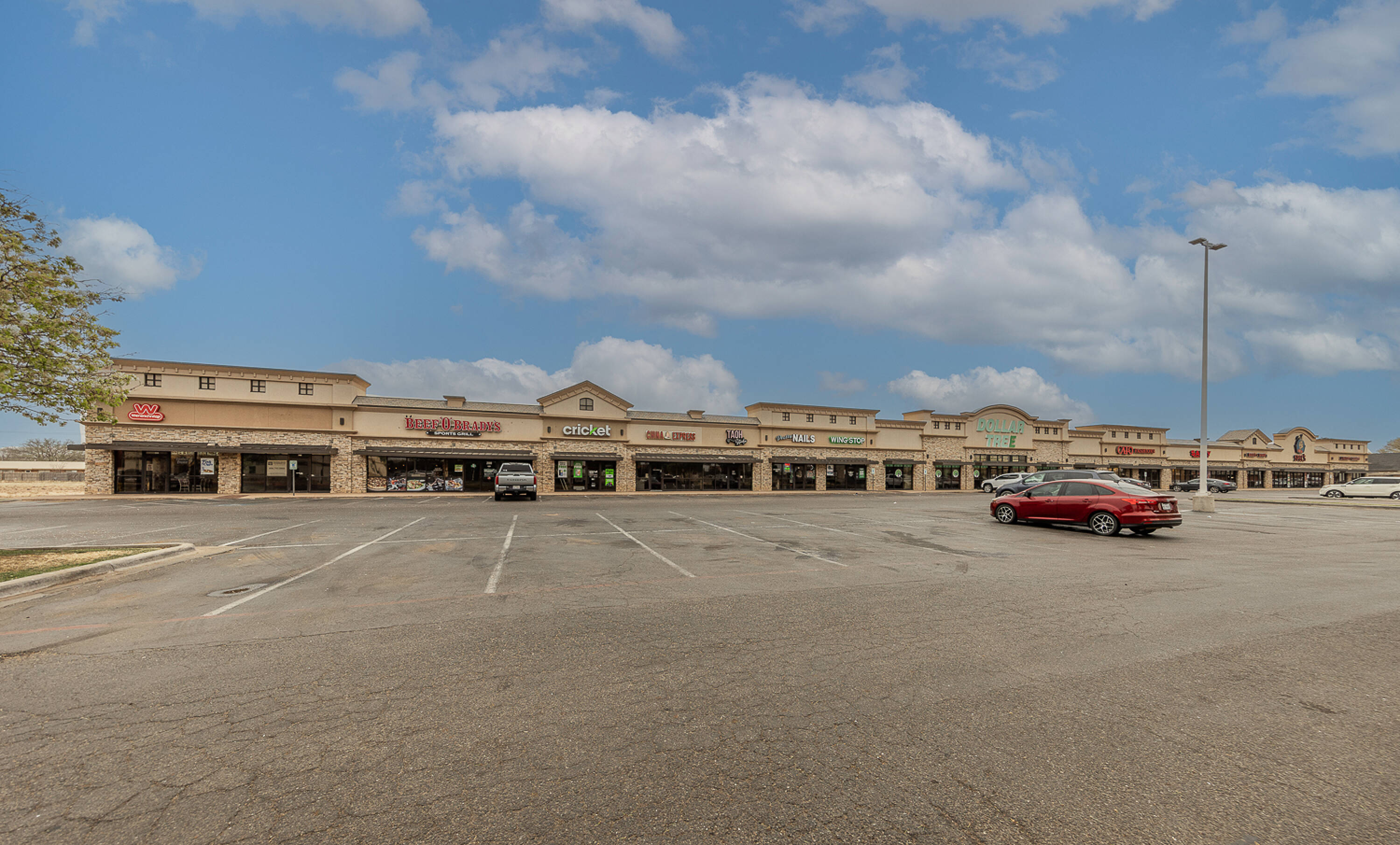 Retail spaces for lease in a high-traffic Lubbock location.