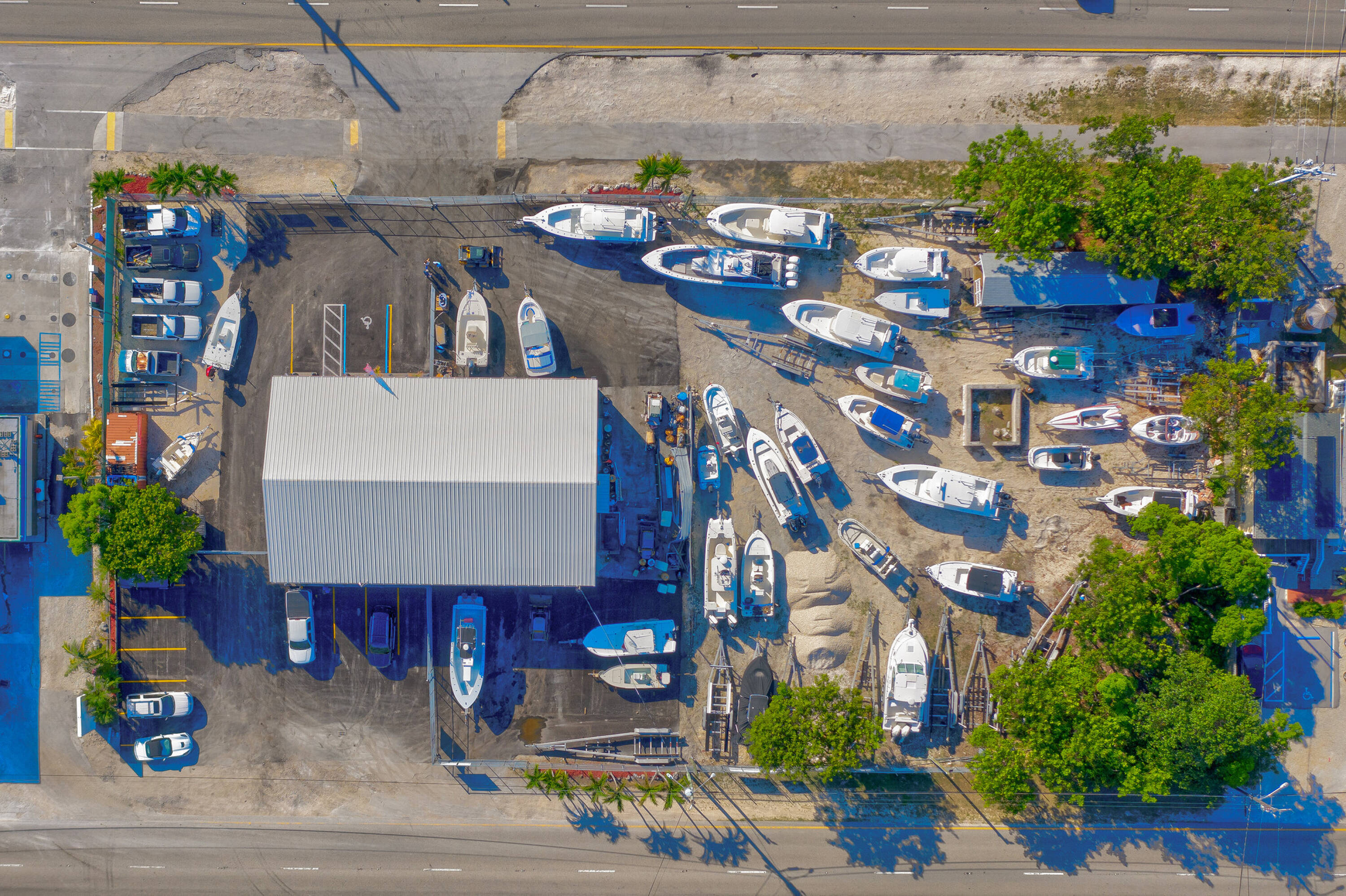 Located on Overseas Highway in Key Largo, this property presents a future development opportunity. The site includes a building of approximately 6,052 square feet on a lot of approximately 43,797 square feet, equivalent to 1.005 acres. Featuring 130 feet of frontage on both the northbound and southbound lanes, the property consists of two parcels of land and buildings. Currently operating as a boat repair shop and refurbished in 2022, the property will be delivered vacant at closing. The zoning allows for various commercial retail and office uses, offering versatility for future development plans. This property is suited for an owner/user or new business headquarters.