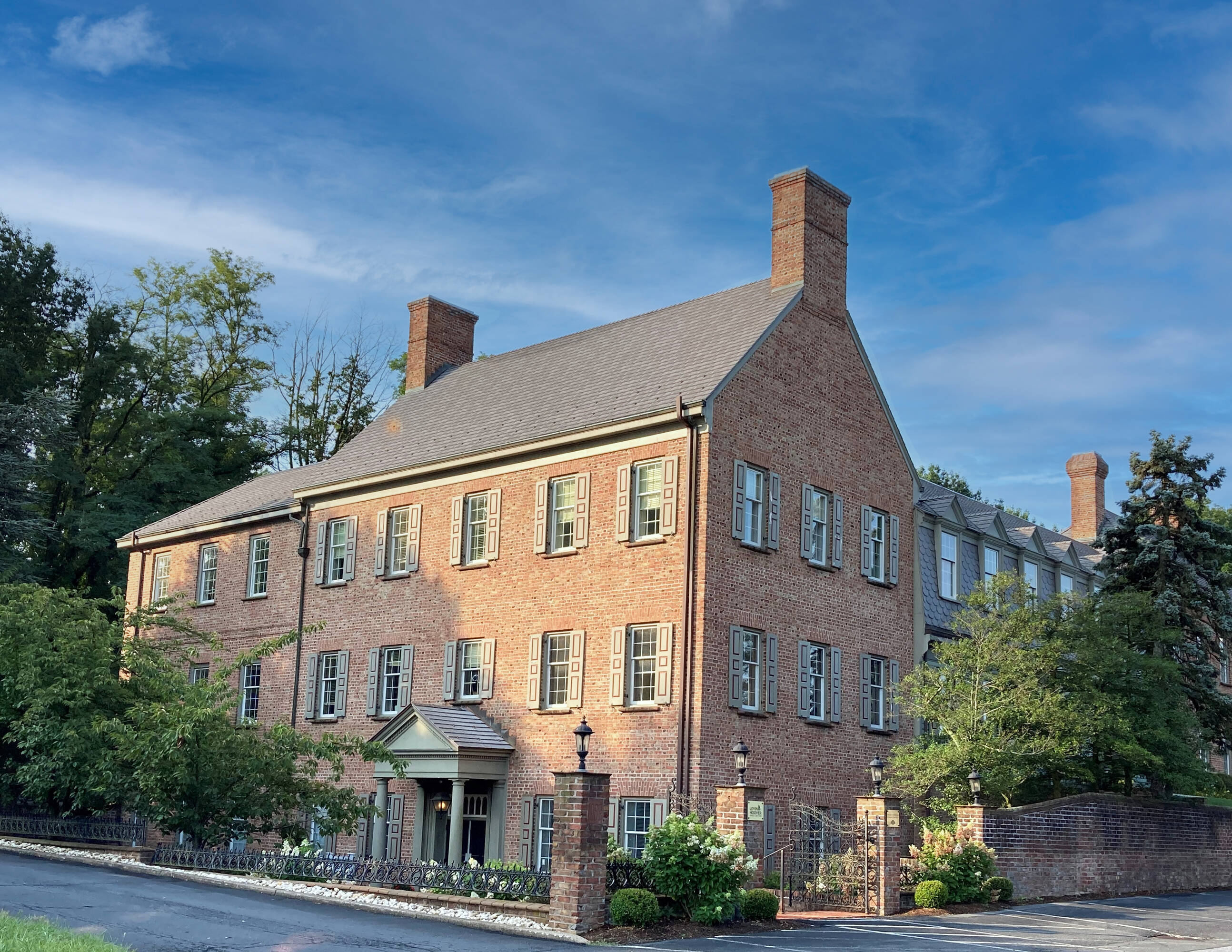 Colonial-style office building with suites available for rent.