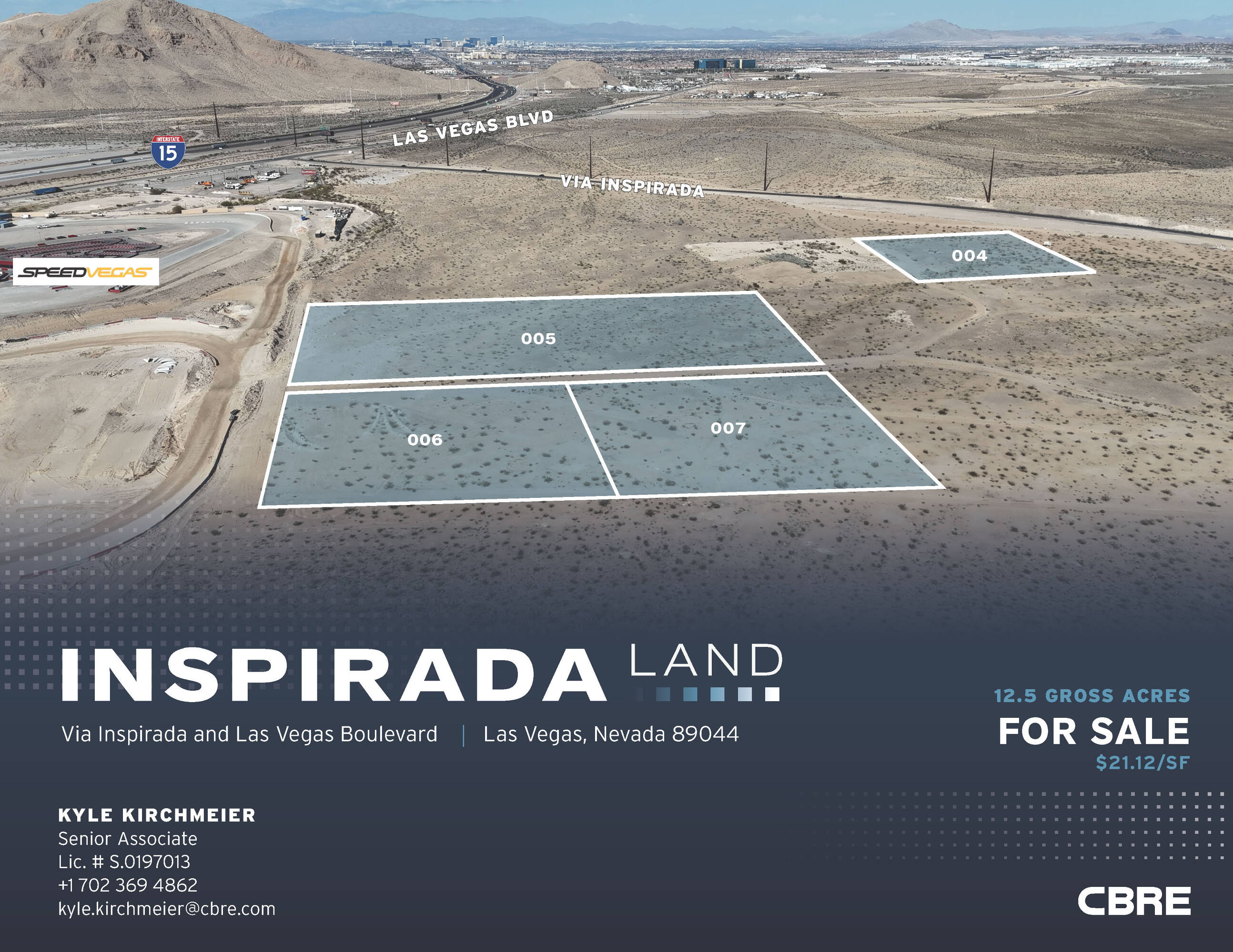 This property features: 12.5 acres of land with potential for industrial development.; Located just East of Las Vegas Boulevard on the Southern “gateway” to Las Vegas.; Adjacent to Speed Vegas Raceway track and The M Resort and Hotel.