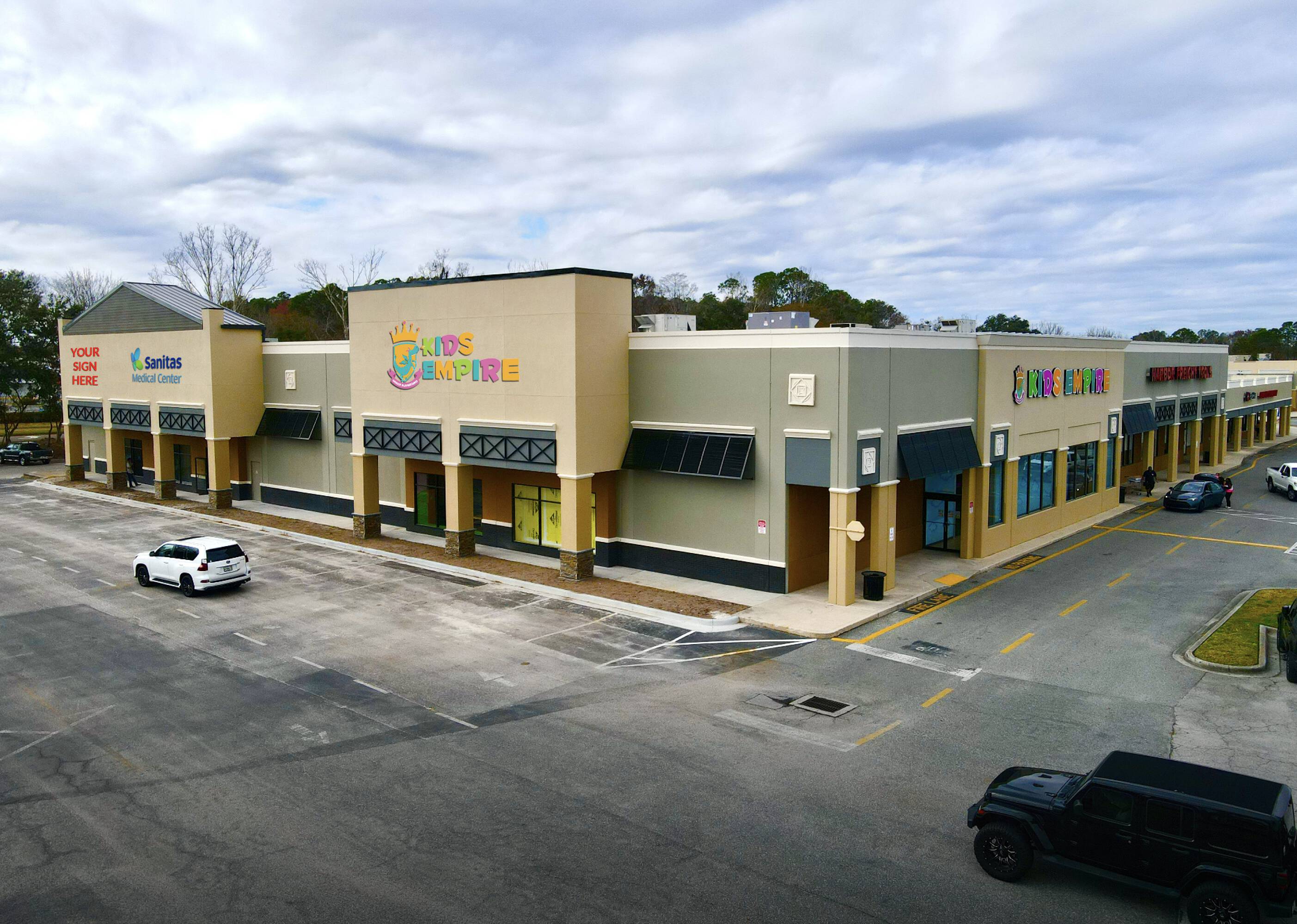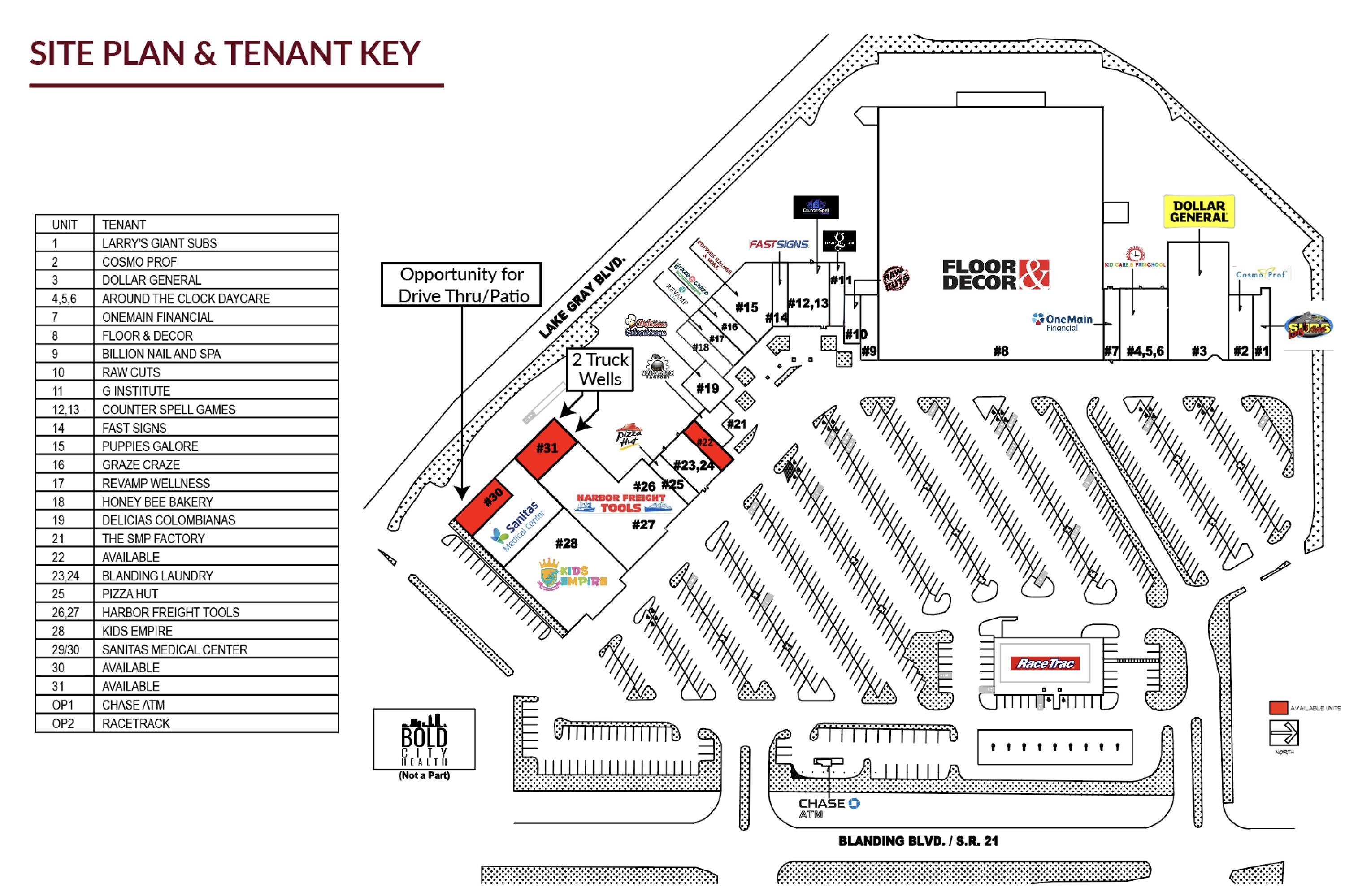 Retail, office, and warehouse spaces available for lease.