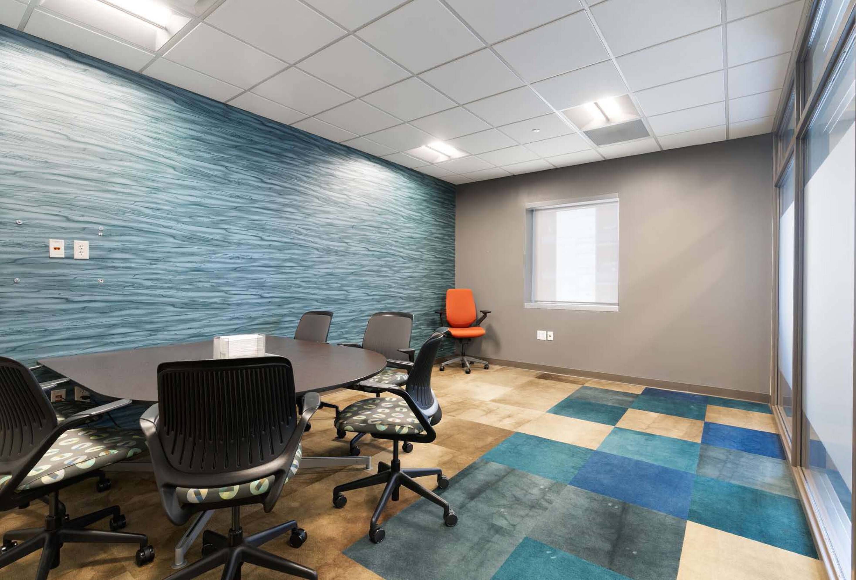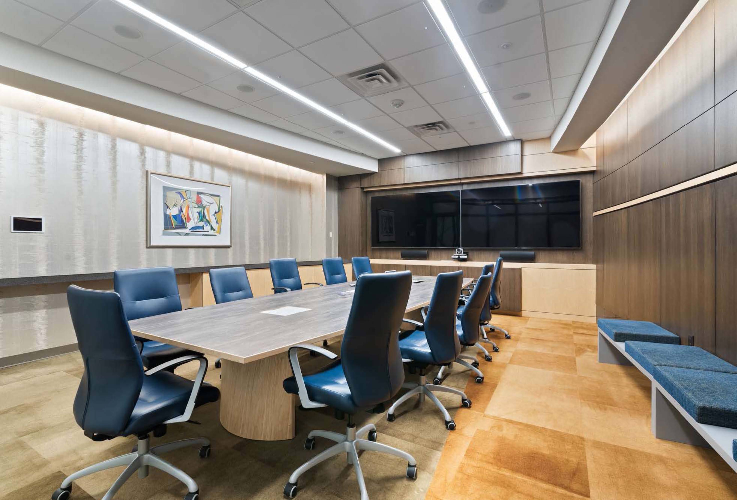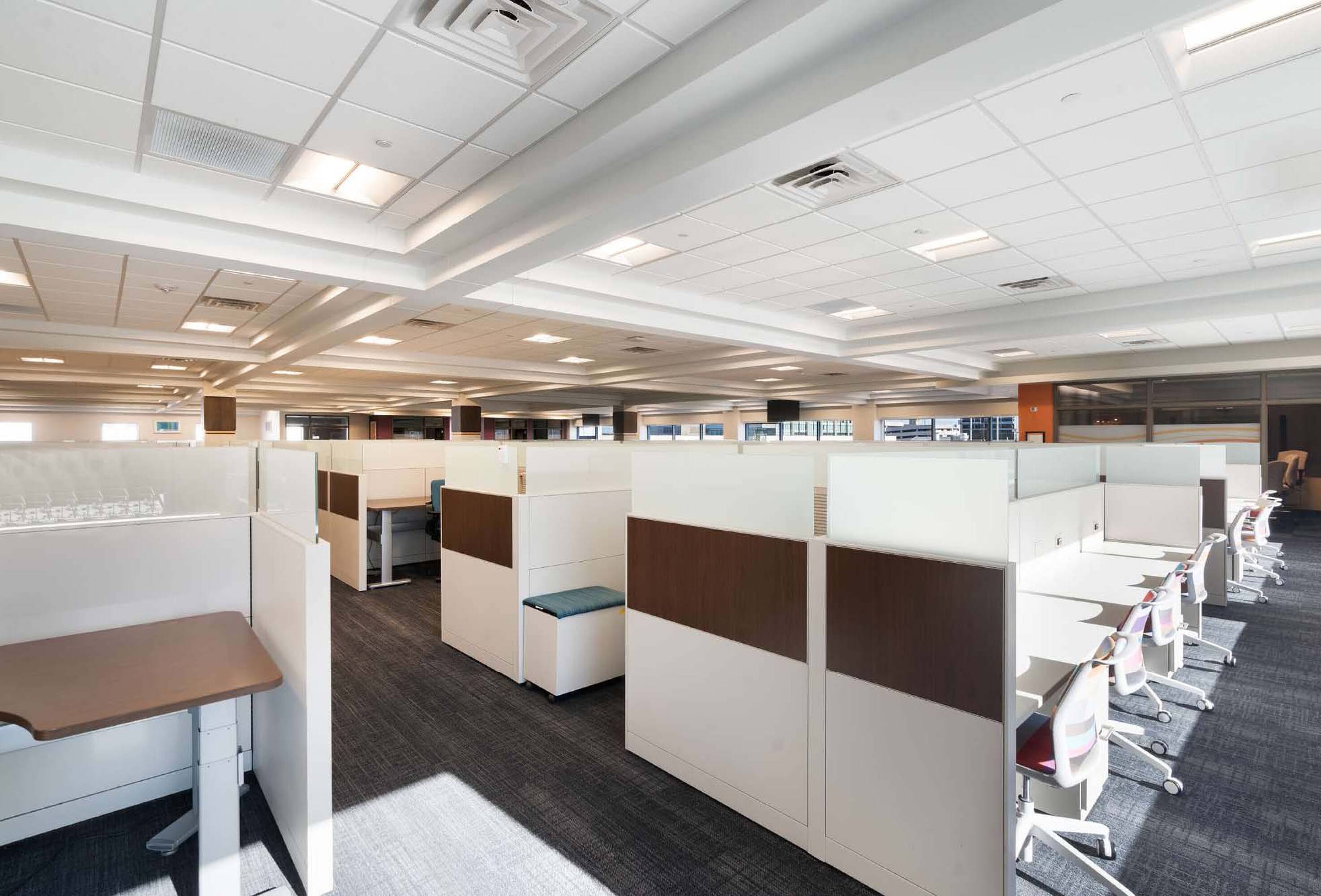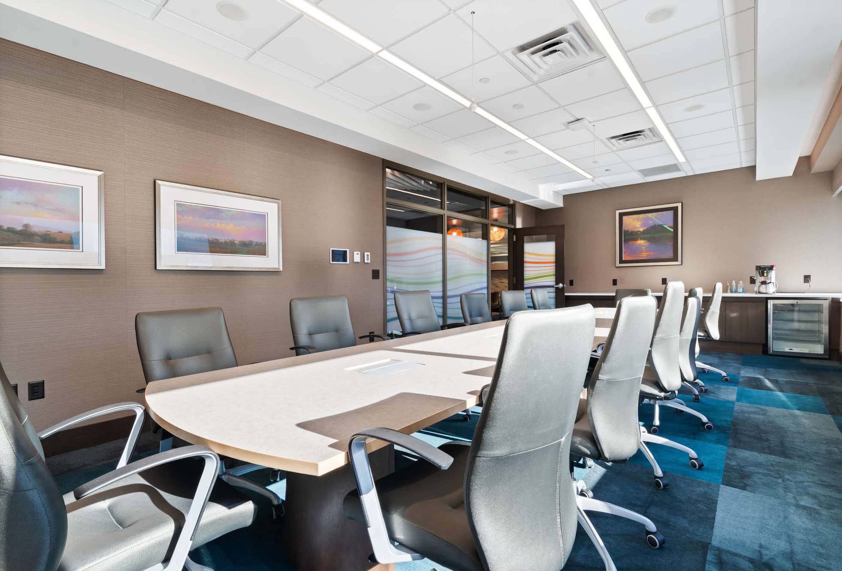Modern office space with sophisticated interior finish, move-in ready.