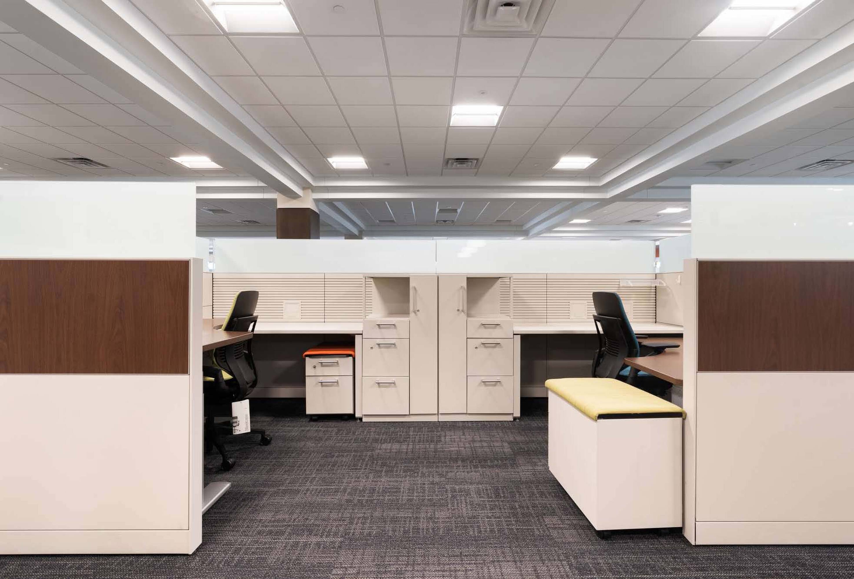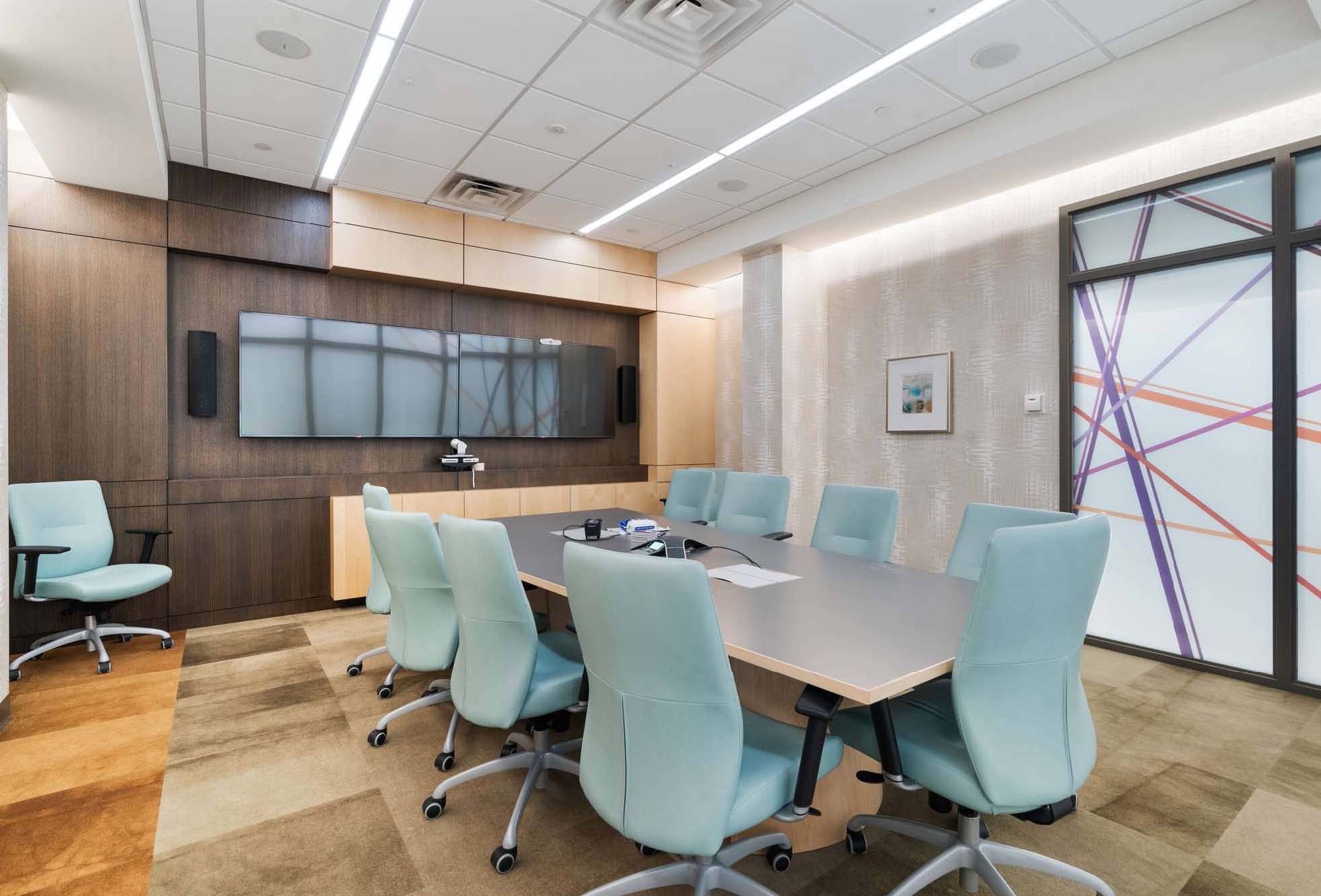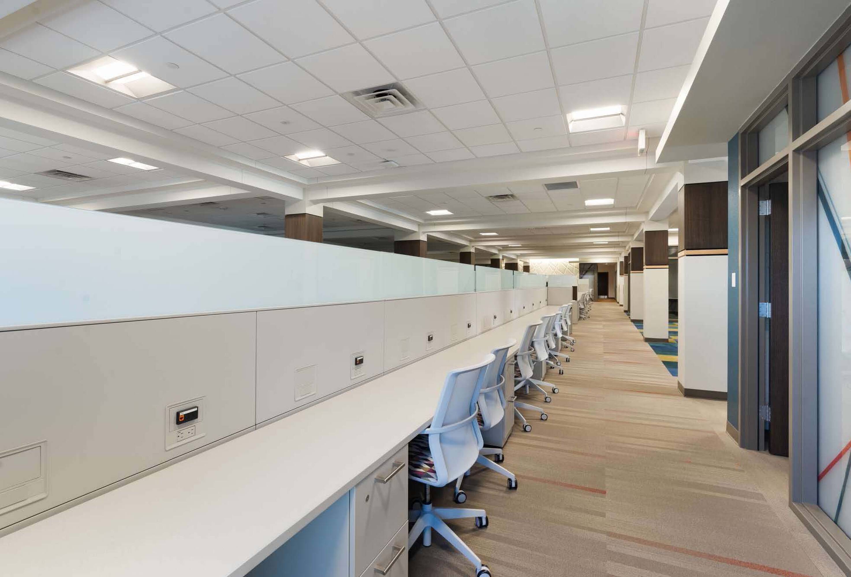 Modern office space with sophisticated interior finish, move-in ready.