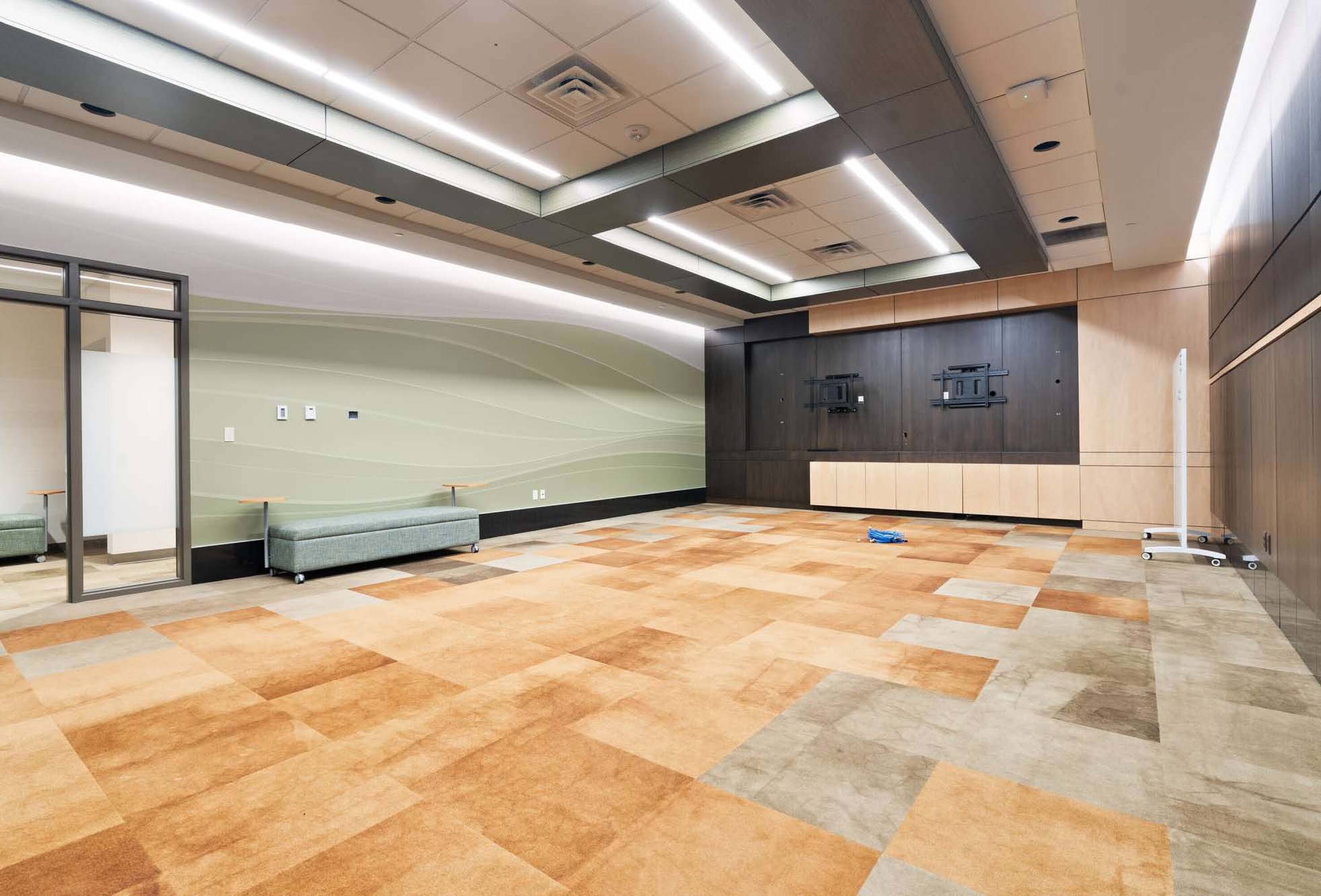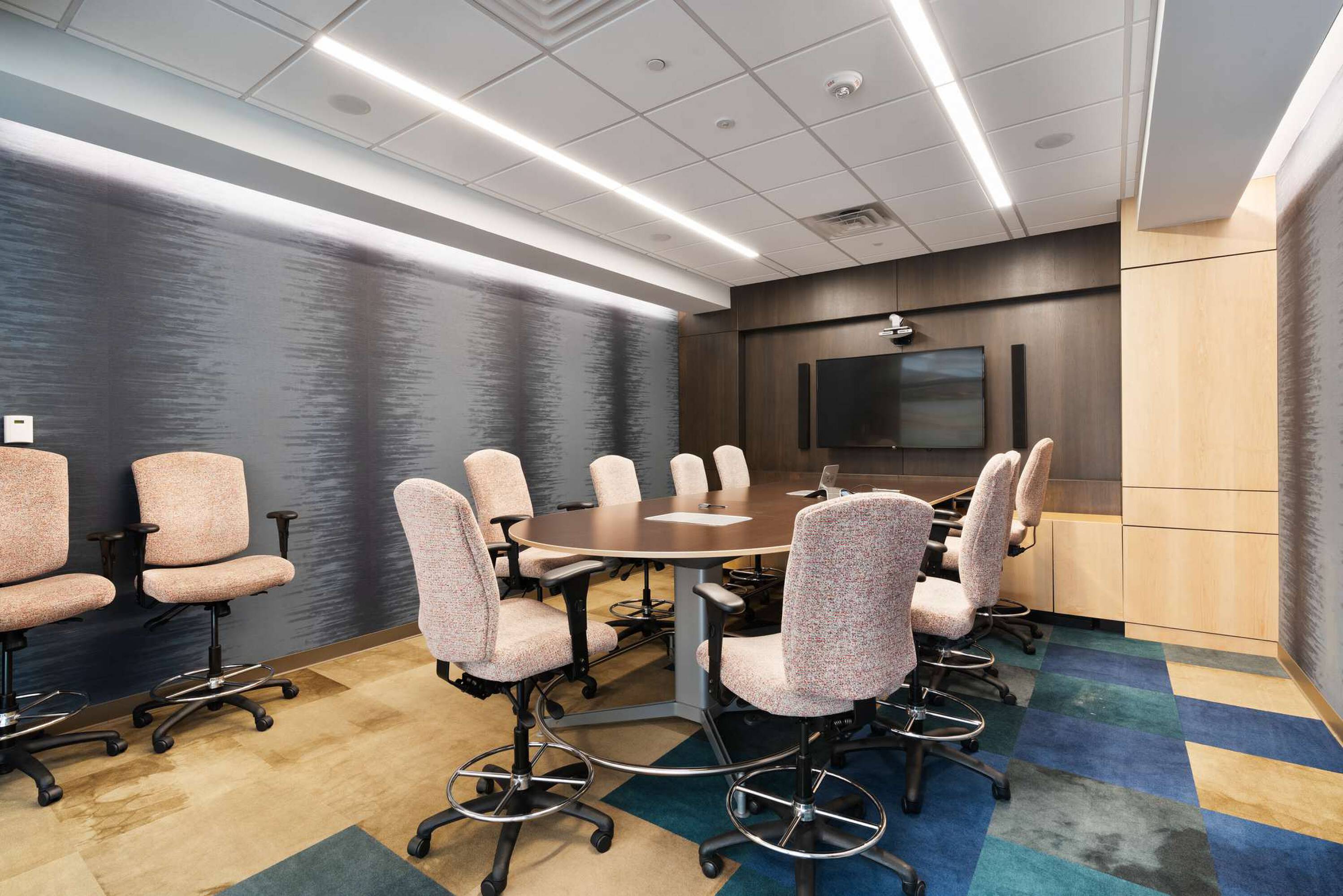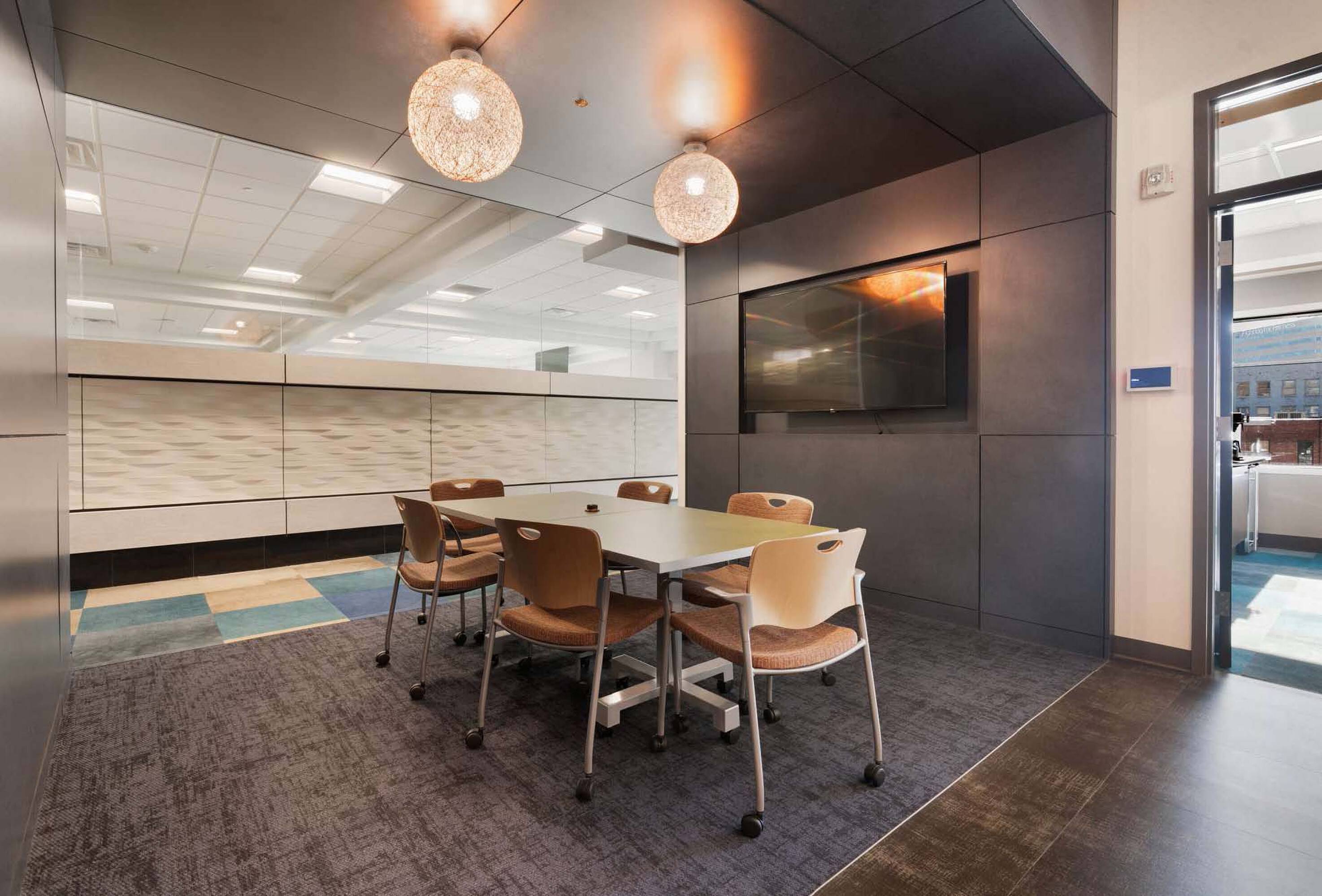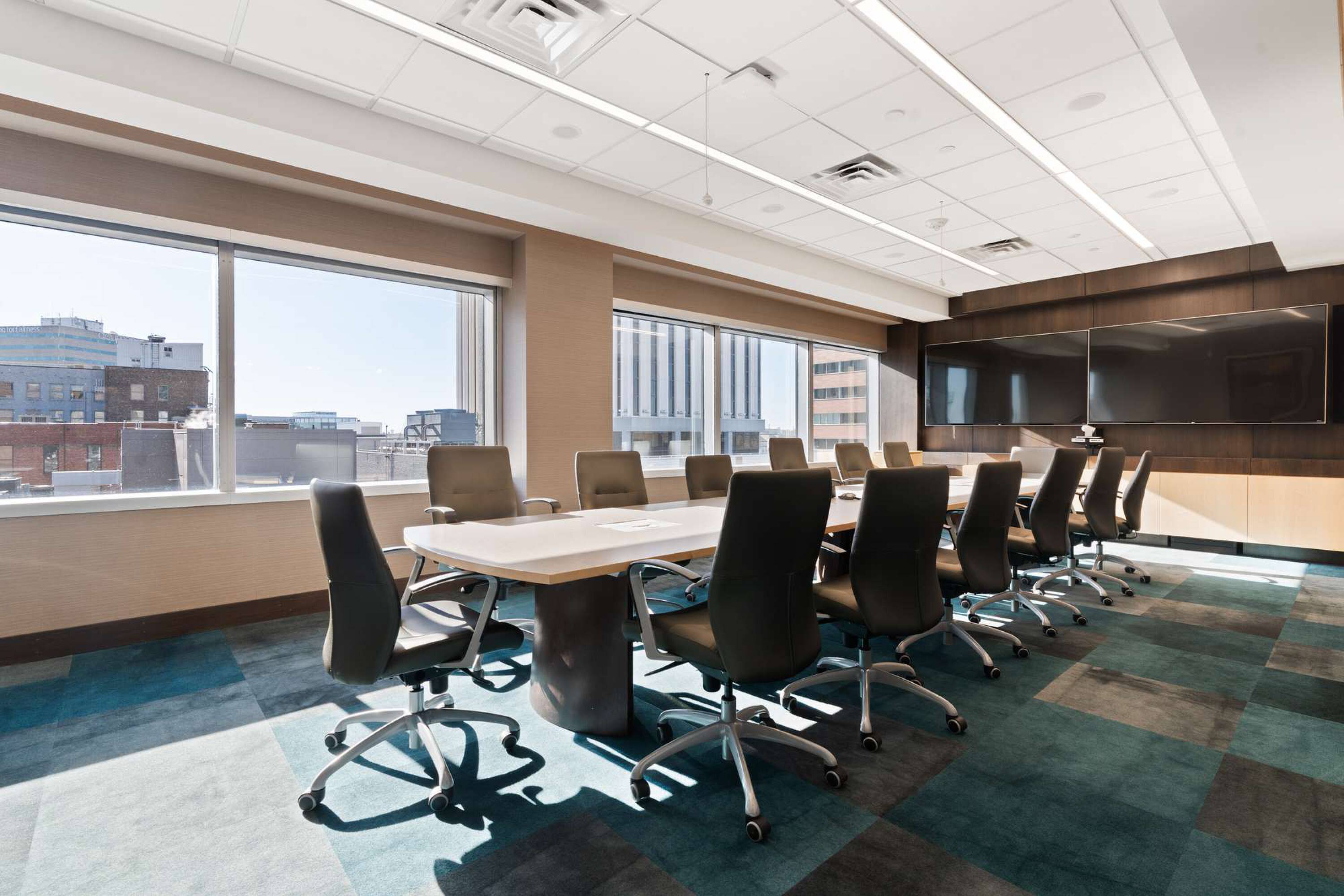 Modern office space with sophisticated interior finish, move-in ready.