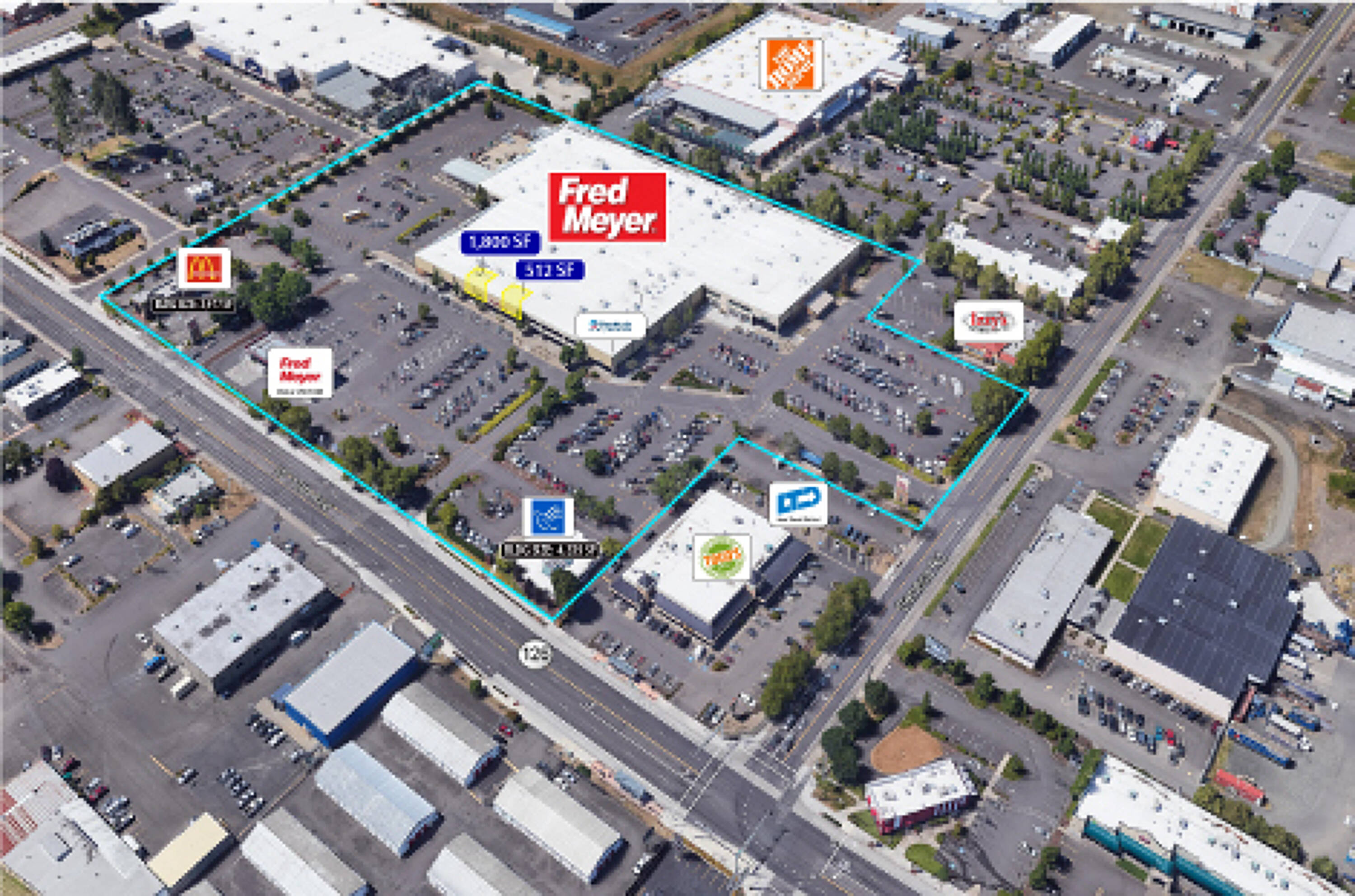 Retail spaces available, ranging from 512 to 1,800 square feet.