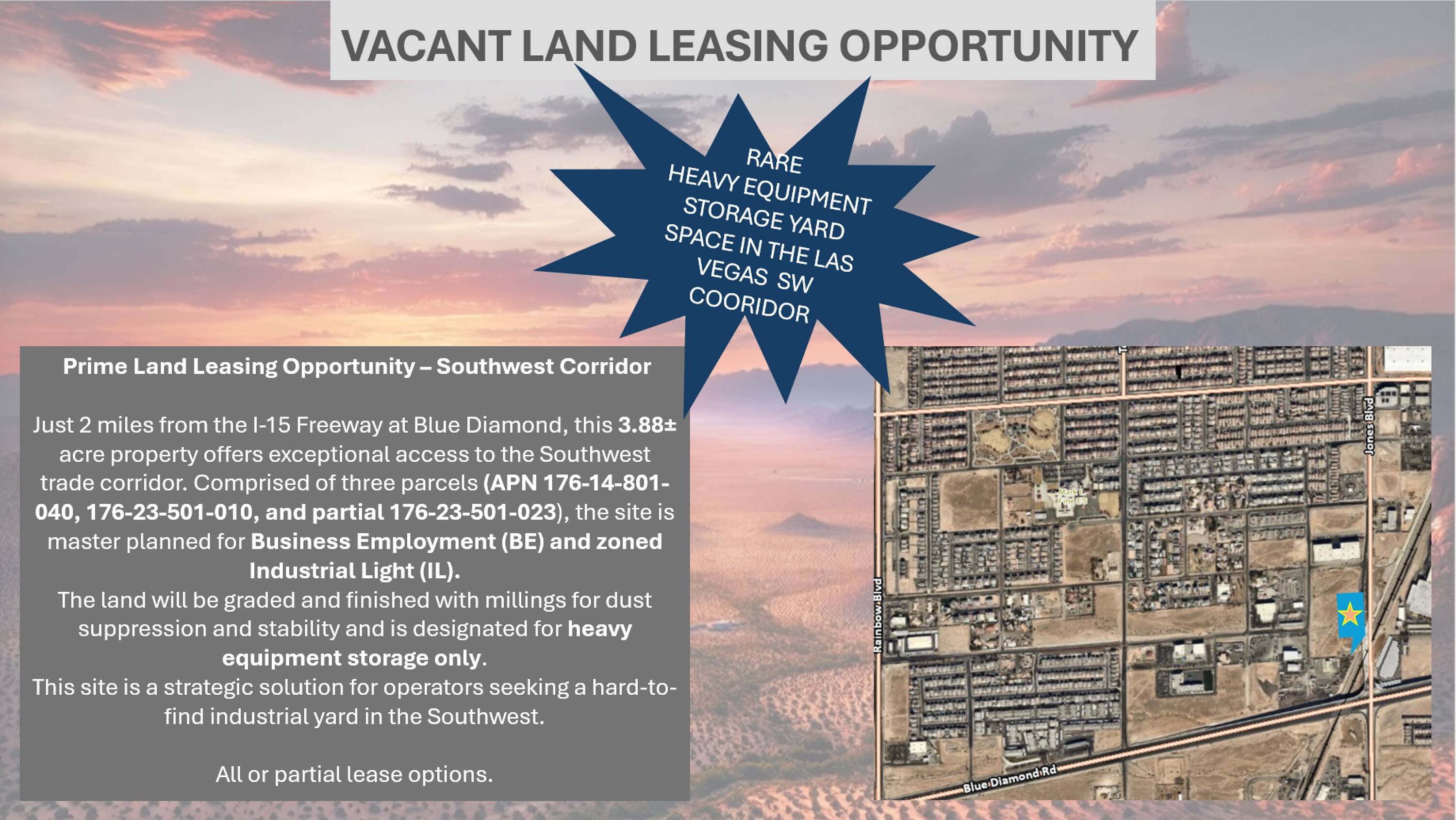 Land available for lease near I-15, ideal for storage.