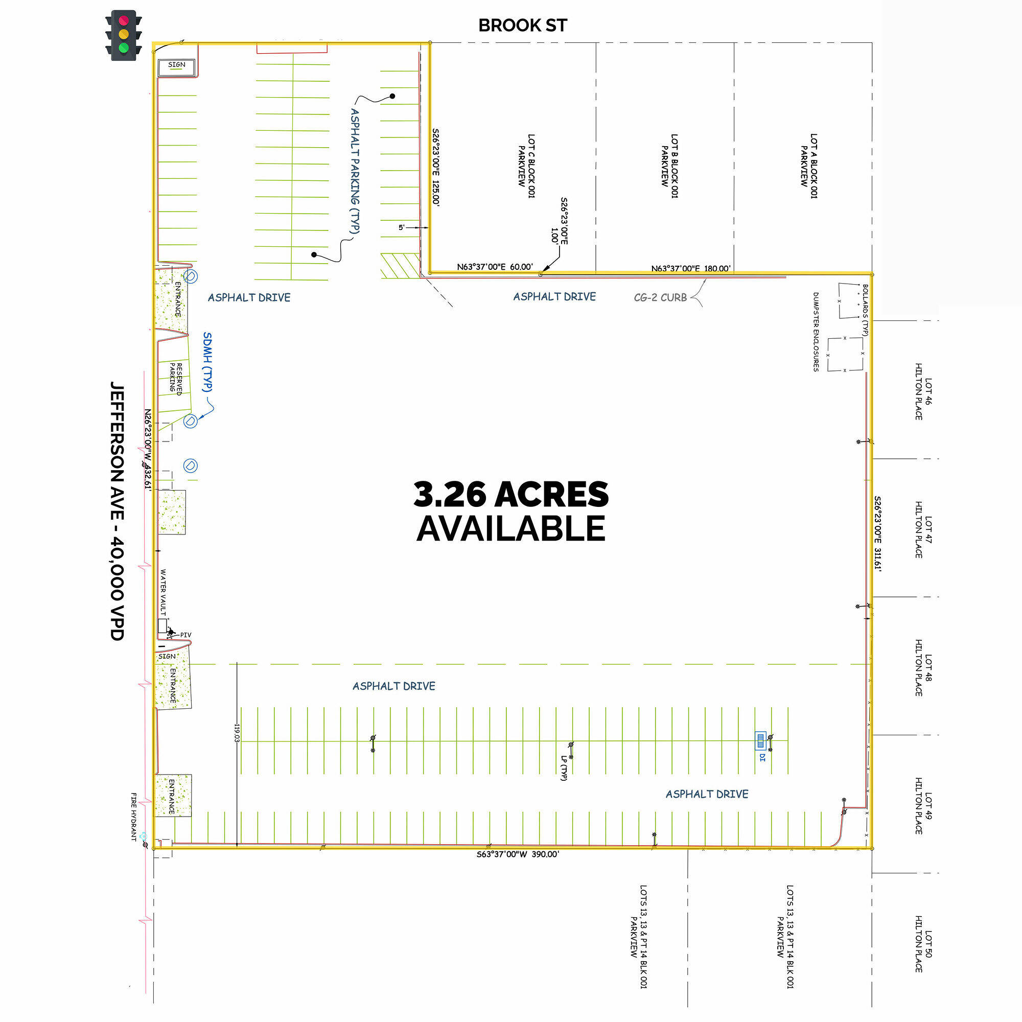 3.26 acre land parcel with 432 feet of frontage.