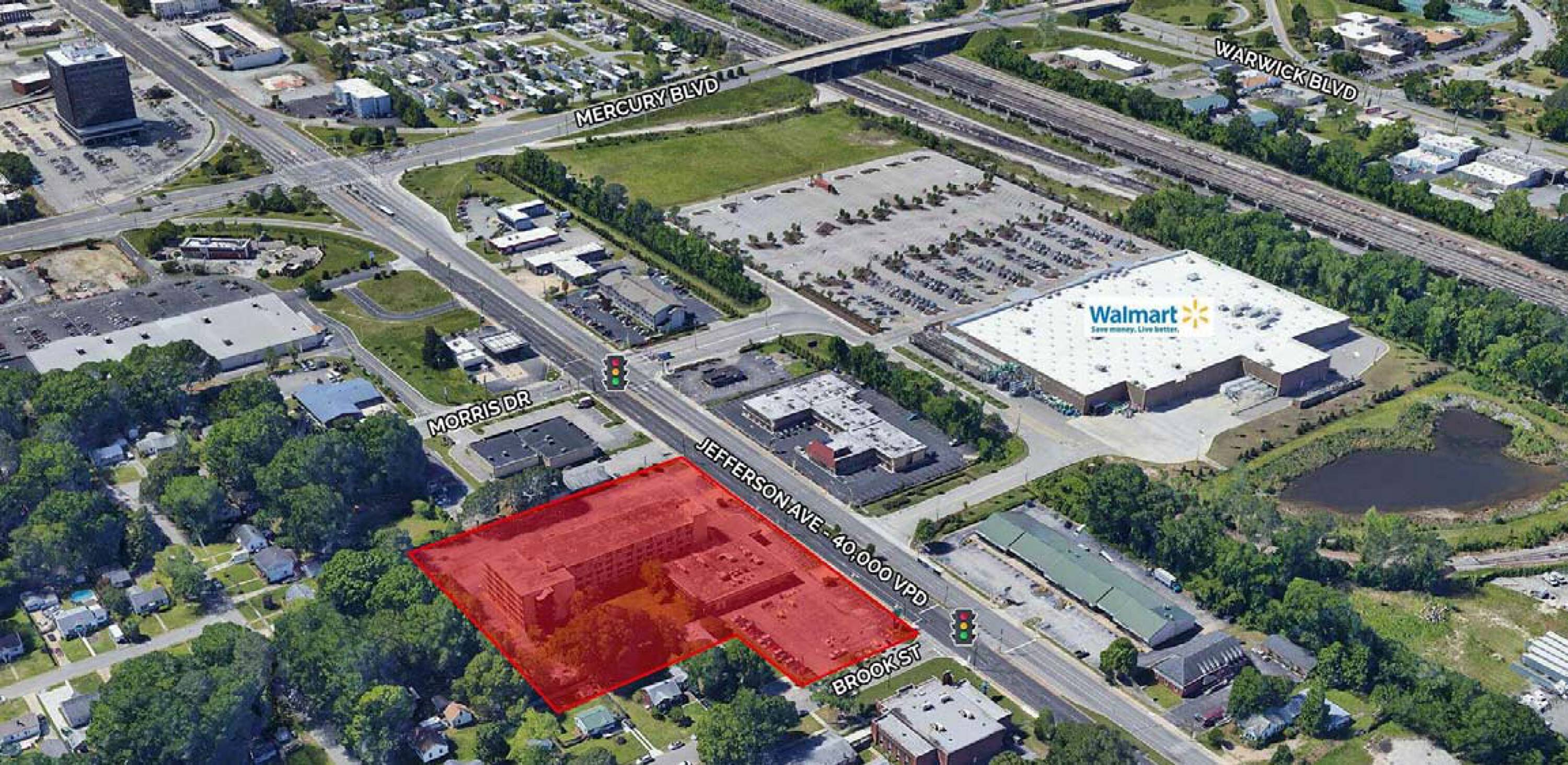 A 3.26-acre land parcel is available for sale, featuring 432 feet of frontage on Jefferson Avenue. The property is situated on the east side of Jefferson Avenue, just south of Brooke Street. It is located directly across Jefferson Avenue from Walmart in the Newmarket section of Newport News.