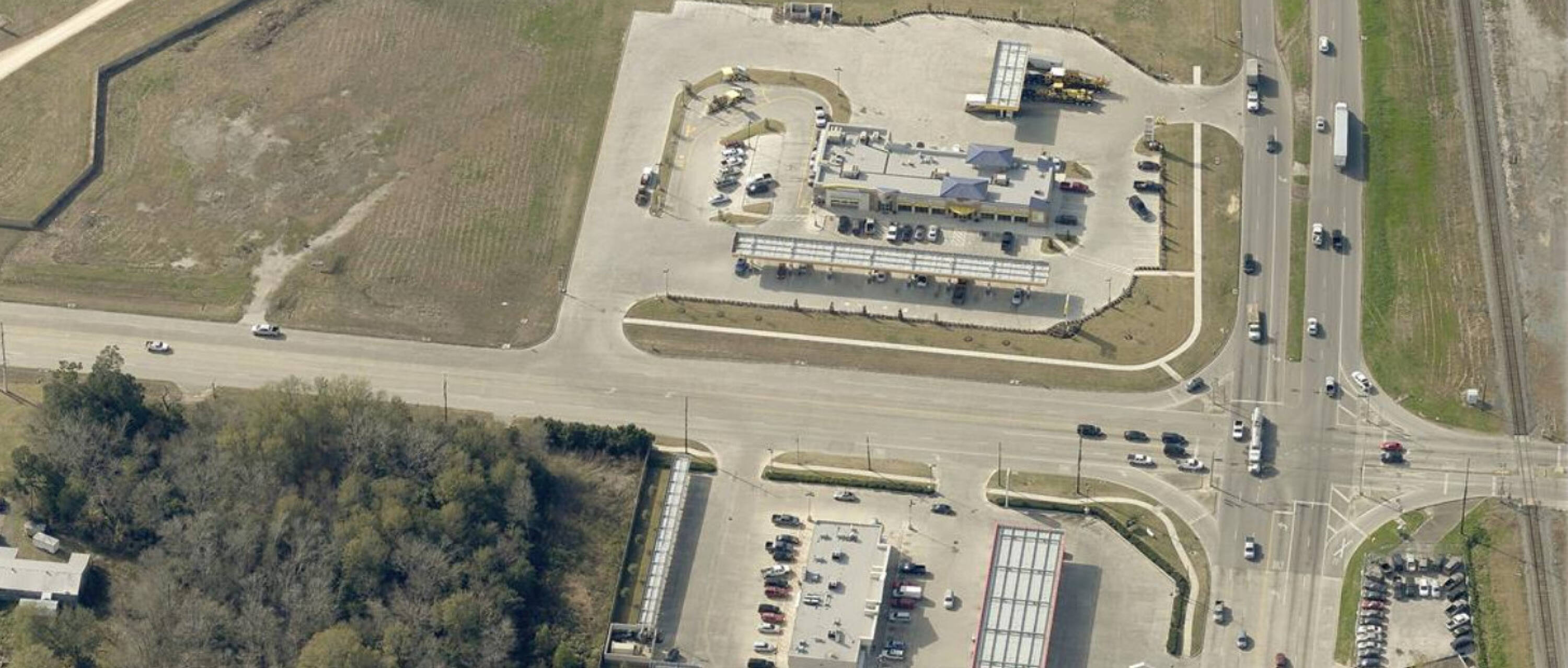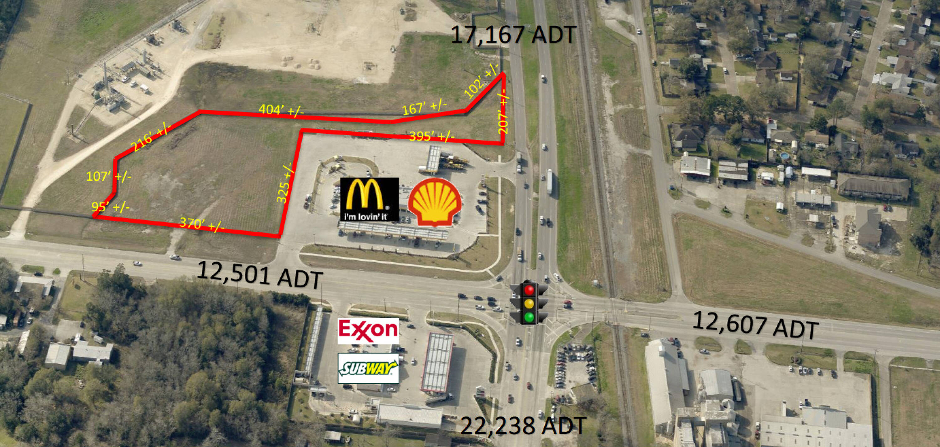 Land available at a signalized corner location.