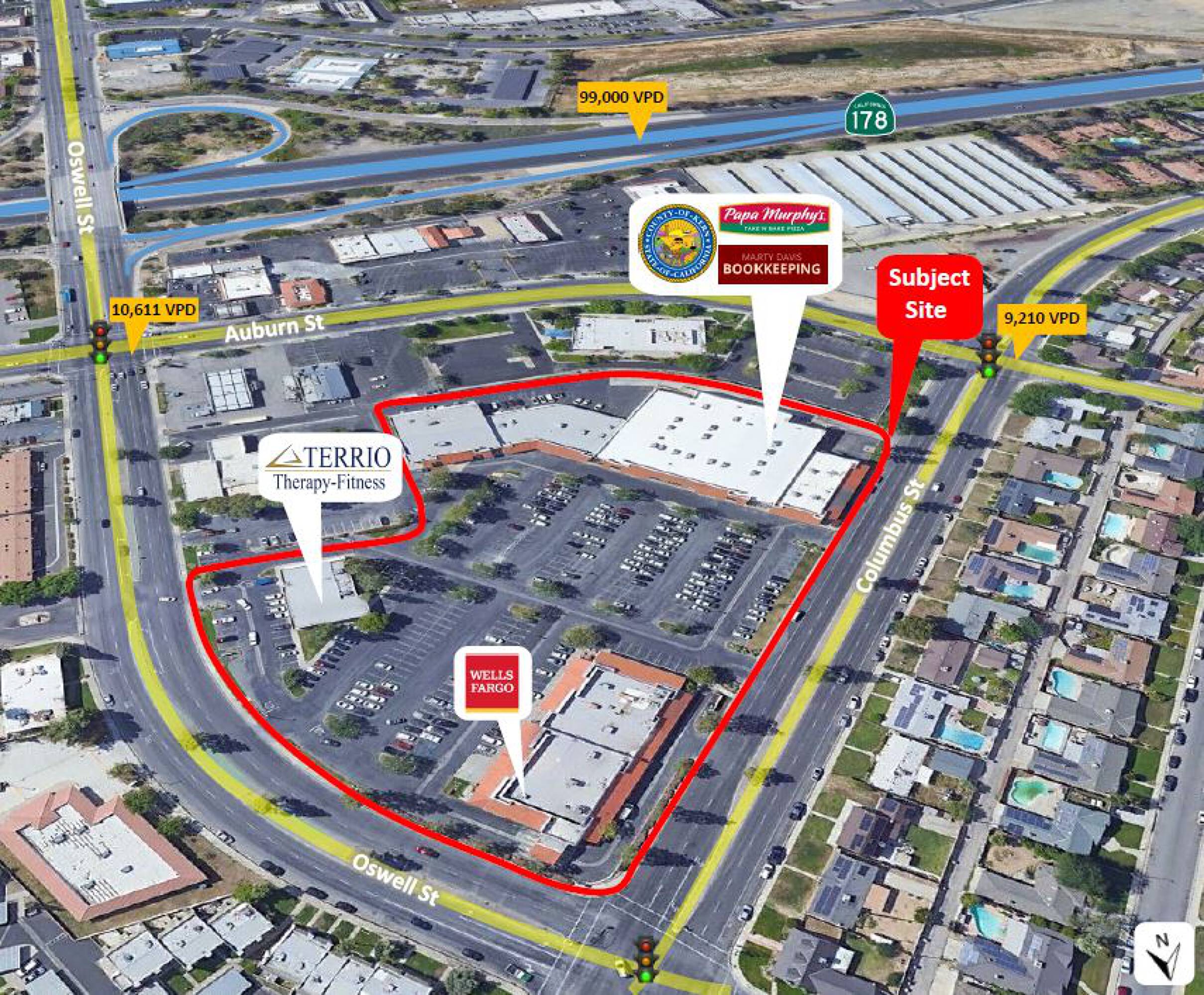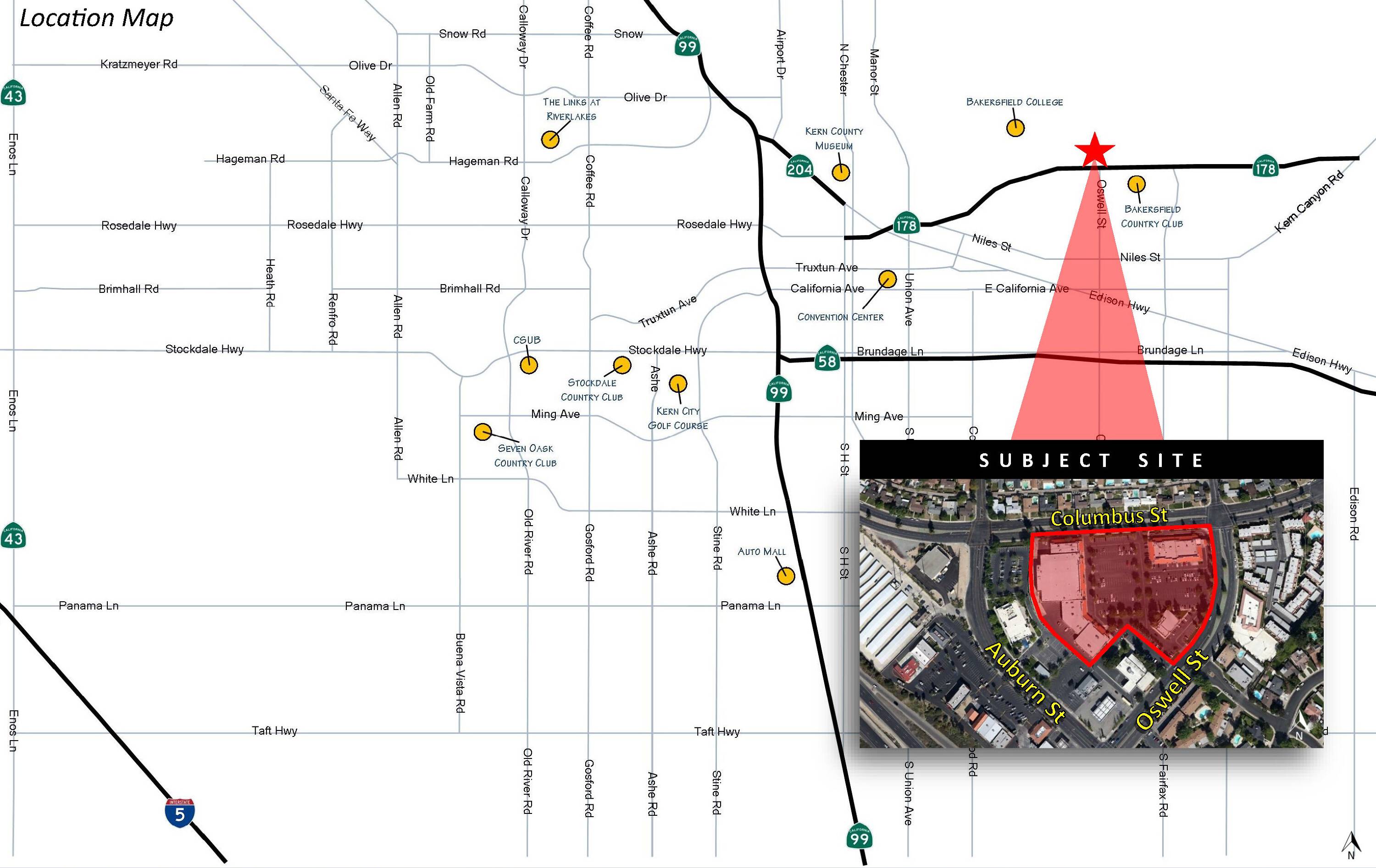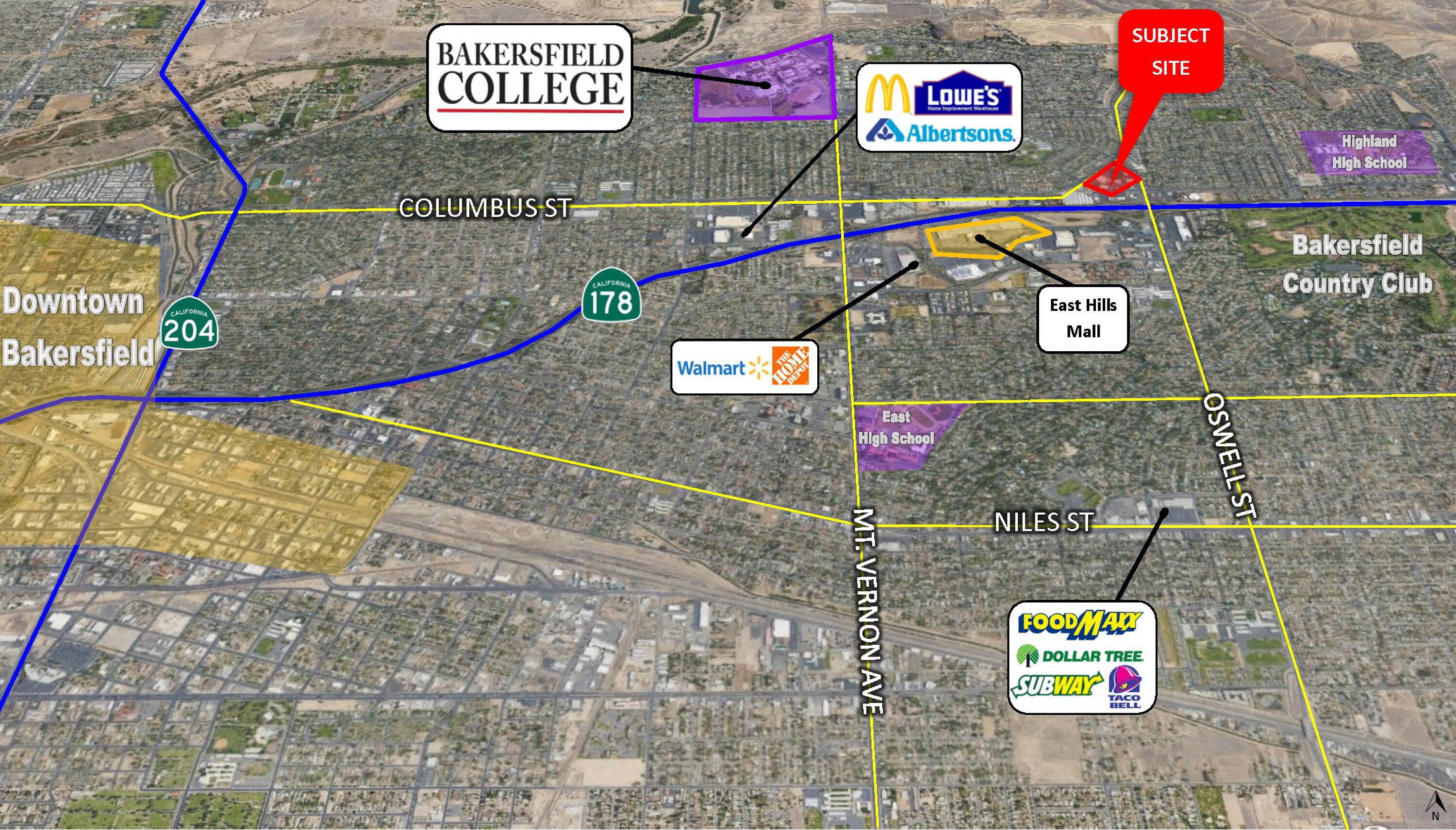 Located in northeast Bakersfield, the Country Club Plaza is a retail neighborhood shopping center with 86,189 square feet of space. The property is zoned C-2 in the city of Bakersfield and is located 0.20 miles from Highway 178. Space available ranges from 1,500 to 10,000 square feet.