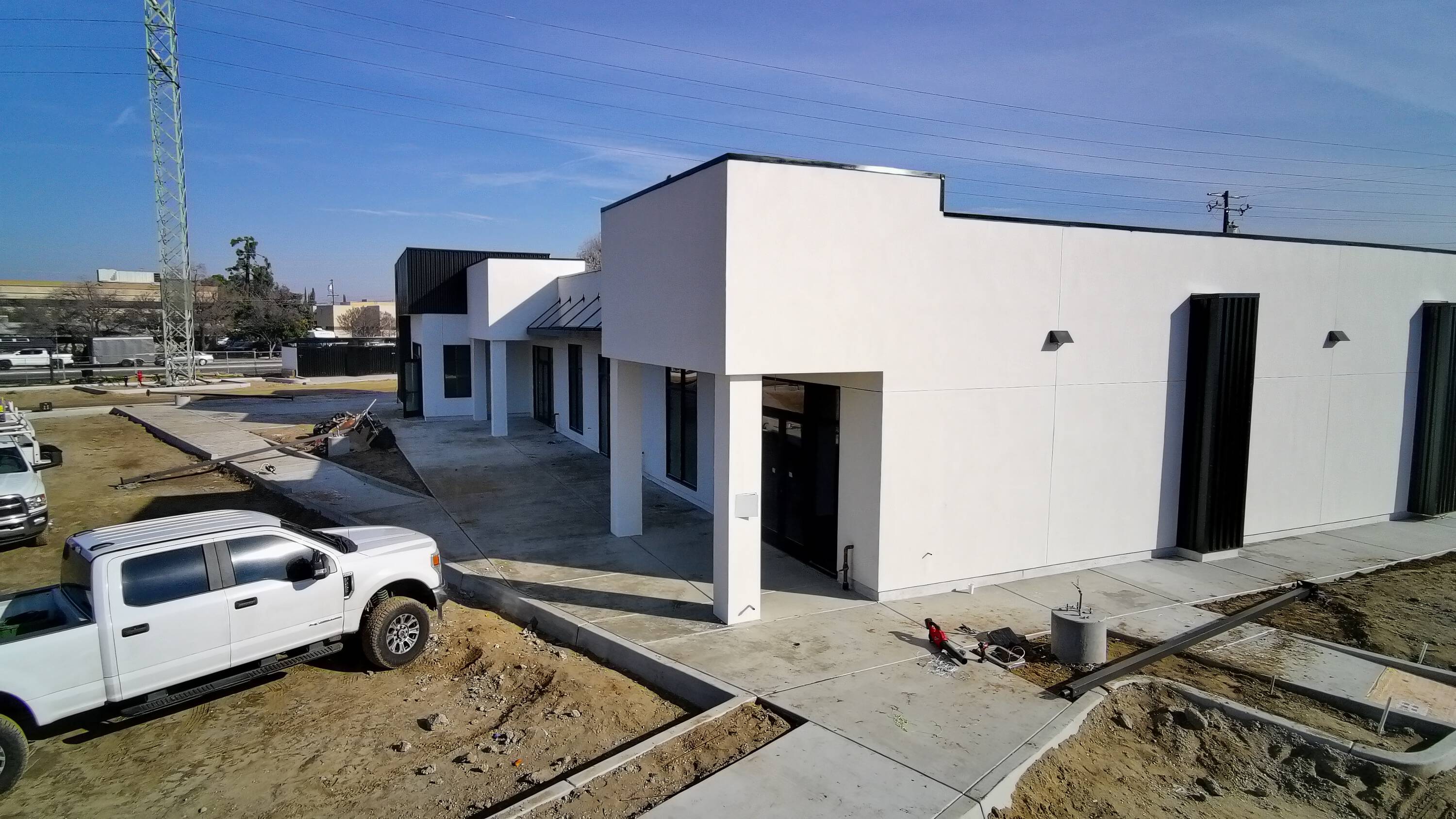 New retail building with drive-thru Starbucks, flexible space options.