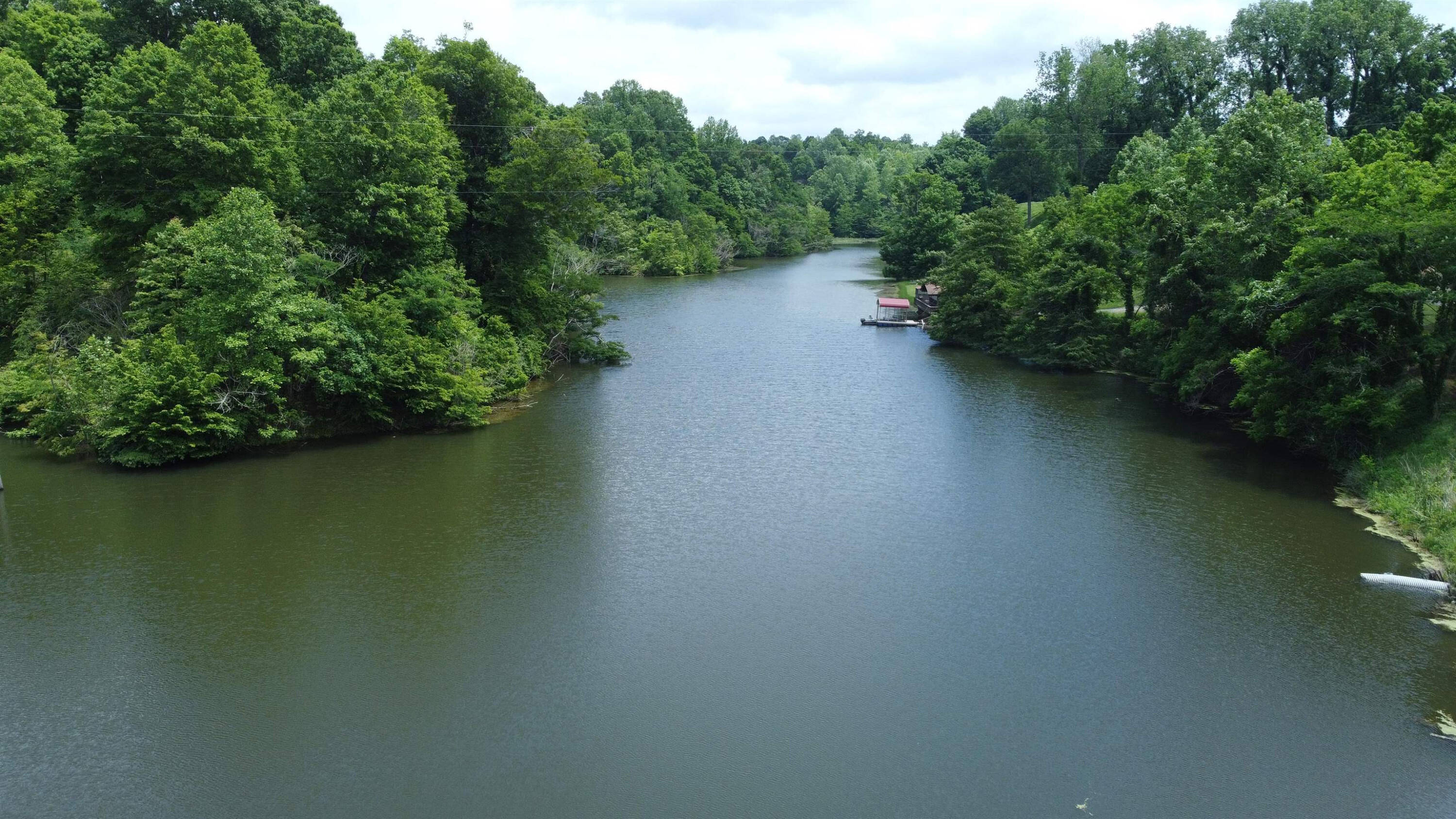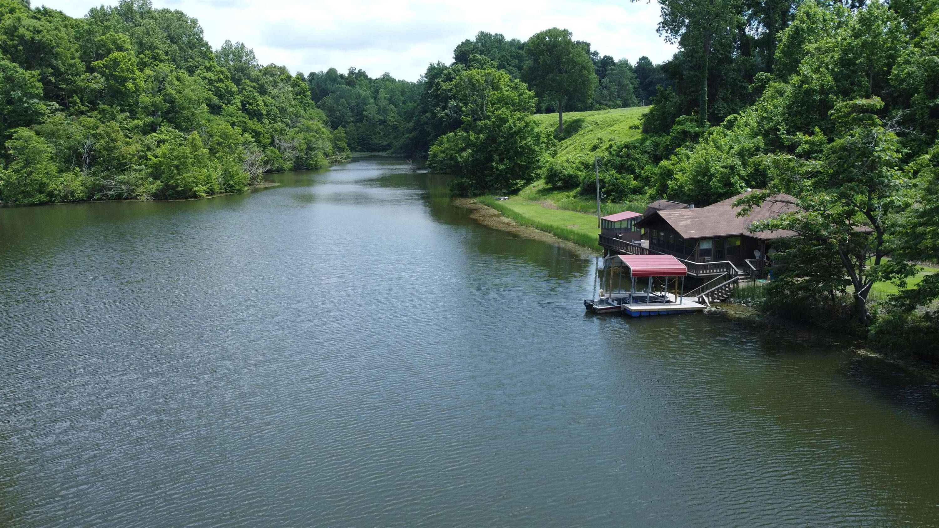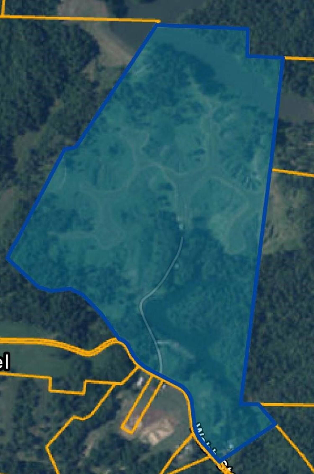 Property featuring homes, land, and bodies of water.