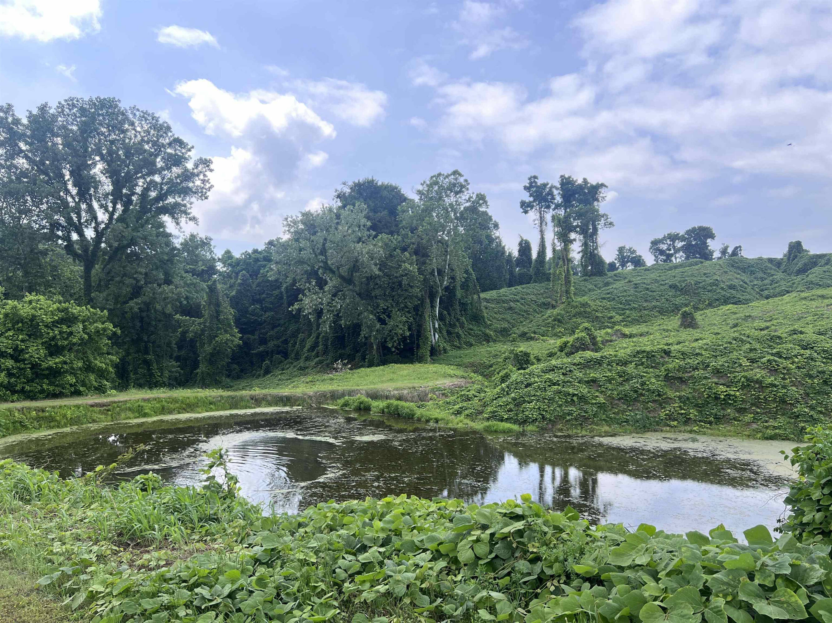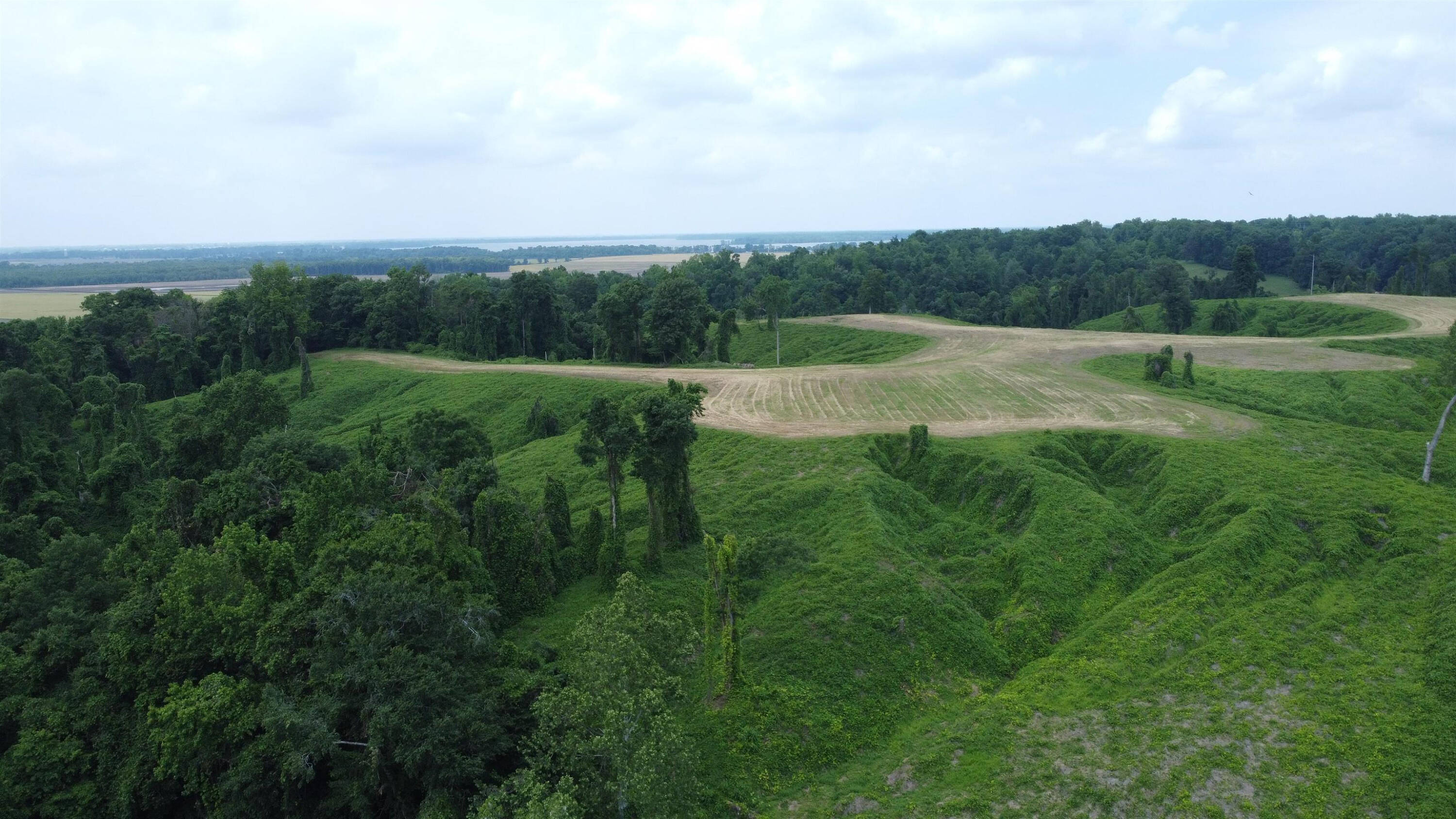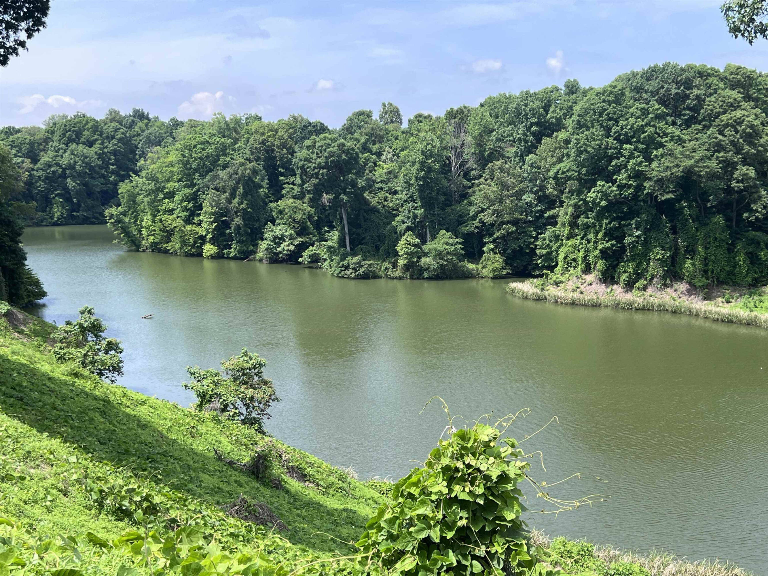 Property featuring homes, land, and bodies of water.