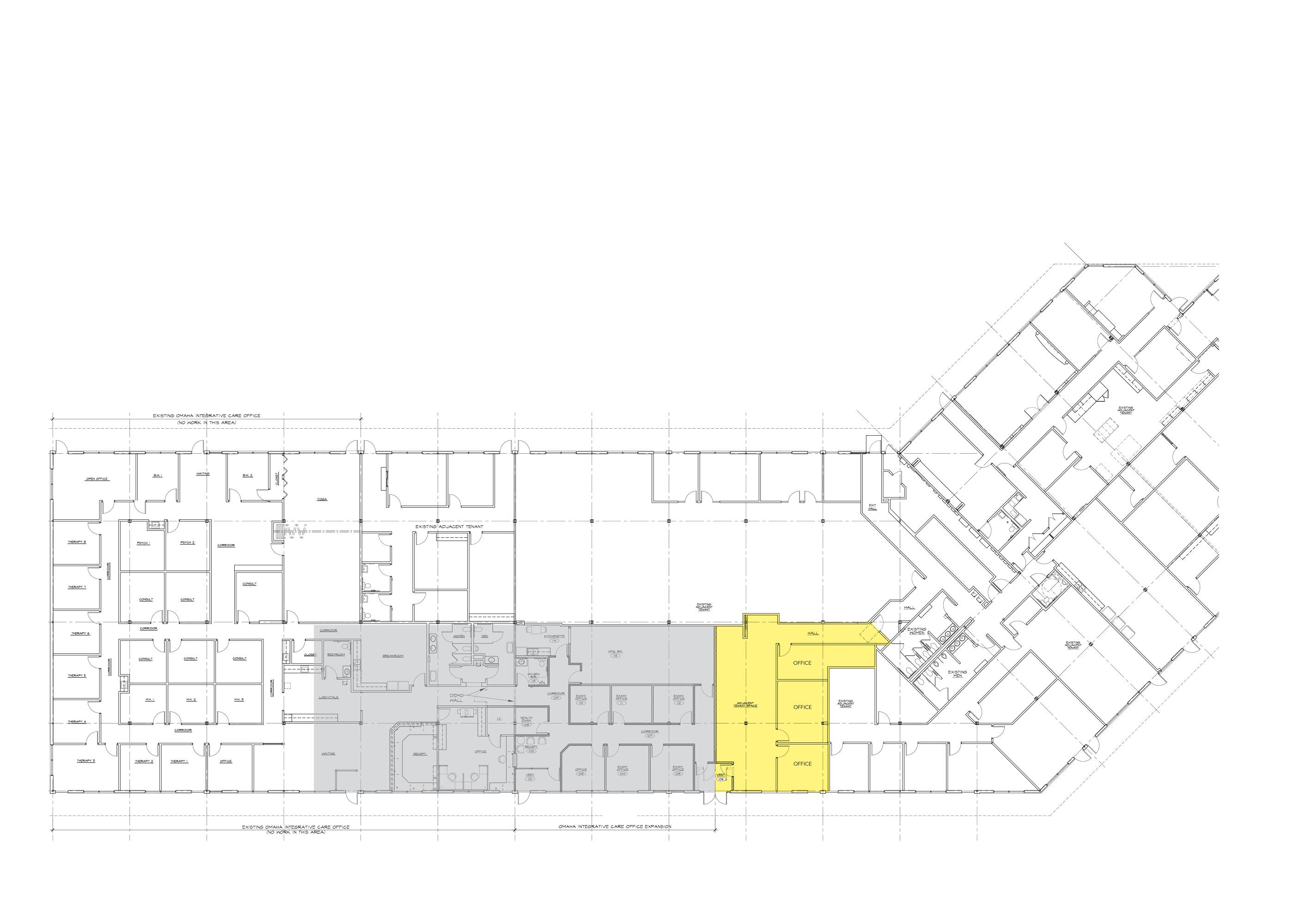 Office space for rent near restaurants and retail services.