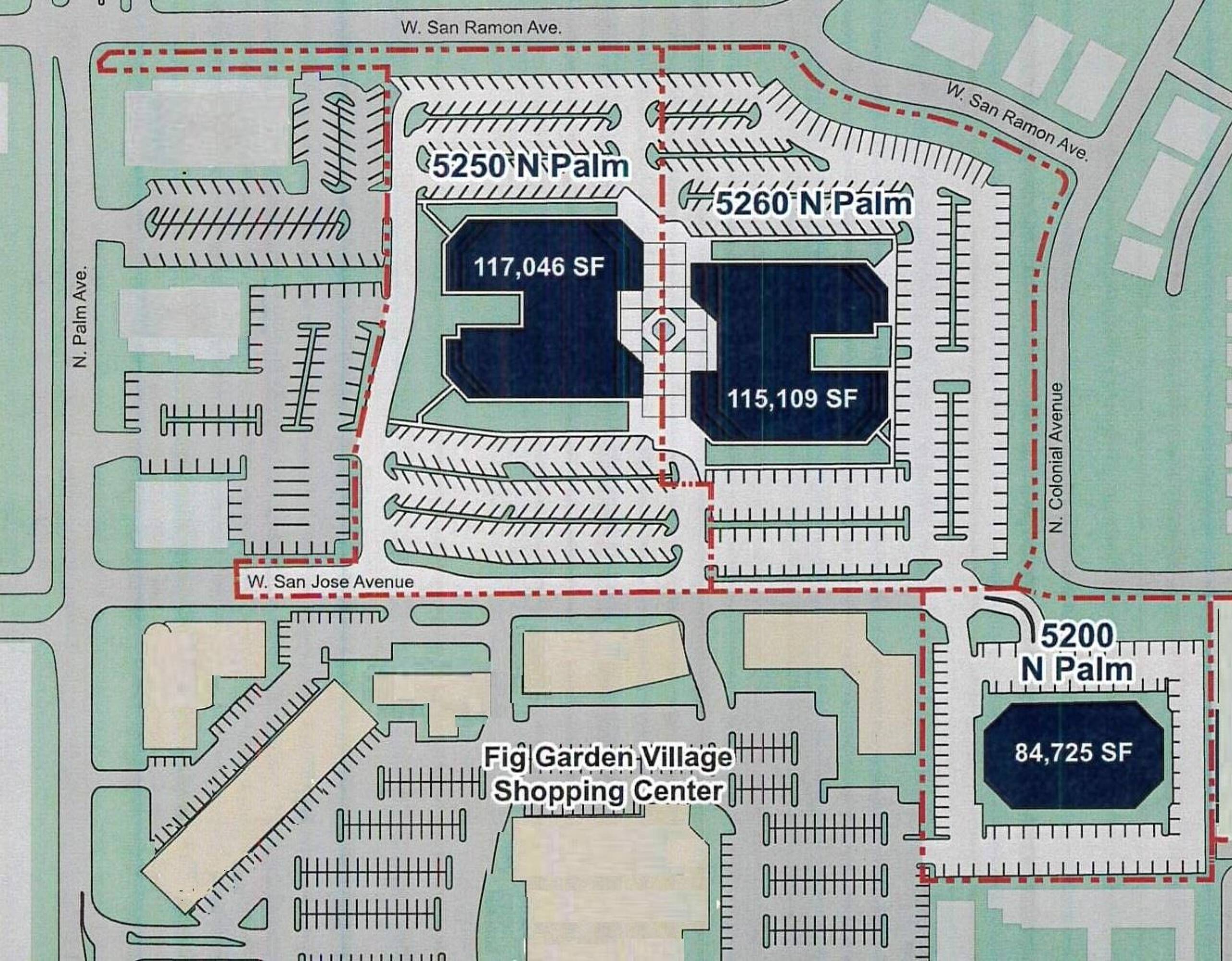 The property is located at 5250 N Palm Ave Fresno, CA.