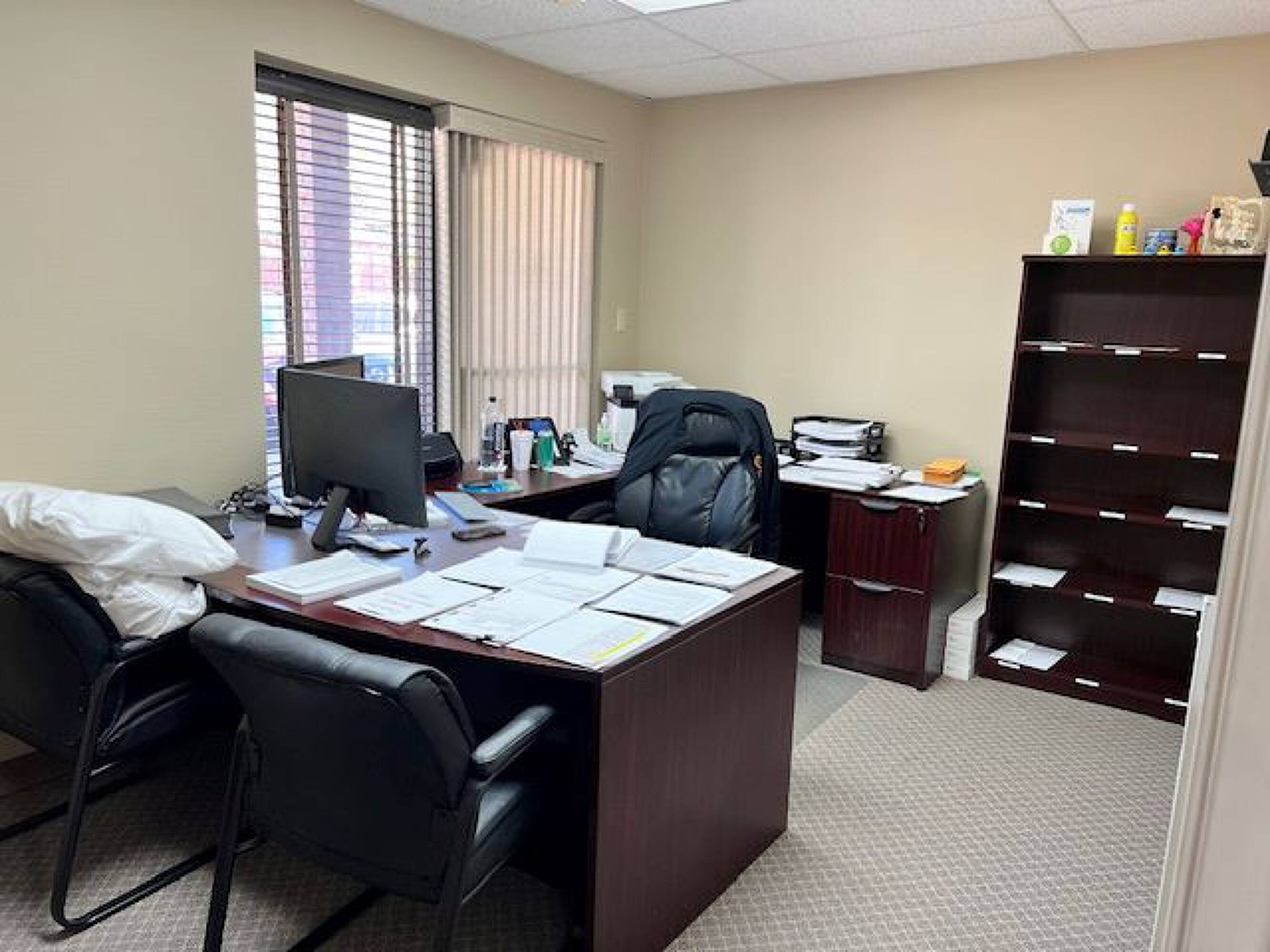 Remodeled office building with new roof, ideal for various uses.